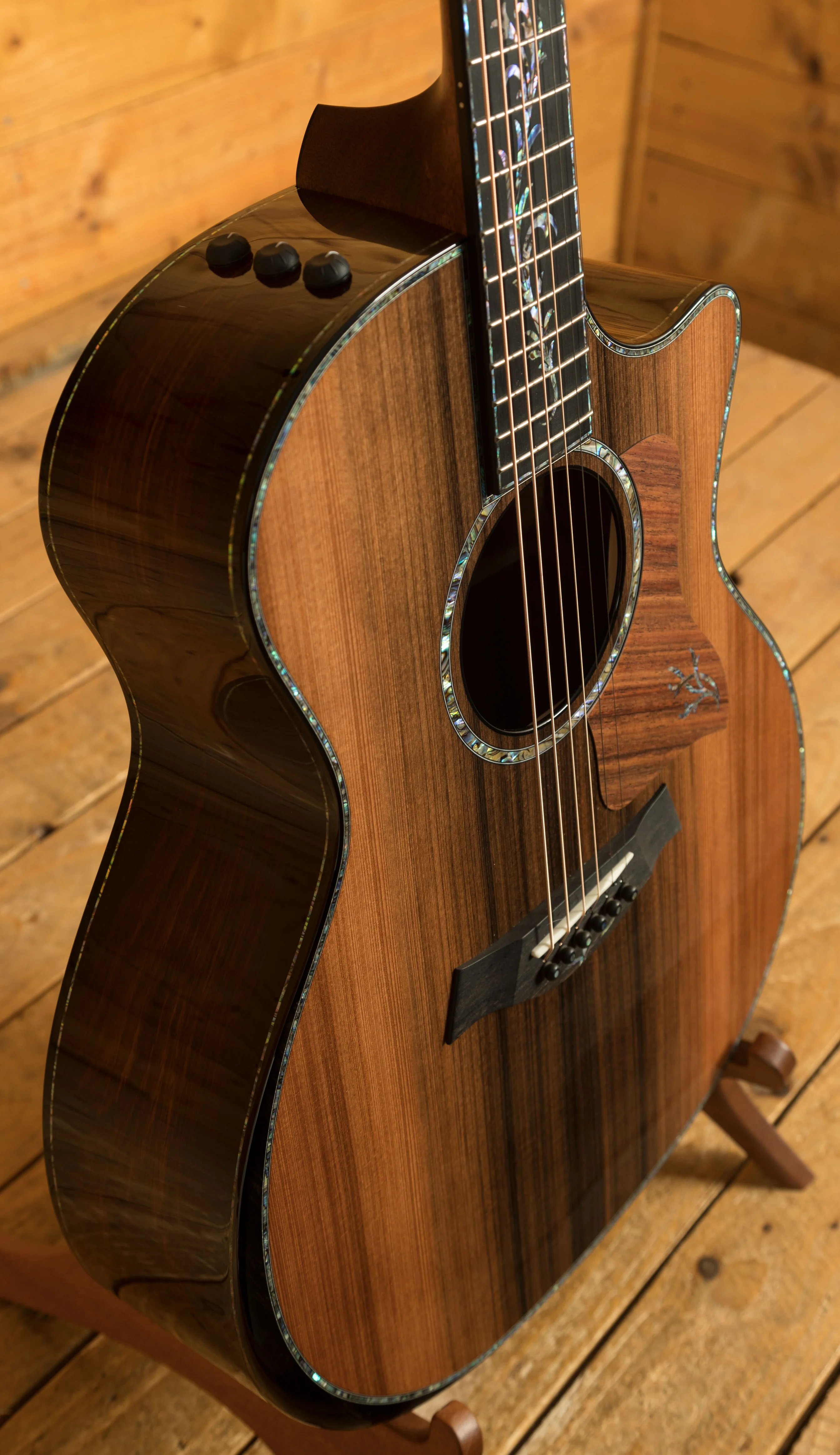 The Grand Auditorium body shape, Taylor's most popular design, further contributes to the PS14ce's versatility. Its balanced tonal profile - full in the lower register, present in the midrange, and sparkling in the treble - makes it suitable for both fingerstyle and strumming. The Venetian cutaway provides easy access to the upper frets, while the radius-style armrest enhances playing comfort.