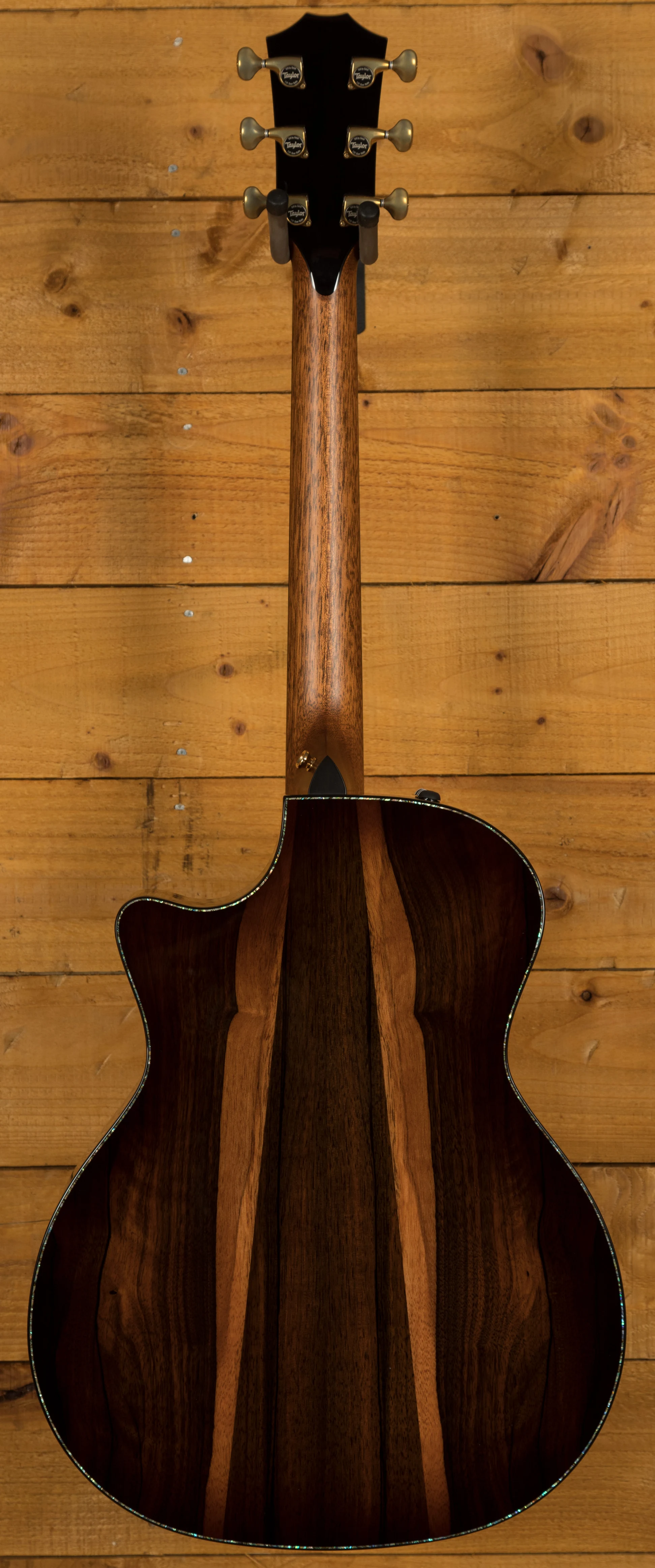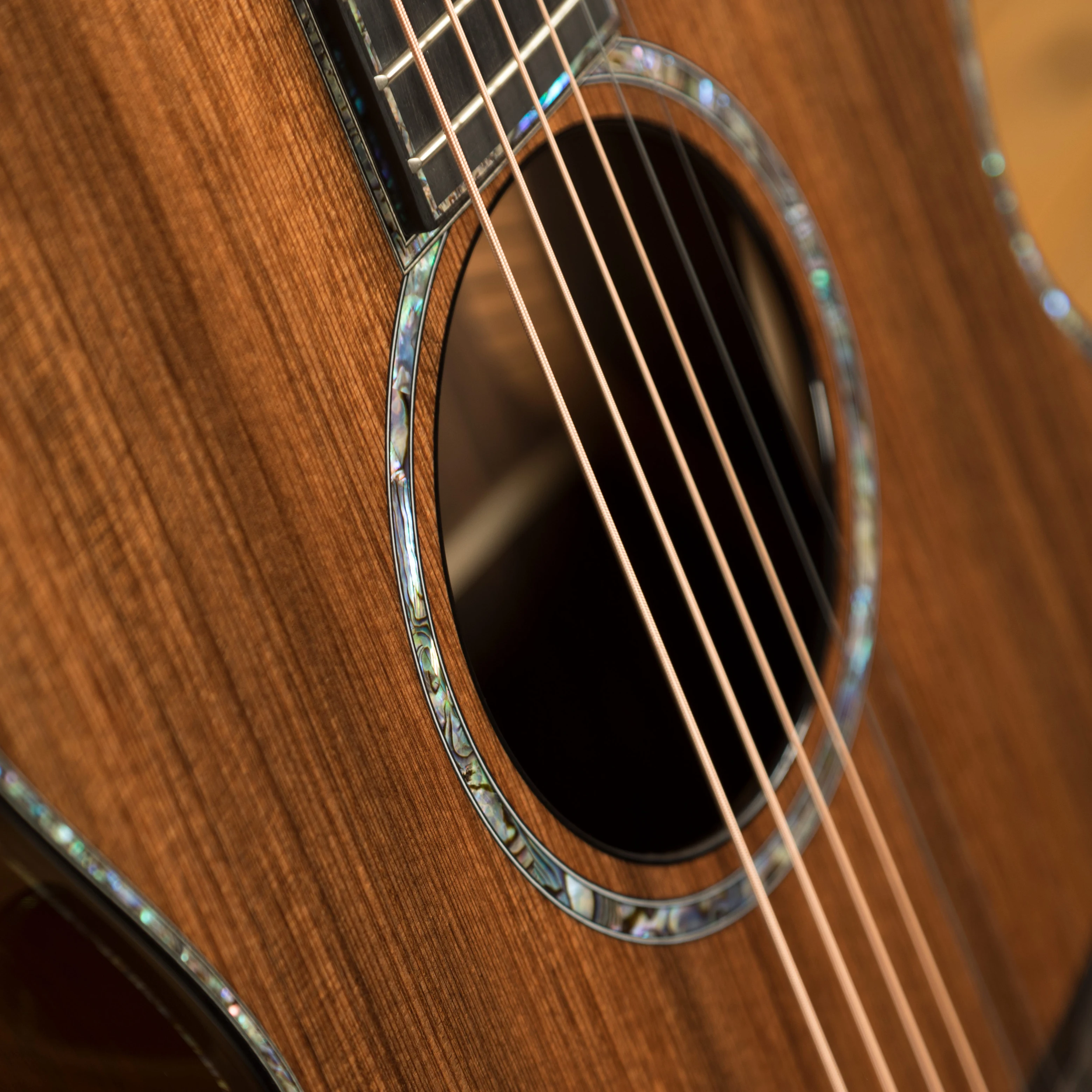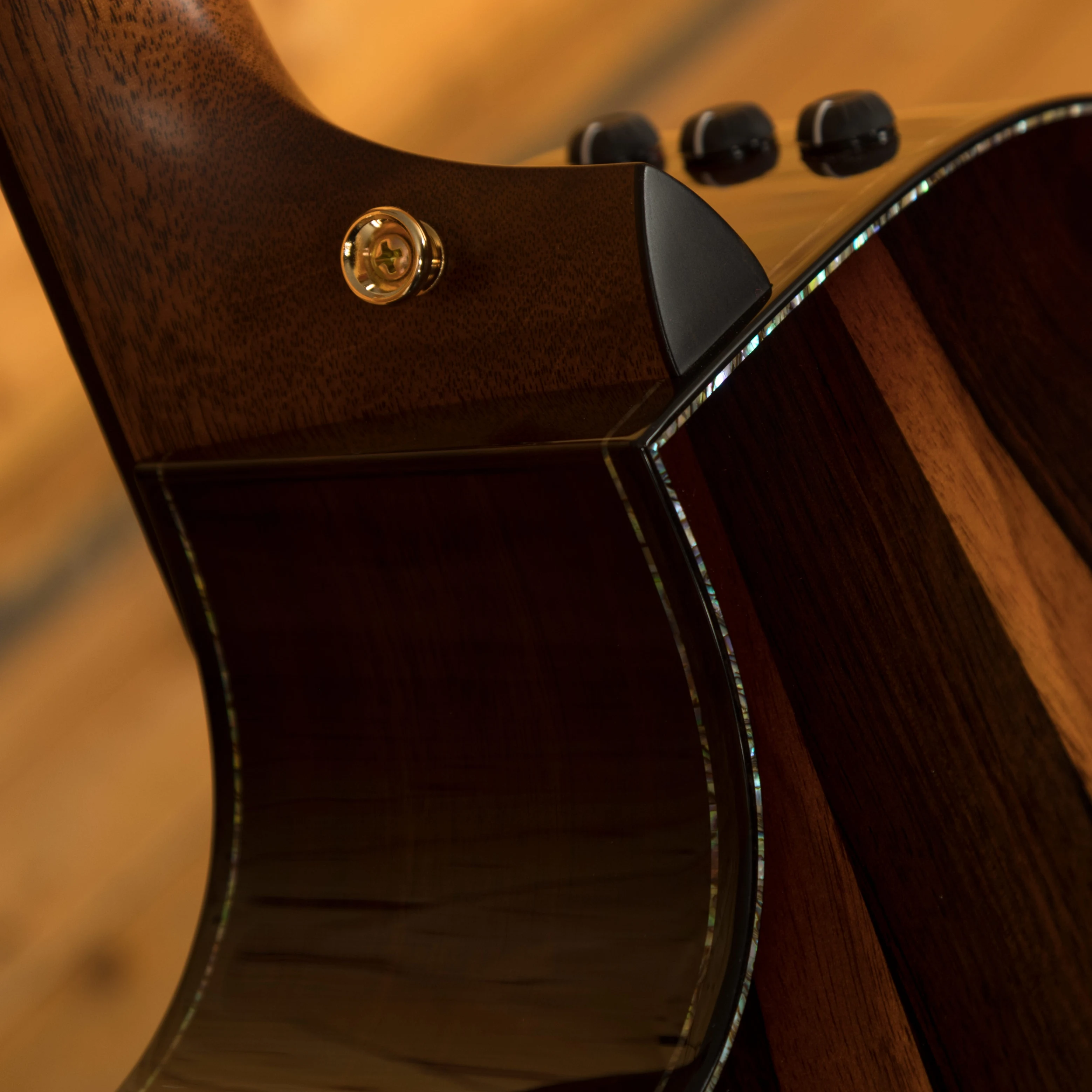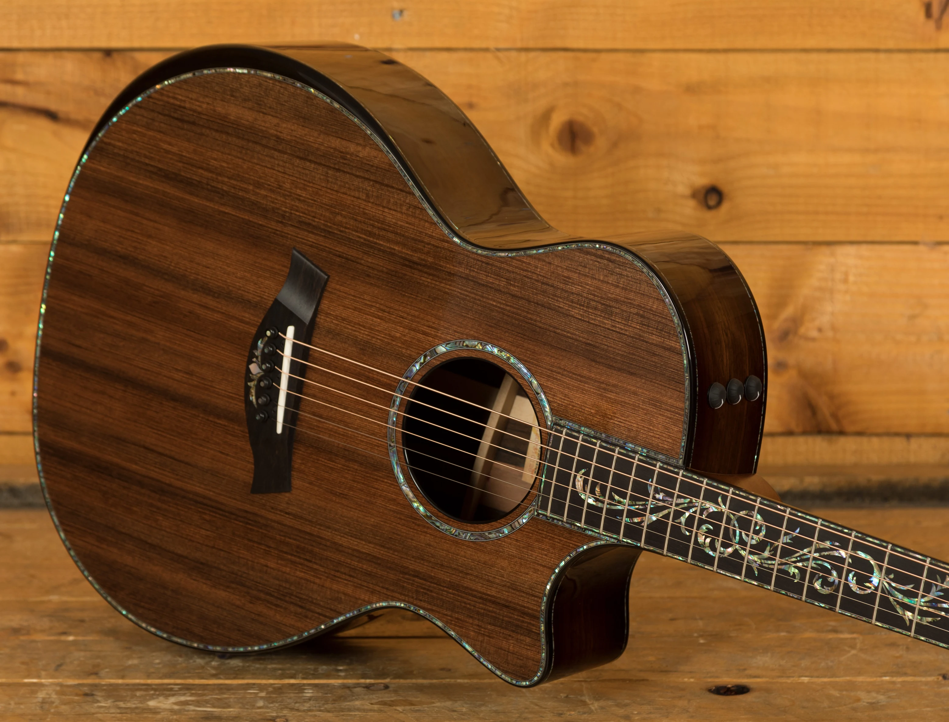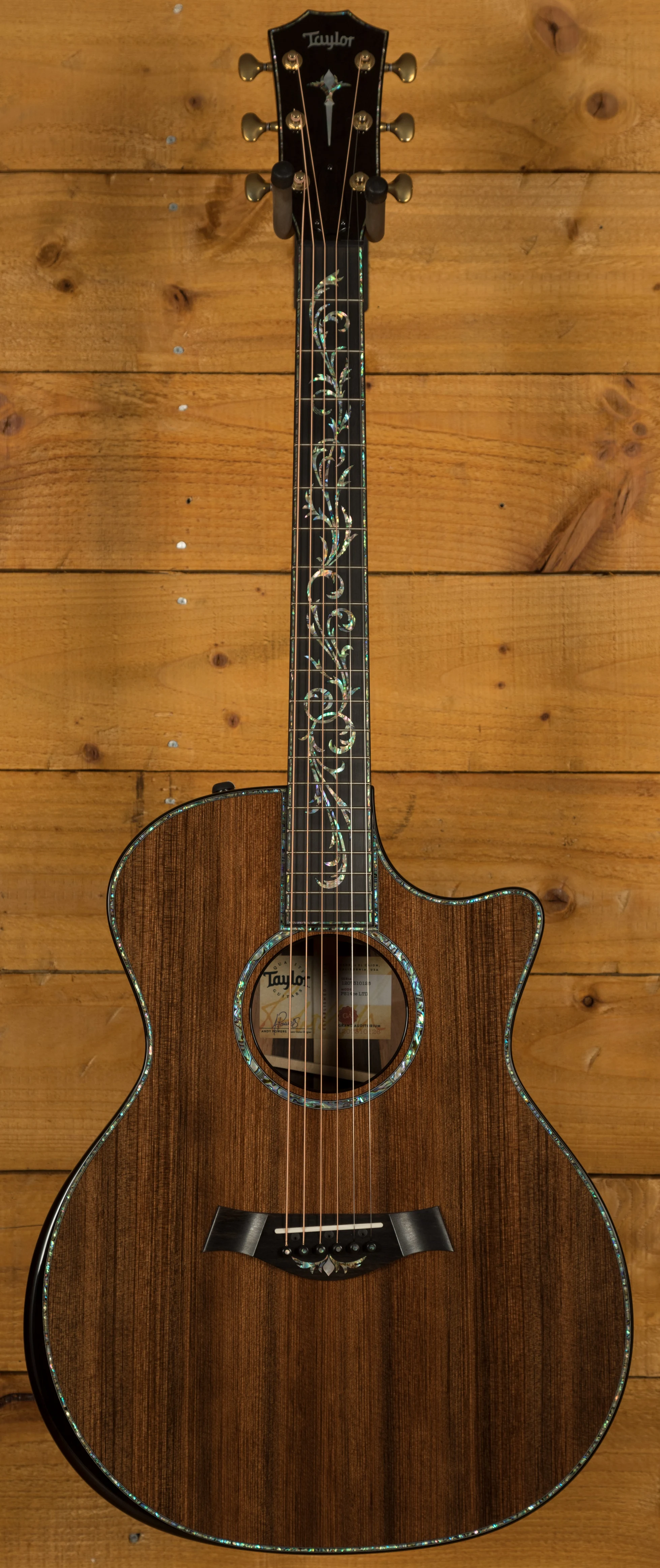 With the classic Taylor Ebony fingerboard, it offers a smooth and comfortable playing surface that is perfect for beginners and professionals alike. This beauty has the most gorgeous Paua and Pearl Nouveau inlay for that classic Presentation Series look. With a bevelled armrest and body edge with inset purfling, the PS14ce is the absolute highest order of Taylor construction.