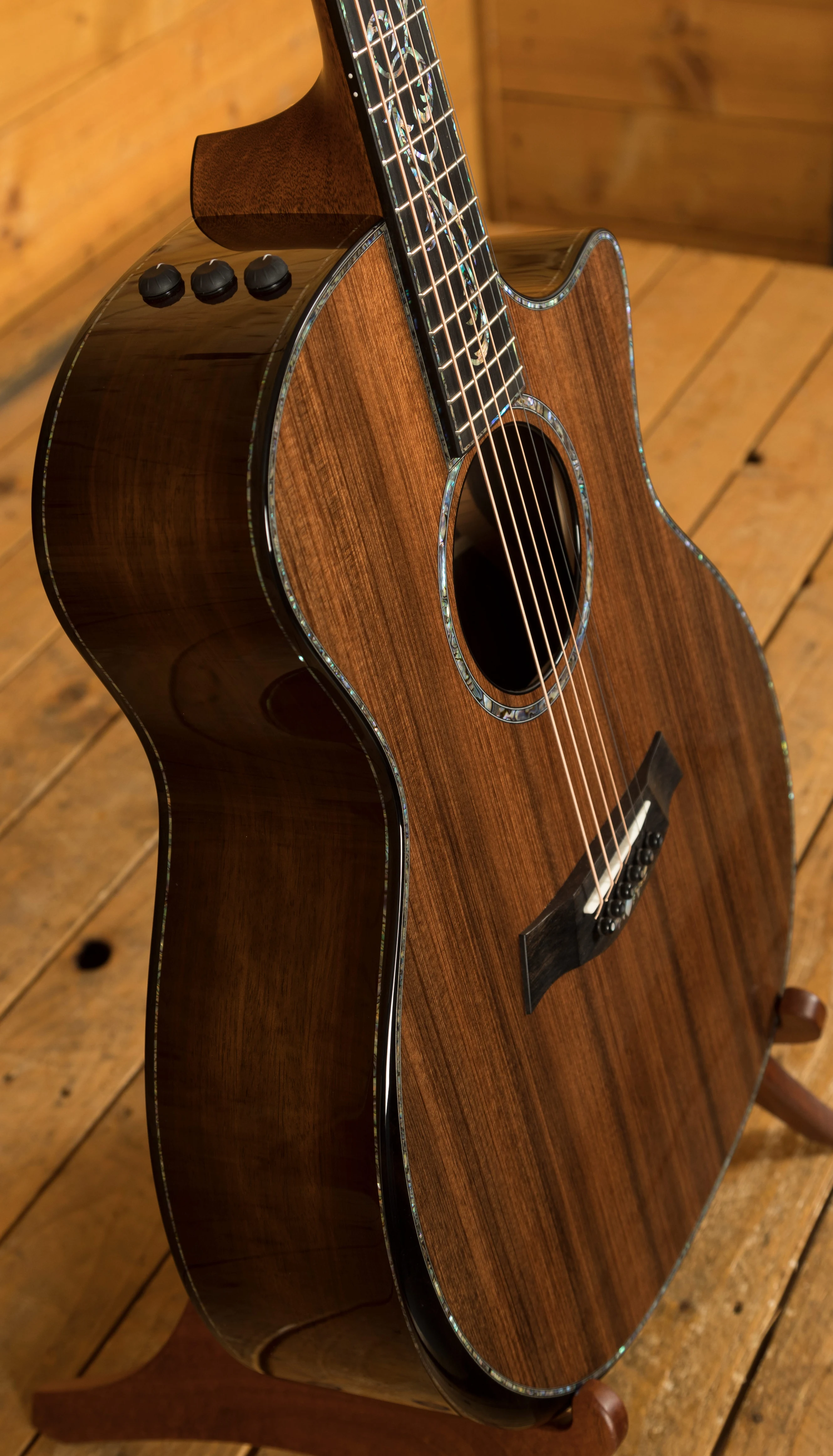 During a recent wood organisation project, Taylor discovered 100 sets of incredible Macassar Ebony, and what better use for them than 2 special and highly limited high end models. There are only 50 of this model in the world and just 5 for the UK!