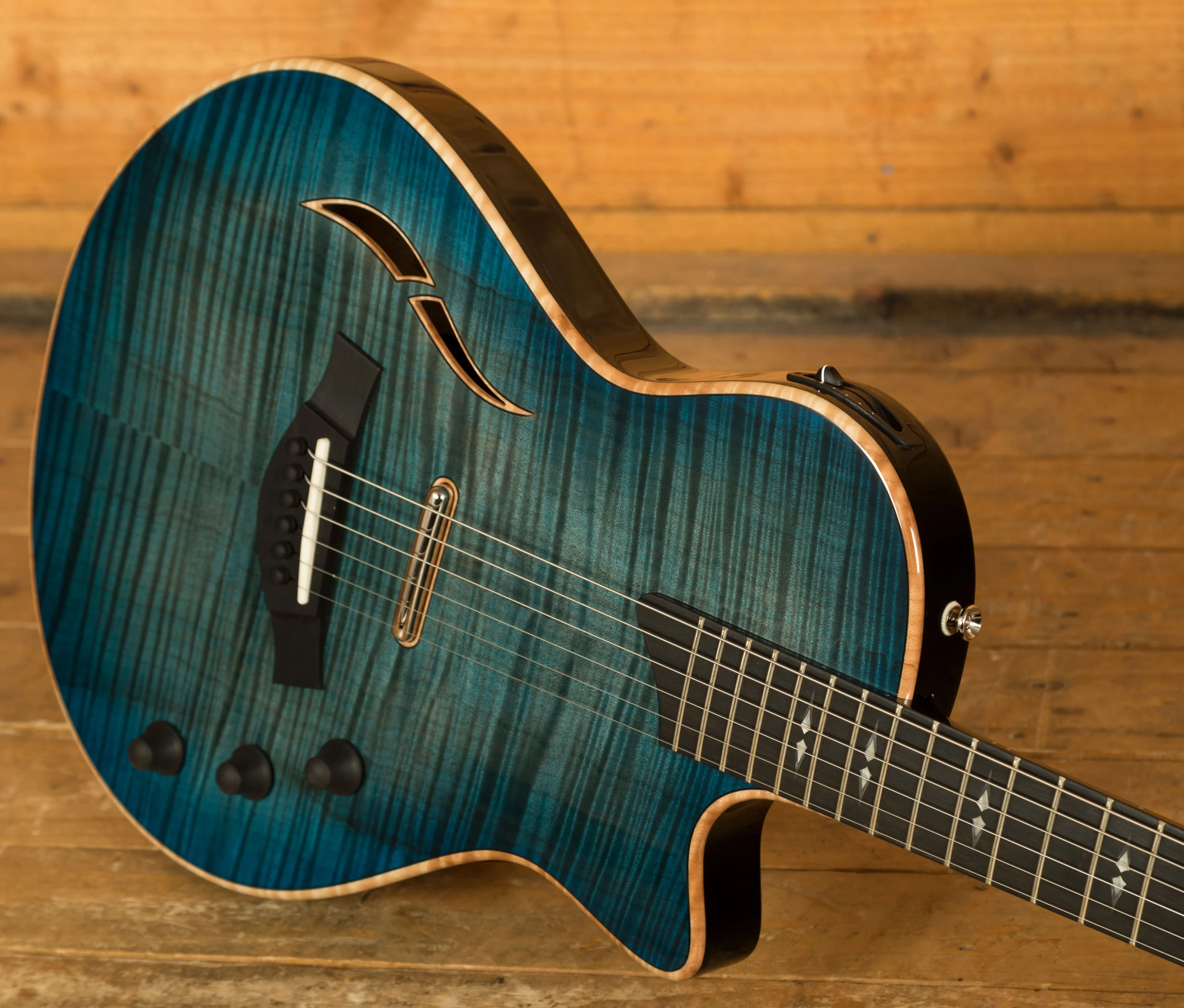 Newly redesigned with a host of comfort-focused enhancements and refined visual elements, the T5z Pro in Harbor Blue offers a truly unmatched range of musical utility in an unforgettable aesthetic package. This thinline hollowbody electric-acoustic hybrid guitar features a lightweight Urban Ash body with a figured Big Leaf maple top yields a rich, resonant tone. The T5z's real sonic magic comes from a concealed neck humbucker, a visible humbucker in the middle position and a built-in acoustic body sensor controlled with five-way switching and active tone circuitry placed for easy access while playing, allowing you to shift between lush acoustic sounds and searing electric leads on the fly. Along with the slender, fast-playing neck and jumbo frets, this T5z model boasts beautifully contoured edges and an integrated armrest on the upper body edge, creating a seamless playing experience that lets you explore a wide range of musical territory with ease. And with its beautiful Harbor Blue top with a shaded edgeburst, it's sure to stand out wherever you take it.