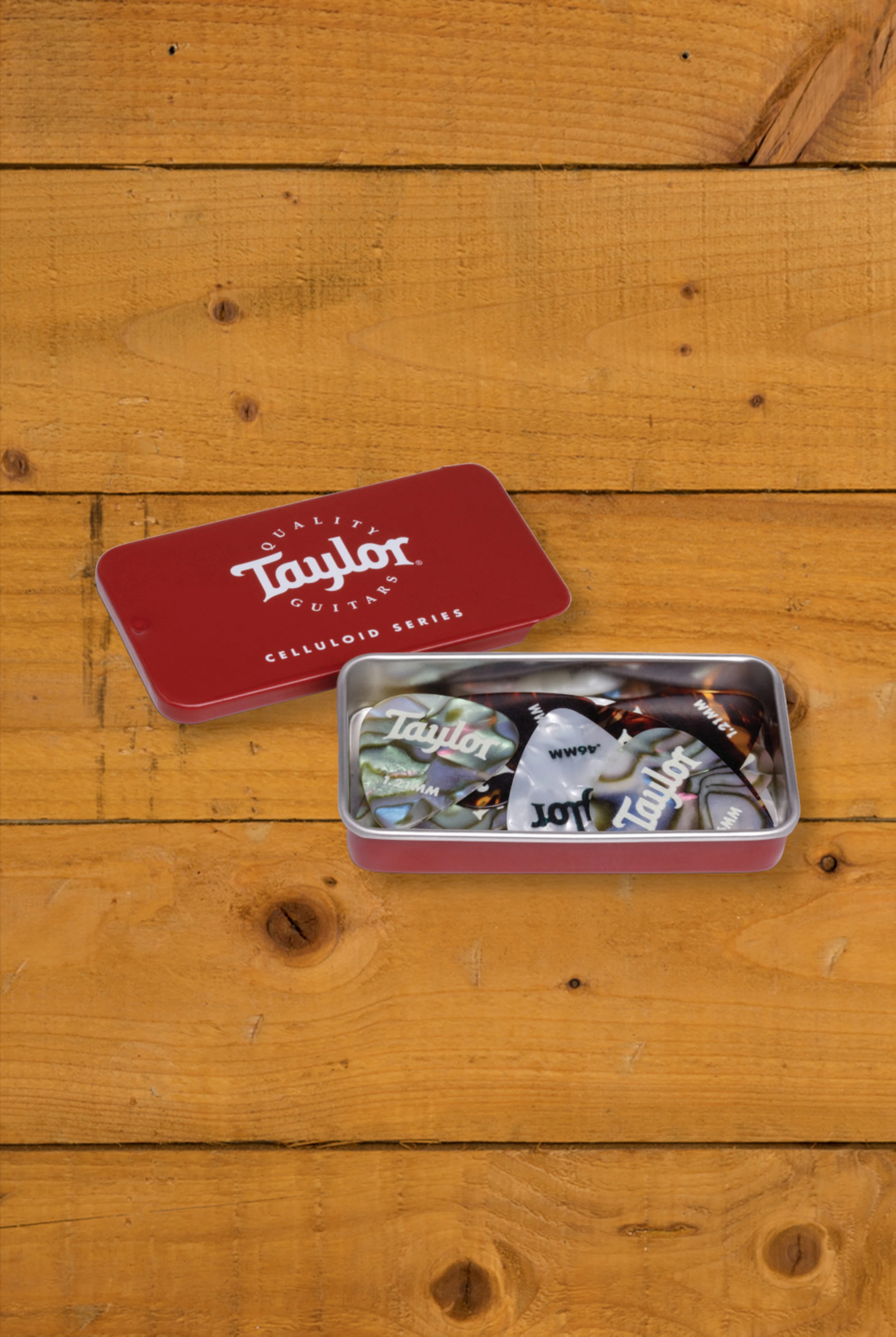 Celluloid is the world's most popular guitar pick material, offering an ideal combination of grip, sound and appearance. This pick tin includes a variety of celluloid picks in different shapes and gauges, allowing you to test out different pick styles to find the one that suits your sound.