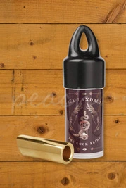The Polished Brass version gives a rich, warm tone and a golden glow in the looks department. The Rock Slide Polished Brass slides are effectively one solid brass rod that has been carved by a CNC machine to fit your finger. The brass formula that they use is very heavy to give excellent tone and sustain. The walls of the slide are generously thick and get even more so towards the end of the slide, as it tapers on the inside. There is also a tone ring at the fingertip that gives additional mass and helps your finger stay securely in place. This slide really does cut through the mix.