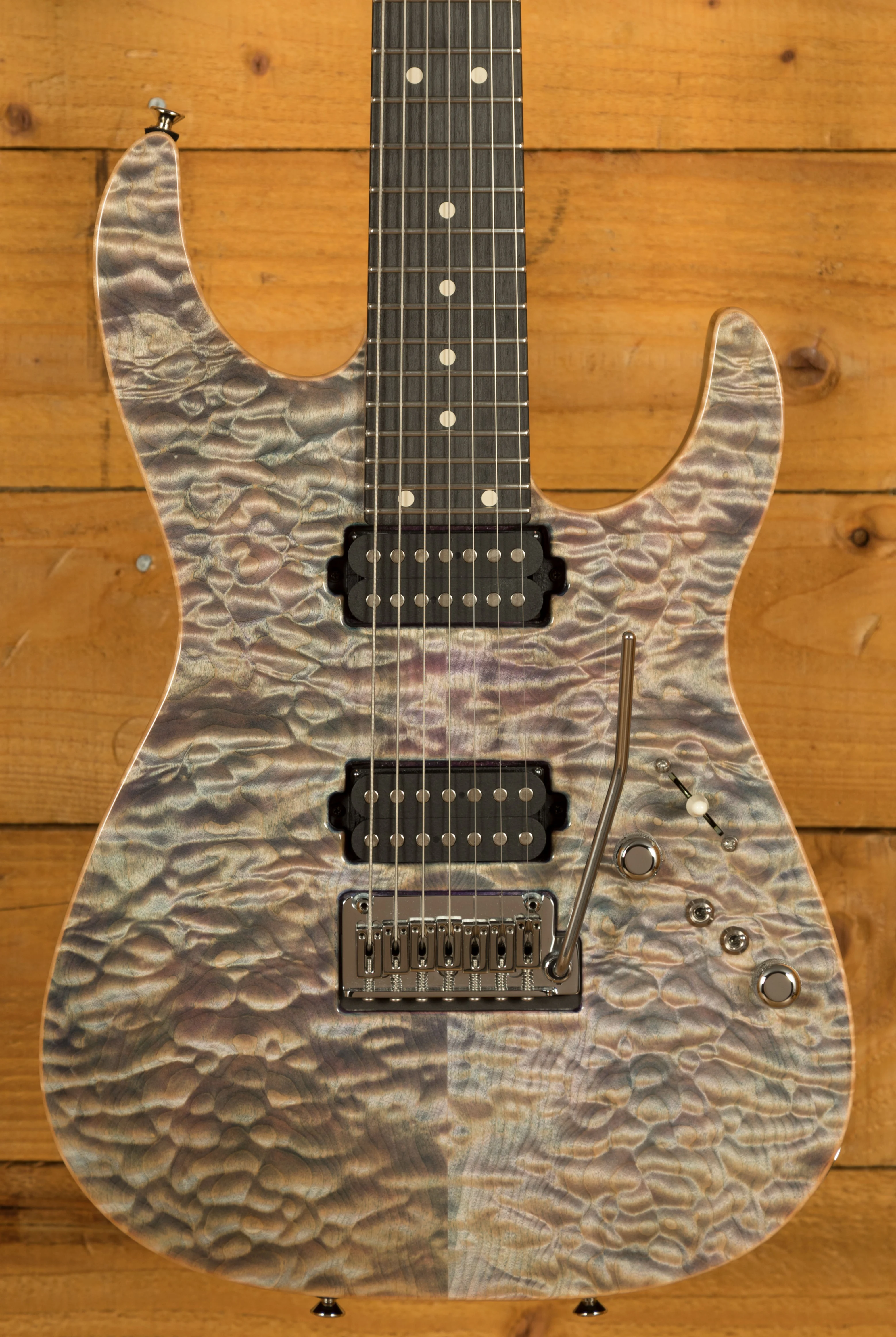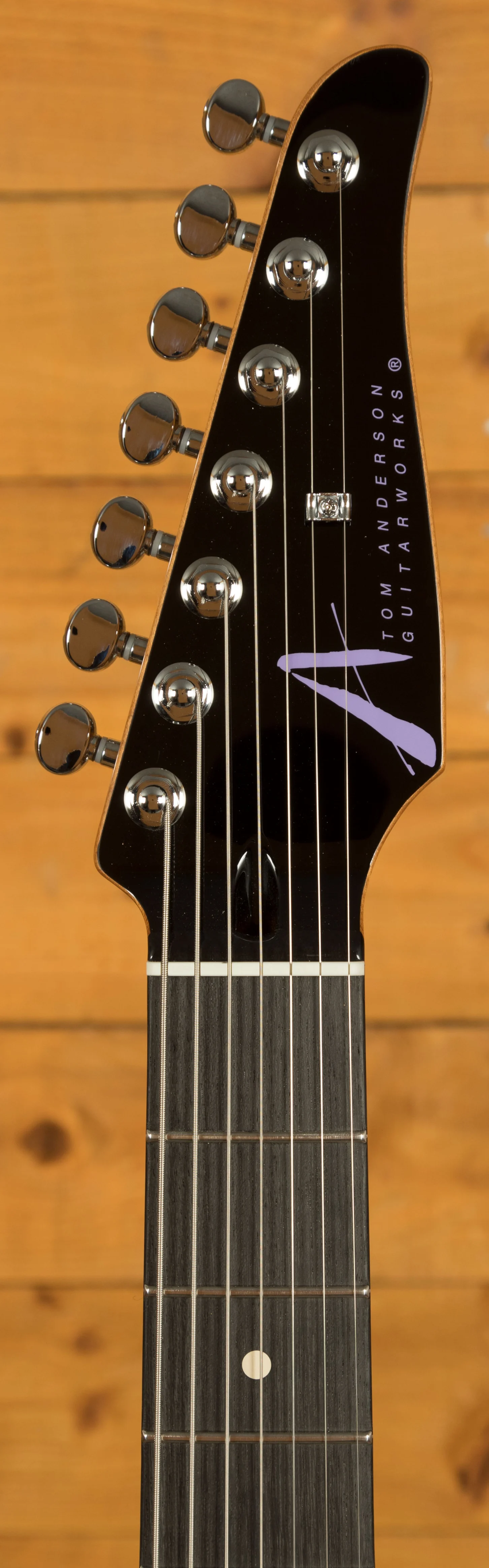 The Tom Anderson Angel 7 is a high spec powerhouse, built to a supreme quality and looking super sharp, this guitar is a real winner. The custom purple headstock logo makes for a neat final touch!