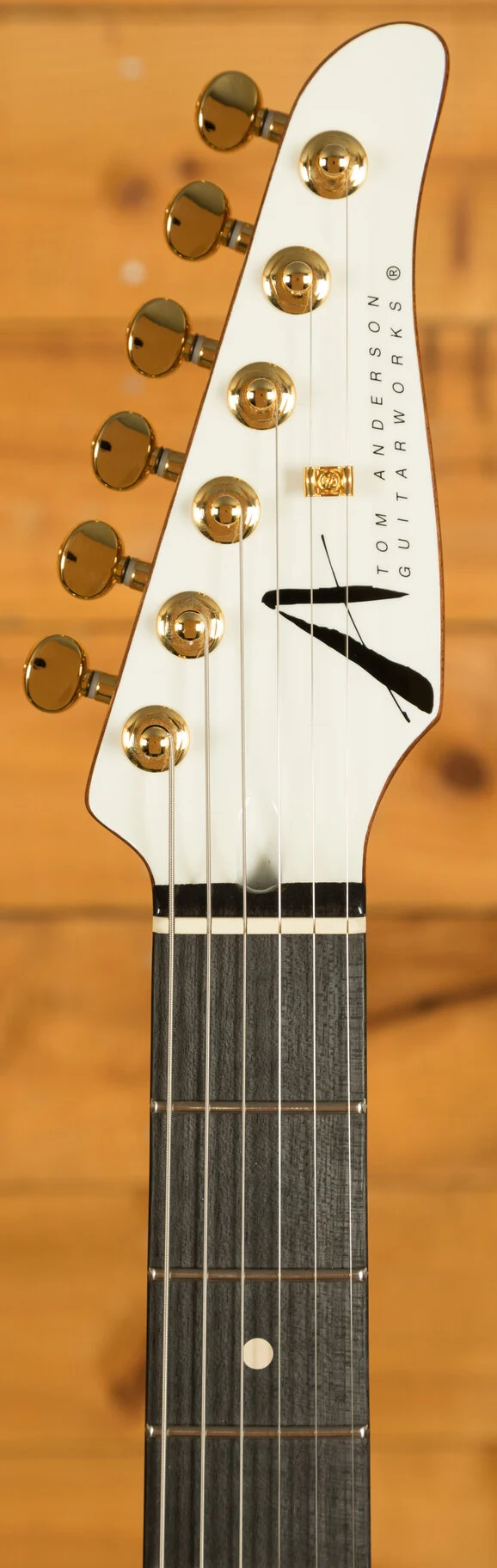With a beautiful flame Maple top on a killer Basswood body, finished in a super slick, opaque Arctic White Beautiful High Gloss, this Angel just oozes cool. Vibrant yet understated, Tom Anderson guitars always look a cut above the rest!