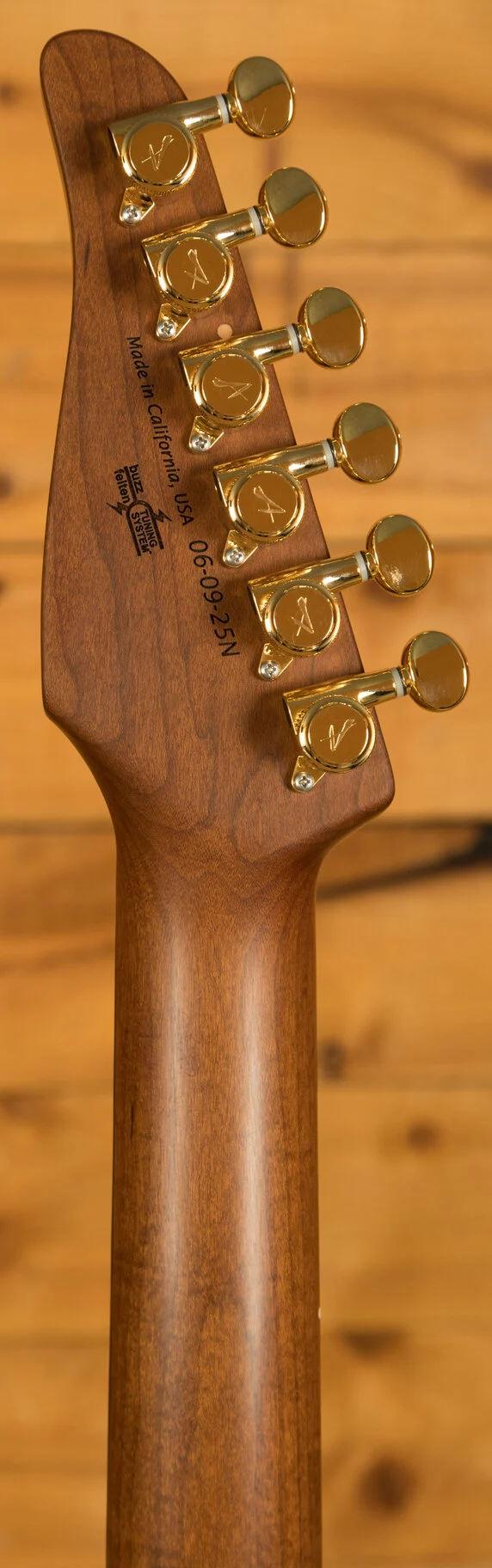 The Natural Satin Chocolate Maple neck is super stable and features an Even-Taper profile - measuring .810" at the 1st fret and .870" at the 12th - with 1 11/16" nut width and 25.5" scale length, for a slick but stable neck grip. The 12"-14" radius Blackheart fingerboard not only looks stunning but offers optimal playing all along the neck and prevents the string fretting out on bends and wide vibrato. One of the most notable features of the Angel is its fretwork. Equipped with Jumbo stainless steel frets, this guitar offers unparalleled playability and responsiveness. The stainless steel frets provide a silky smooth feel, allowing for effortless string bends and fluid vibrato.