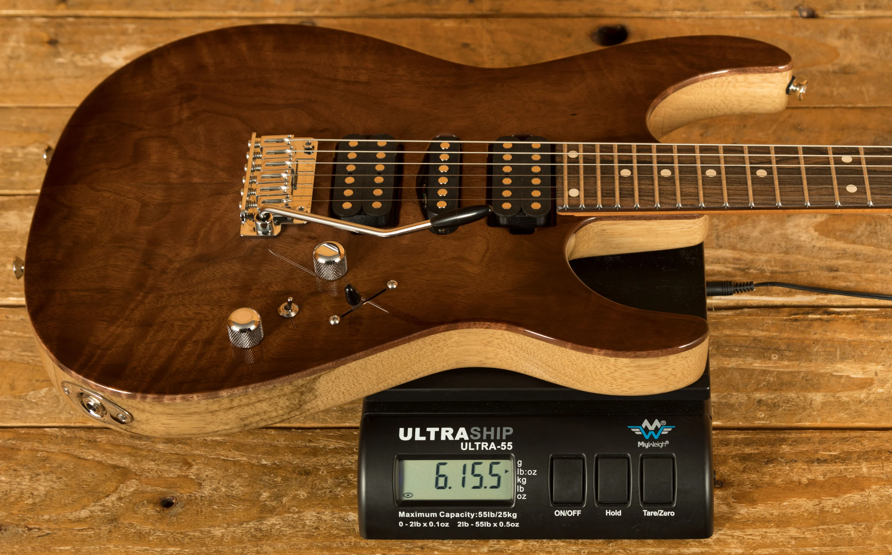 The Caramel Maple neck is super stable and features an Even-Taper +.030 profile and Natural Satin feel, for a slick but stable neck grip. The Ziricote fingerboard features some stunning figuring and offers a comfortable playing surface, perfect for any style. It features a 1 5/8-inch nut width, 25.5" scale length and 24 heavy frets