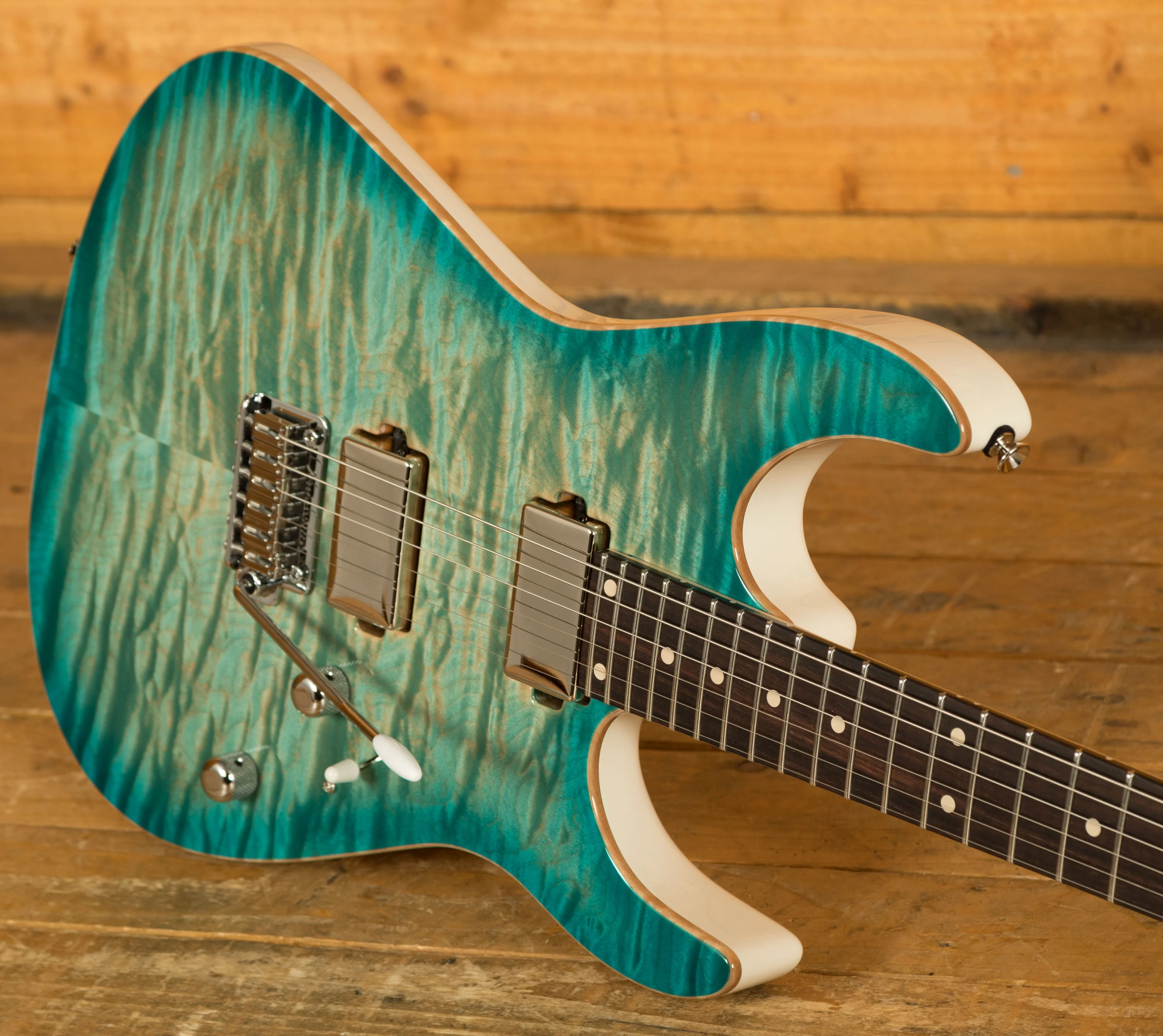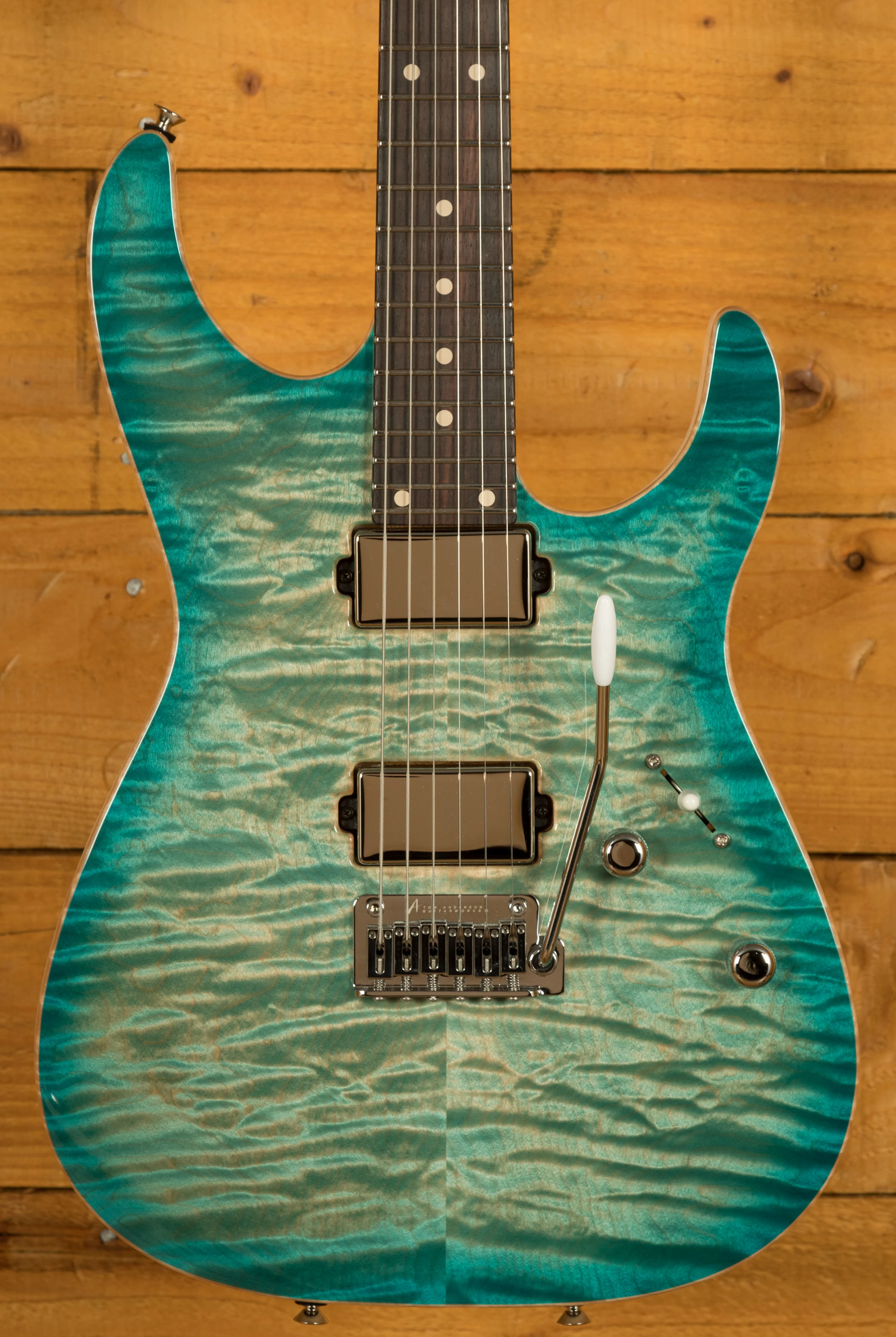 With a beautiful Quilt Maple top on a killer Alder body this Angel is rich and resonant. Finished in a vibrant Natural Bora Burst, this Angel just oozes cool. Vibrant yet understated, Tom Anderson guitars always look a cut above.