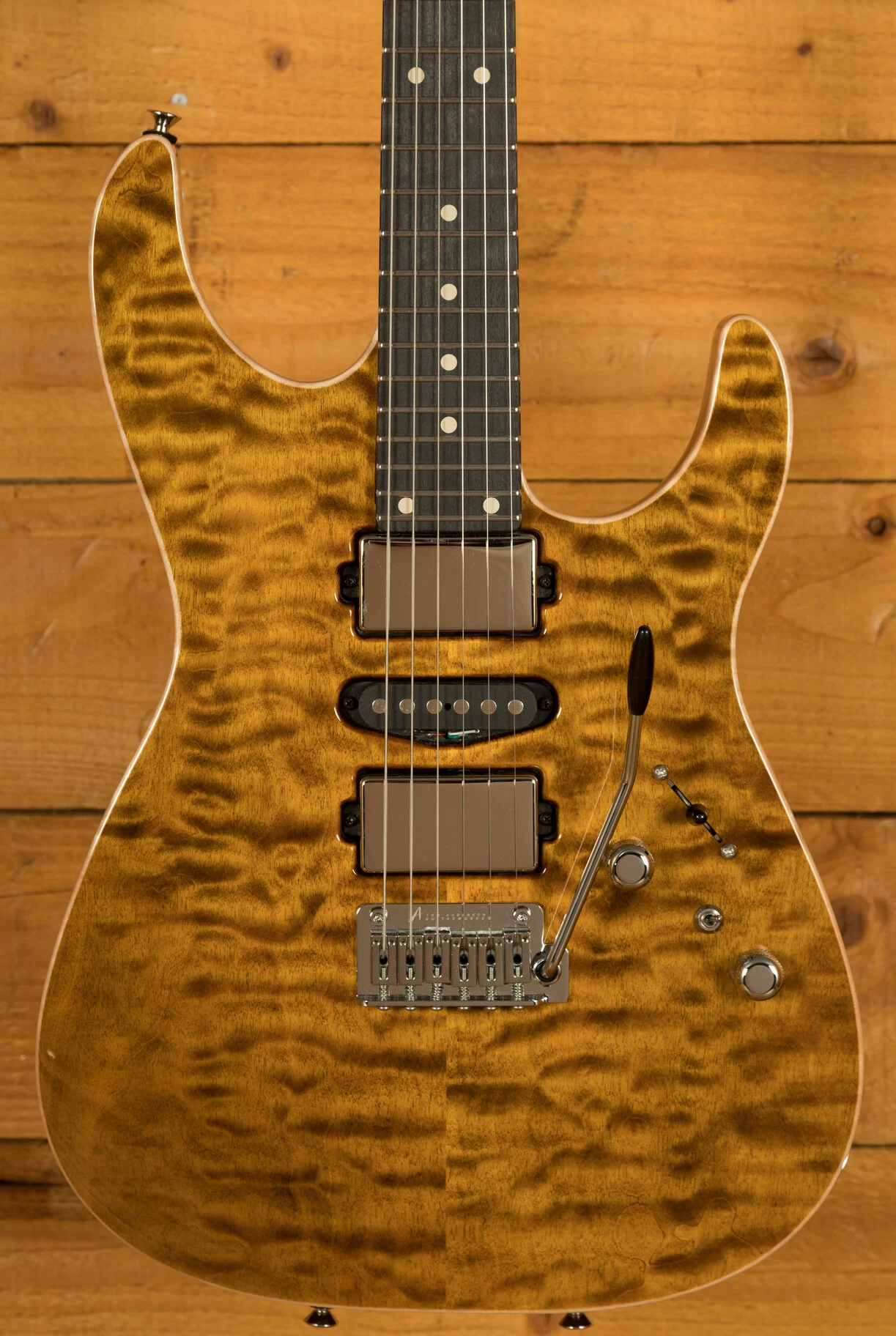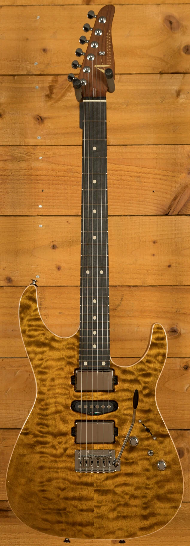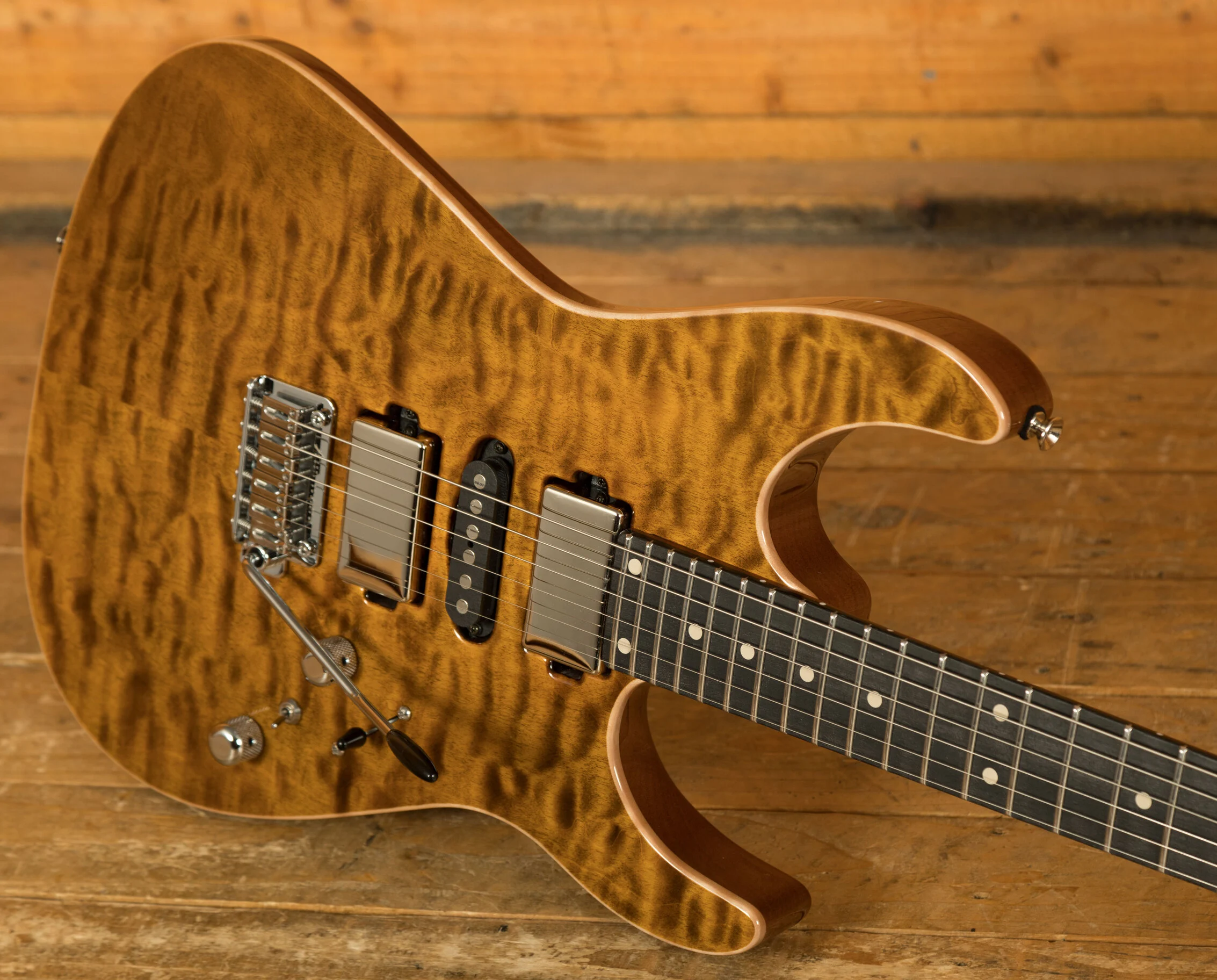 With a beautiful Quilt Maple top on a killer Okoume body, finished in a Beautiful High Gloss Tiger Eye with Binding, this Angel just oozes cool. Vibrant yet understated, Tom Anderson guitars always look a cut above the rest!
