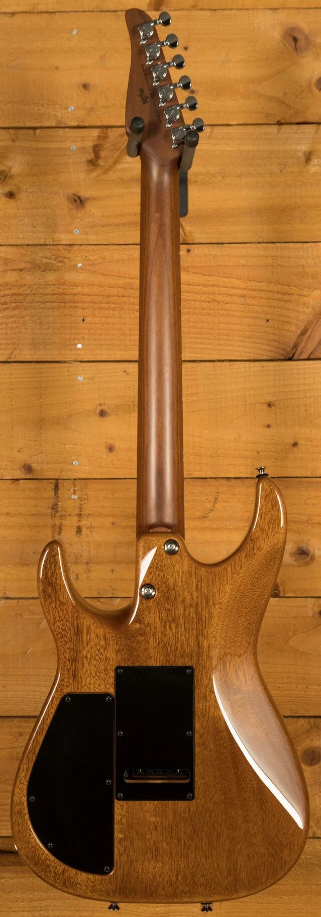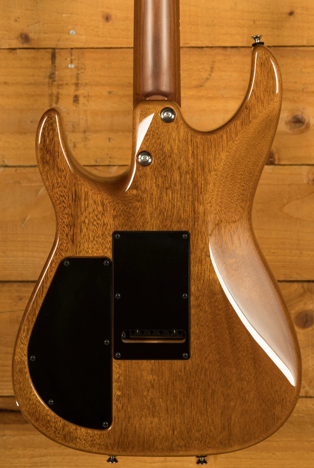 The Natural Satin Chocolate Maple neck is super stable and features an Even-Taper profile - measuring .810" at the 1st fret and .870" at the 12th - with 1 11/16" nut width and 25.5" scale length, for a slick but stable neck grip. The 12"-14" radius Blackheart fingerboard not only looks stunning but offers optimal playing all along the neck and prevents the string fretting out on bends and wide vibrato. One of the most notable features of the Angel is its fretwork. Equipped with Jumbo stainless steel frets, this guitar offers unparalleled playability and responsiveness. The stainless steel frets provide a silky smooth feel, allowing for effortless string bends and fluid vibrato.