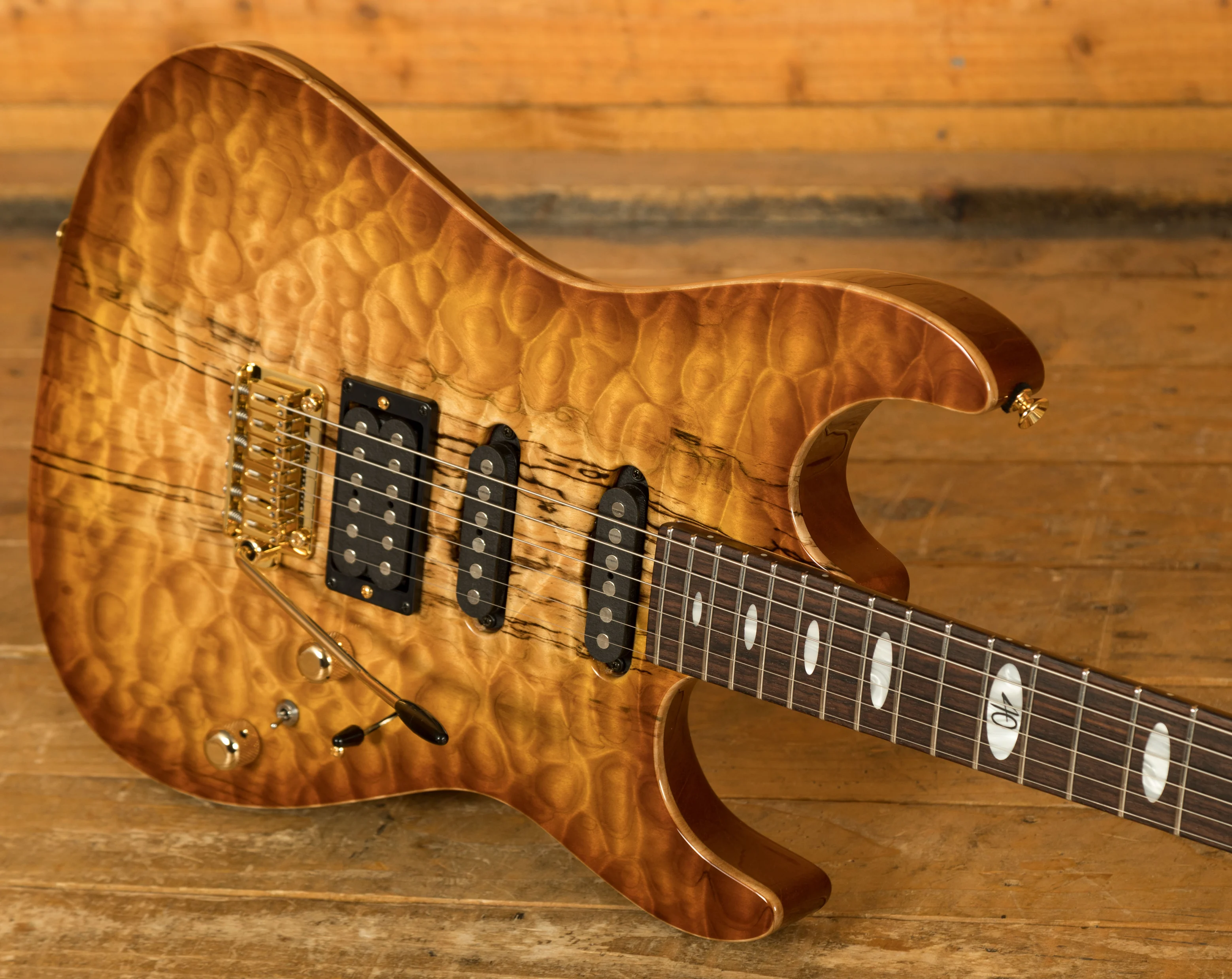 The Anderson Drop Top guitar is instantly recognisable, thanks to its striking exotic wood top. The "drop" in Drop Top refers to the innovative technique where the maple top is bent to create a comfortable forearm contour. This not only enhances the guitar's ergonomic feel but also adds to its aesthetic allure with sweeping body lines that catch the eye.