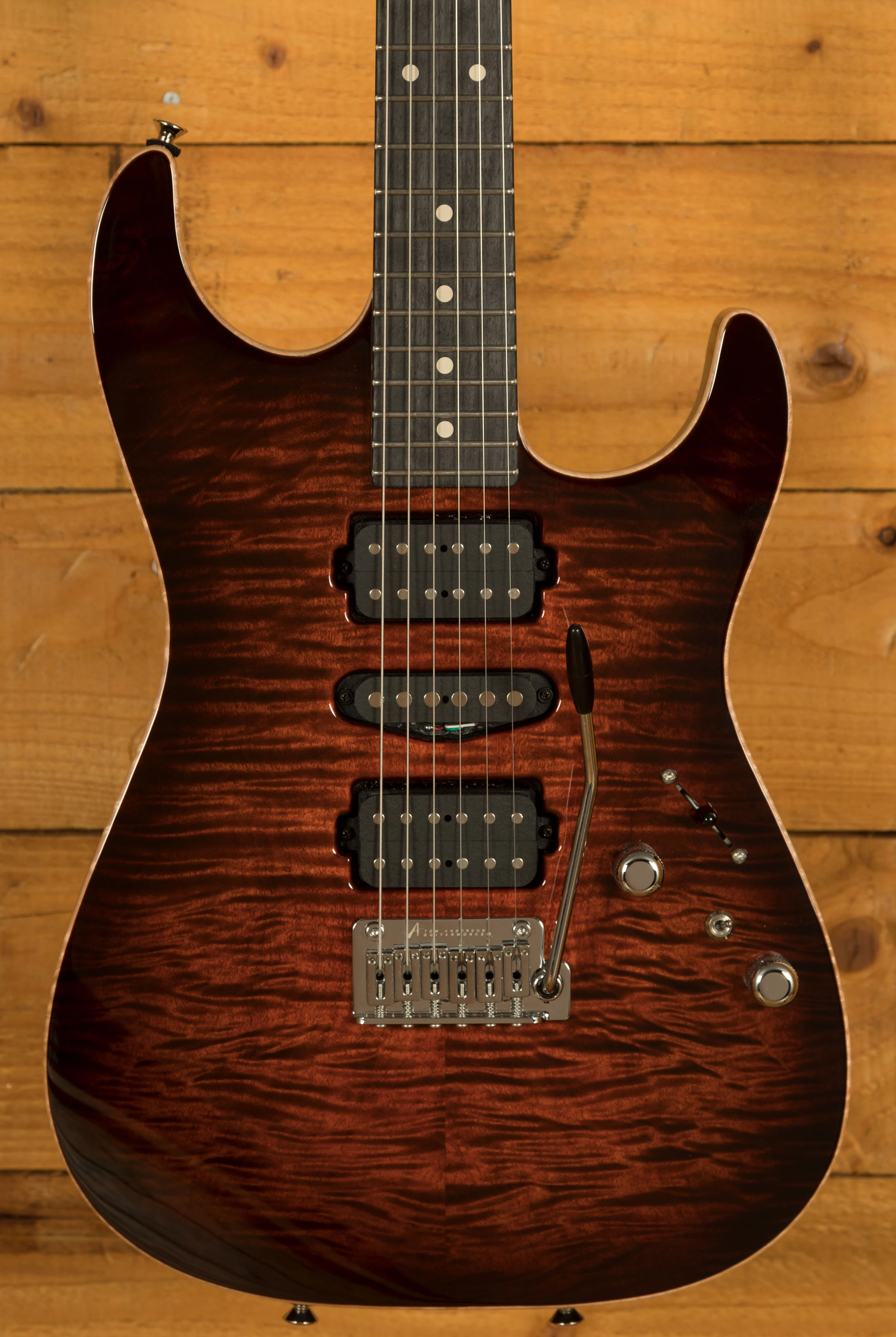 The neck is crafted from caramel maple and paired with a blackheart fingerboard. Anderson's choice of a fingerboard radius ranging from 12 to 14 inches ensures optimal playability, facilitating effortless string bending and smooth fretting across the entire range of the guitar.