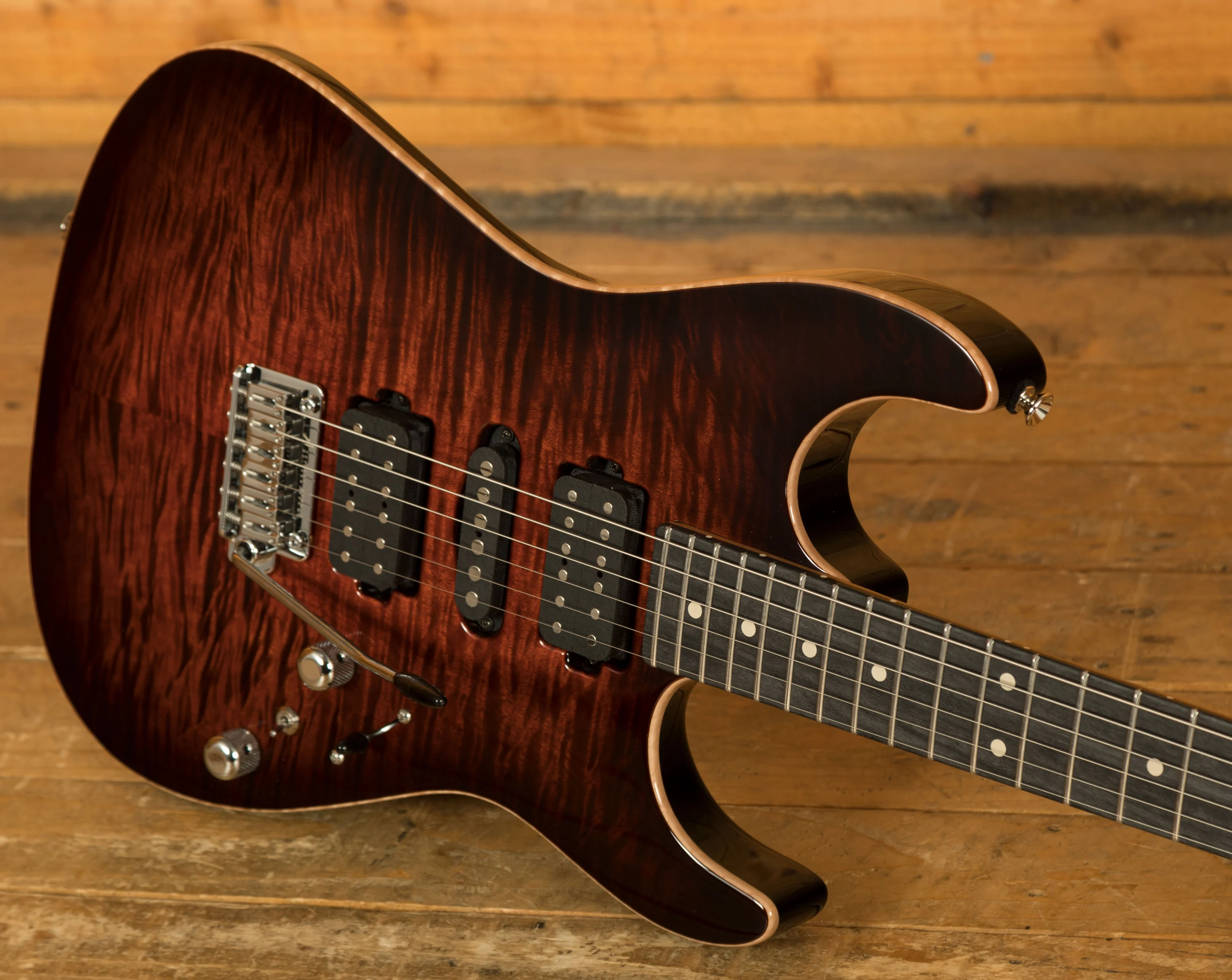 The Anderson Drop Top guitar is instantly recognisable, thanks to its striking exotic wood top. The "drop" in Drop Top refers to the innovative technique where the maple top is bent to create a comfortable forearm contour. This not only enhances the guitar's ergonomic feel but also adds to its aesthetic allure with sweeping body lines that catch the eye.