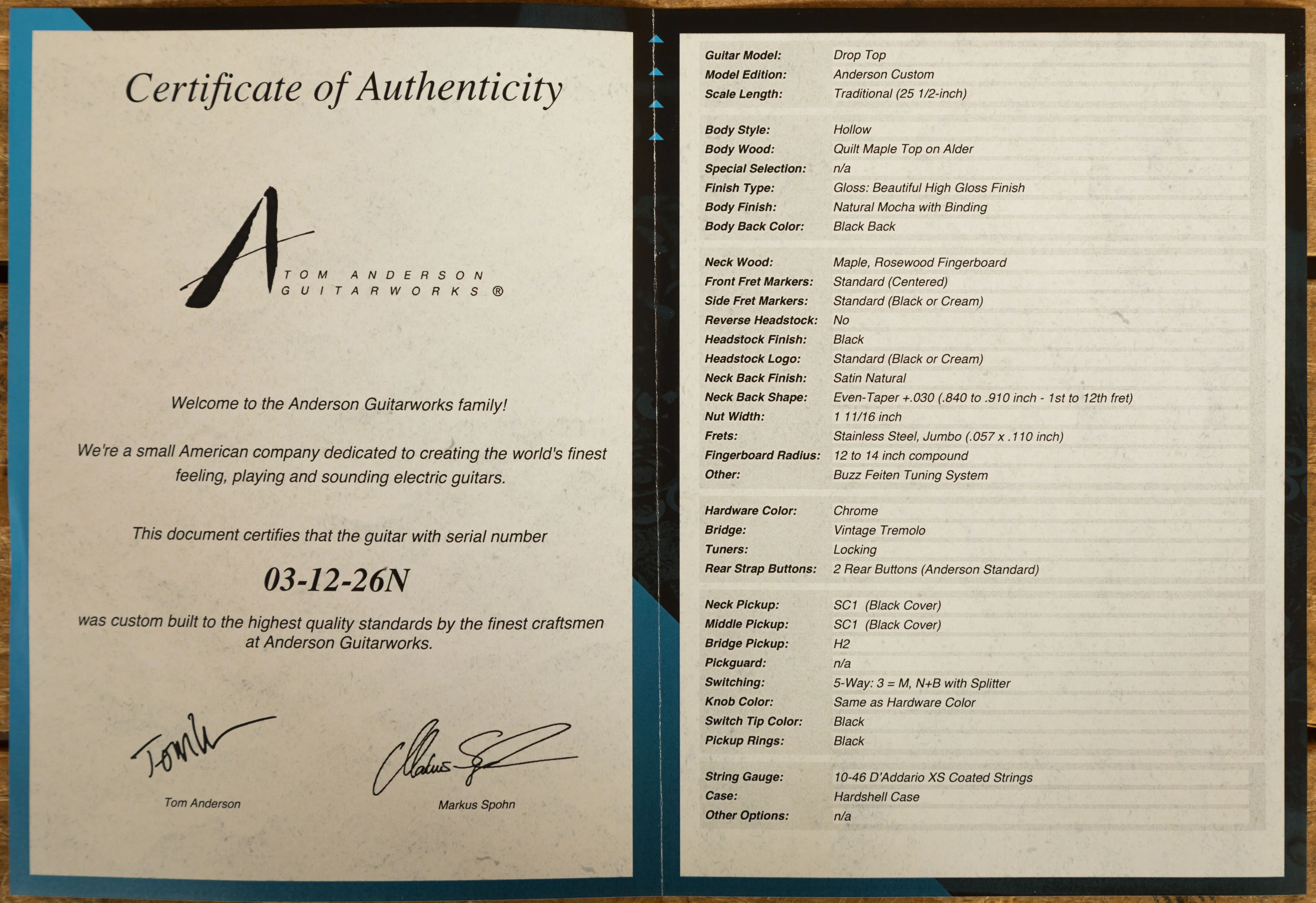The Tom Anderson Drop Top Classic Hollow is a high spec powerhouse, built to a supreme quality and looking super sharp, this guitar is a real winner.