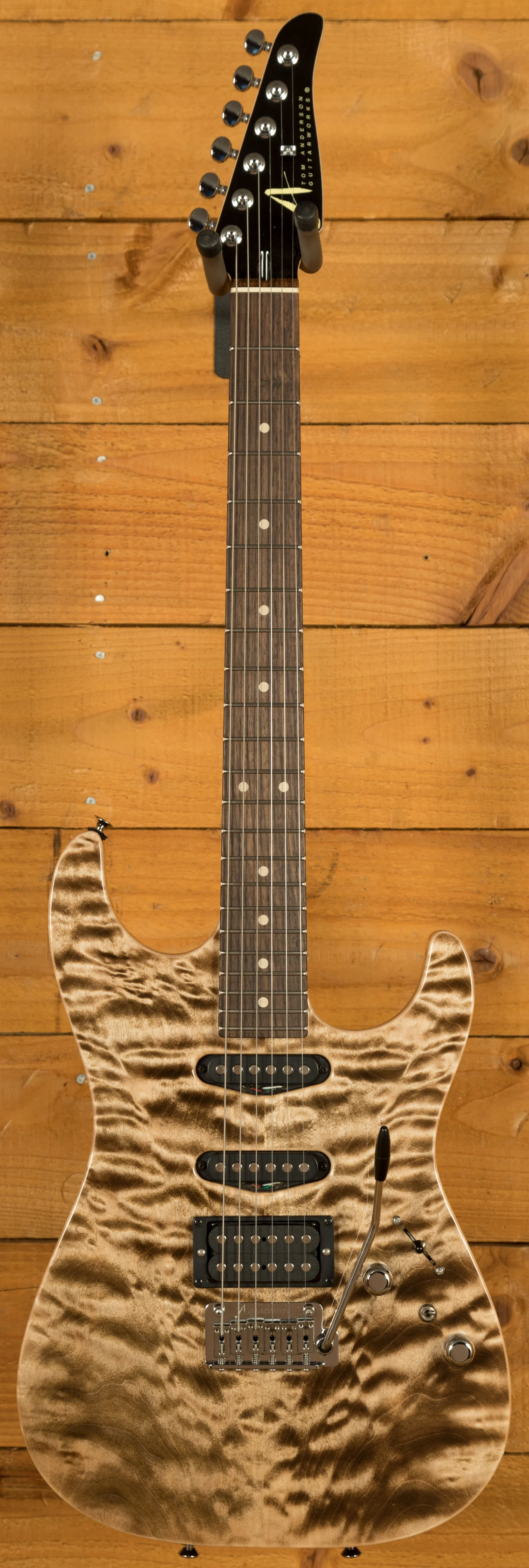 Rocking Tom Anderson SC1 single-coils and a H2 humbucker, you have tonnes of tonal options here, it has a really nice, vintage tone. The 5-way pickup selector and splitter add that extra layer of versatility. With locking tuners and a vintage tremolo bridge, you get incredible tuning stability and intonation.
