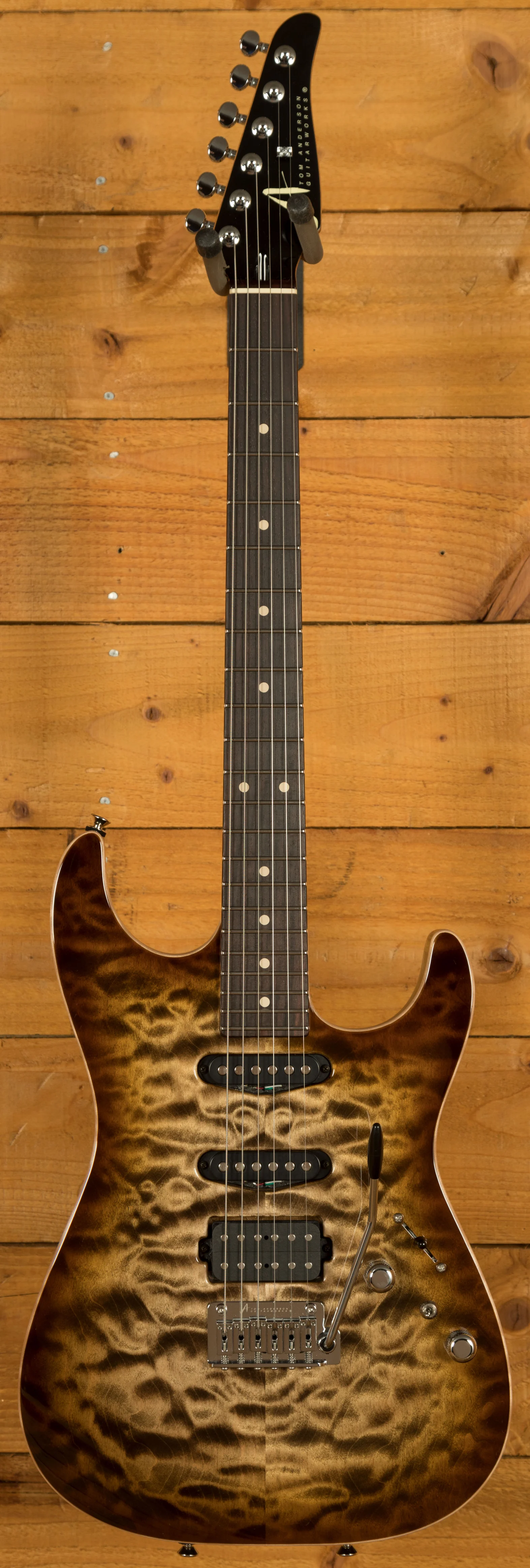 Before the Drop Top's introduction in 1990, guitars with a maple top designed in this manner were non-existent. Anderson's decision to use a 3/16-inch body top thickness further enriches the instrument's sonic character, ensuring a rich and resonant tone that complements its visual appeal and Alder body back.