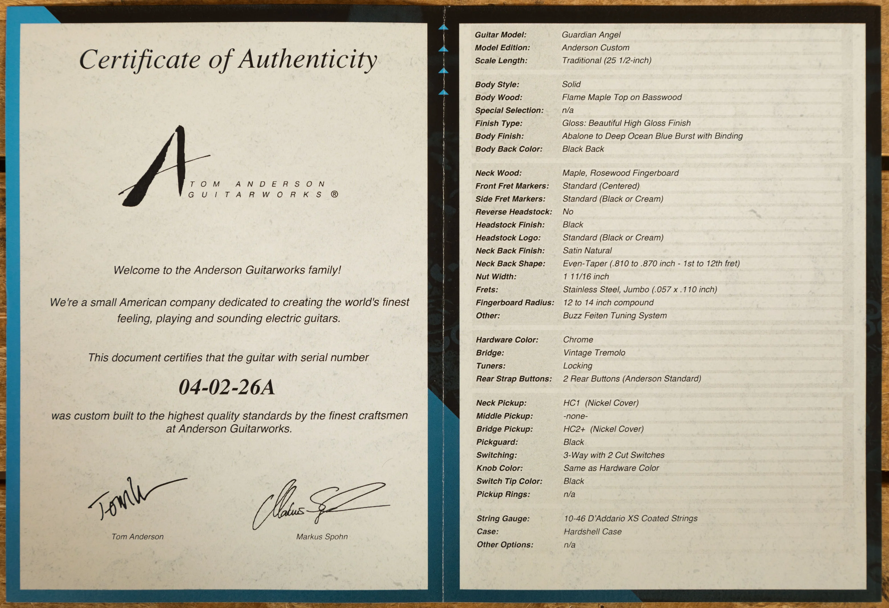 The Tom Anderson Guardian Angel is a high spec powerhouse, built to a supreme quality and looking super sharp, this guitar is a real winner.
