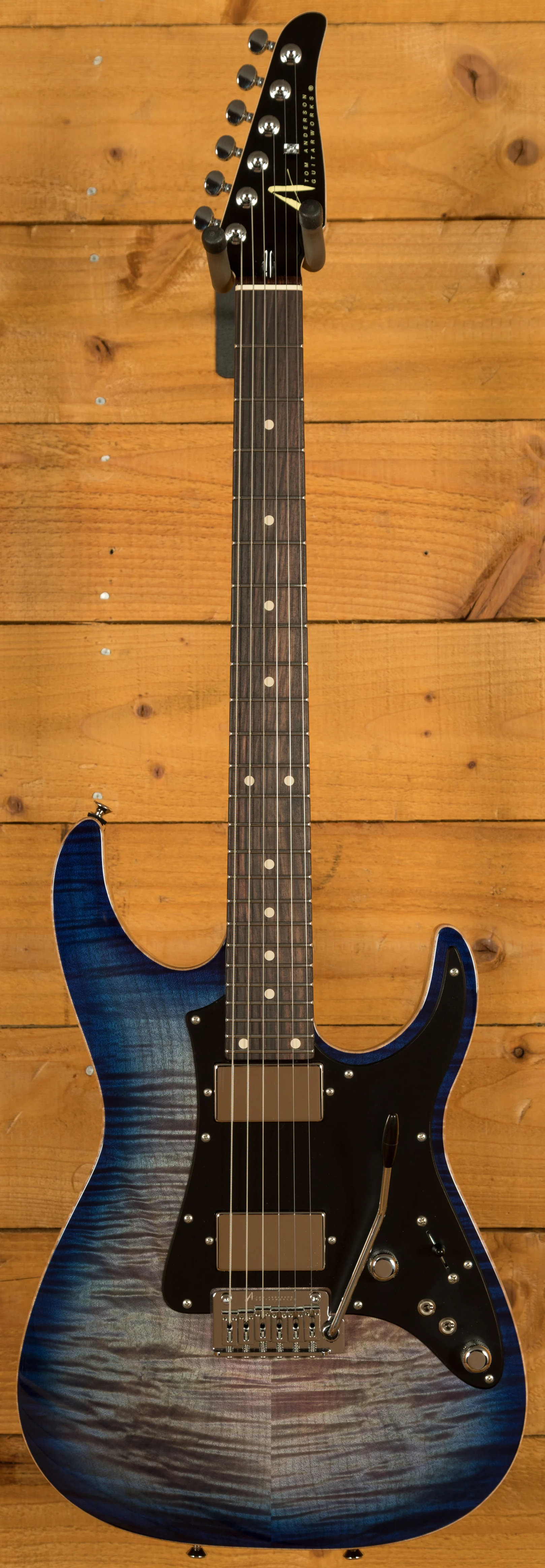 With a beautiful Flame Maple top on a killer Basswood body this Guardian Angel is super rich and incredibly resonant. Finished in a vibrant Abalone to Deep Ocean Blue Burst, this Angel just oozes cool. Vibrant yet understated. It even features some slick body binding for extra visual goodness and a pickguard for classic styling and protection! Tom Anderson guitars always look a cut above.
