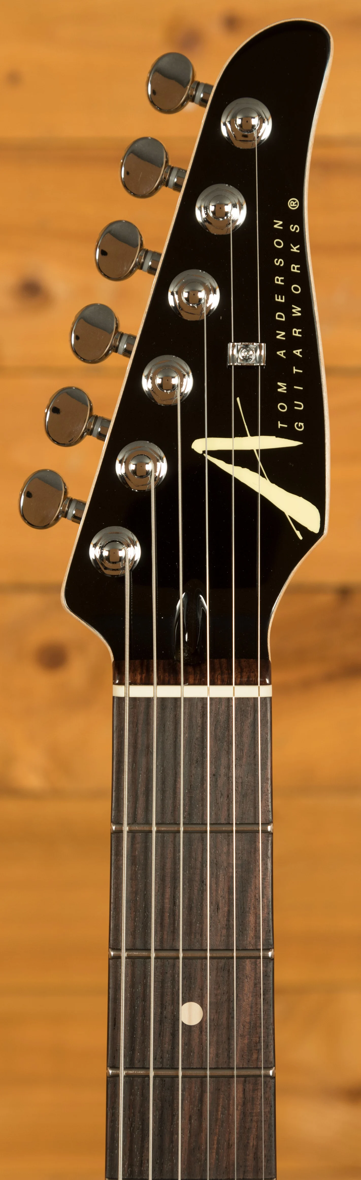 Rocking a pair of Tom Anderson HC1 and HC2+ humbucker pickups, you have tonnes of tonal options here - especially with the 2 Cut switches. With a really nice, focussed feel and unbelievable clarity, this is a real players guitar. Equipped with locking tuners and a vintage trem, you get incredible tuning stability and intonation.
