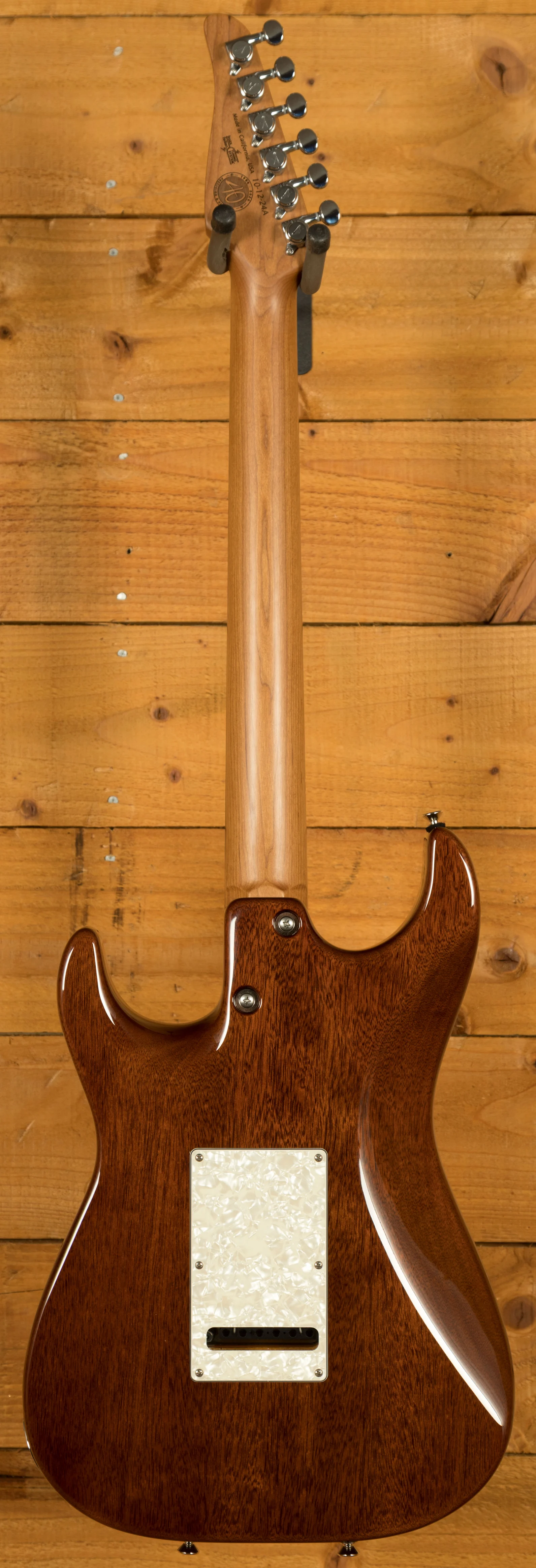 The body construction of the Drop Top Classic Hollow is a harmonious blend of materials, featuring a flame maple top paired with Okoume. This combination yields a rich, full-bodied sound with a punchy response. The addition of sealed chambers further enhances the guitar's resonance, providing a gentle attack and an airy quality to the tone - not to mention a further weight reduction to an already light guitar.