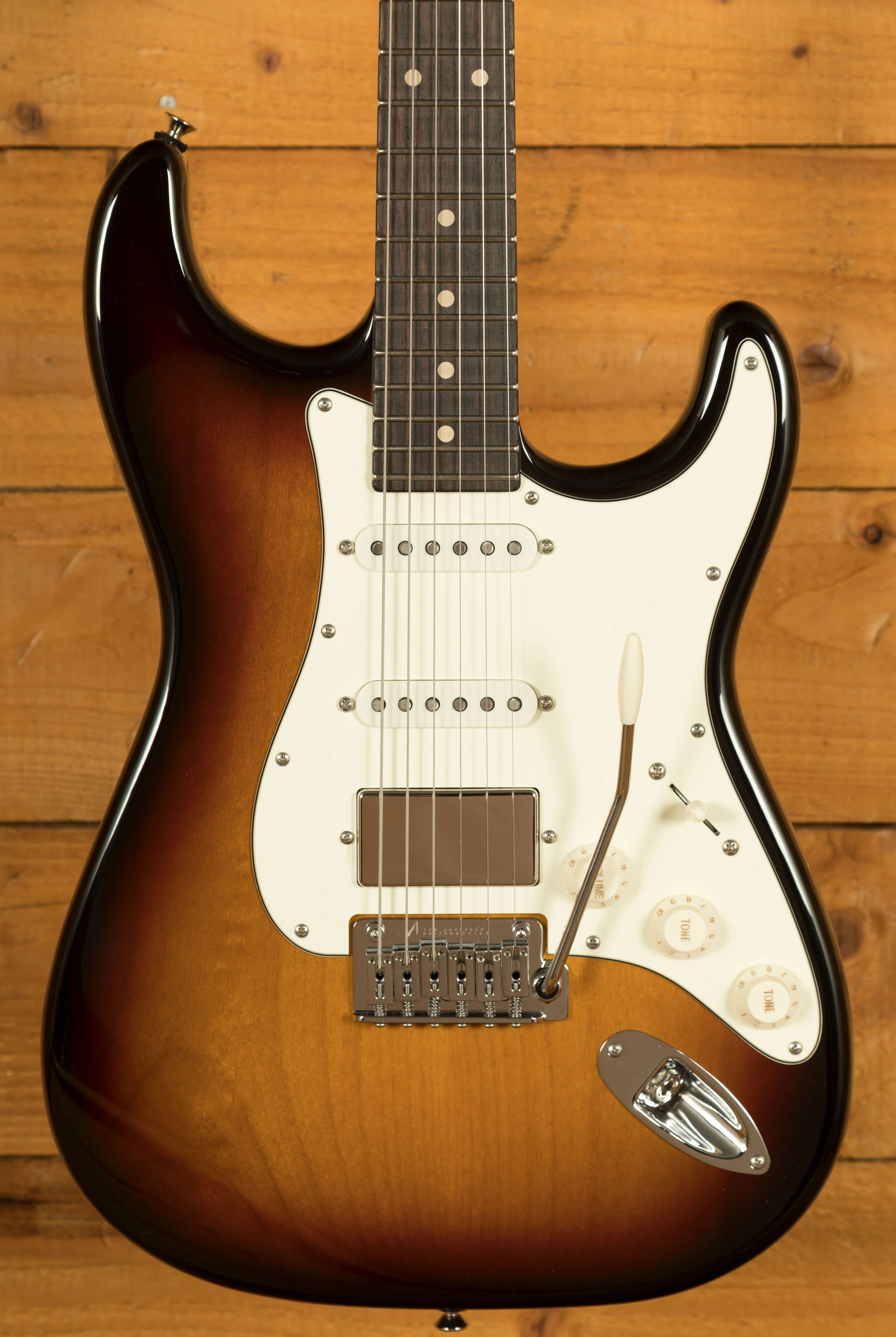 The Icon Classic features locking tuners and a vintage tremolo bridge, combining durability with classic aesthetics. Rocking Tom Anderson VA7.2R, VA7.2 and HC1+ pickups, you have tonnes of tonal options here, it has a really nice, focussed tone and with a 5-way switch and coil split, you have even more tonal variations.