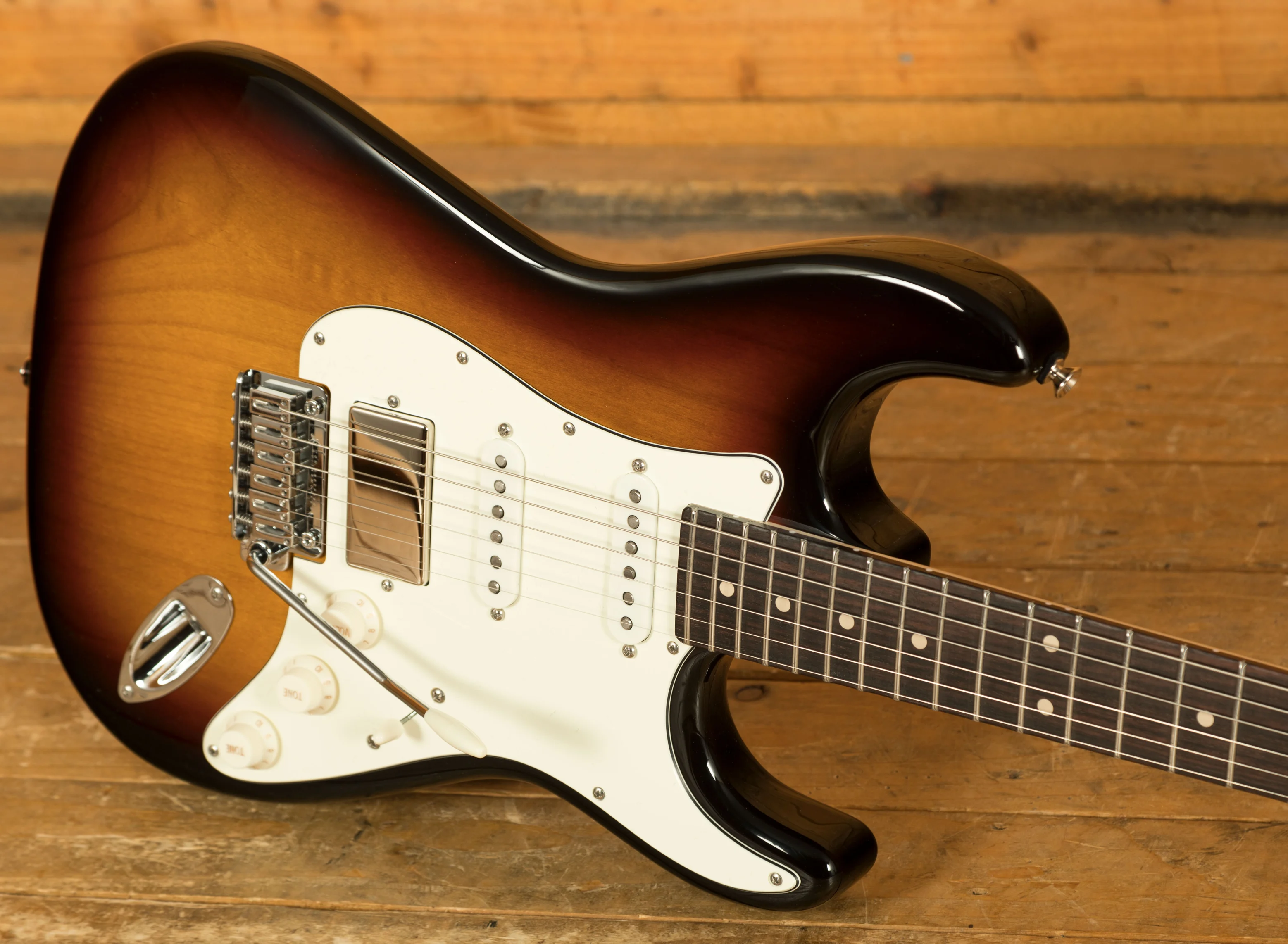 The body of the Icon Classic is constructed from alder as an authentic vintage tonewood. The classic 3 Colour Burst, completed with a beautiful high gloss finish, enhances the guitar's visual appeal. The neck is made from maple, finished with a satin natural coating, ensuring a smooth and comfortable playing experience.The 60's Vibe neck profile - measuring .835" at the 1st fret and .960" at the 12th - ensures an authentic vintage feel that you would expect from a guitar of this aesthetic. The rosewood fingerboard comes with a 1 11/16" nut width and 12"-14" compound radius for effortless playability and comfort.