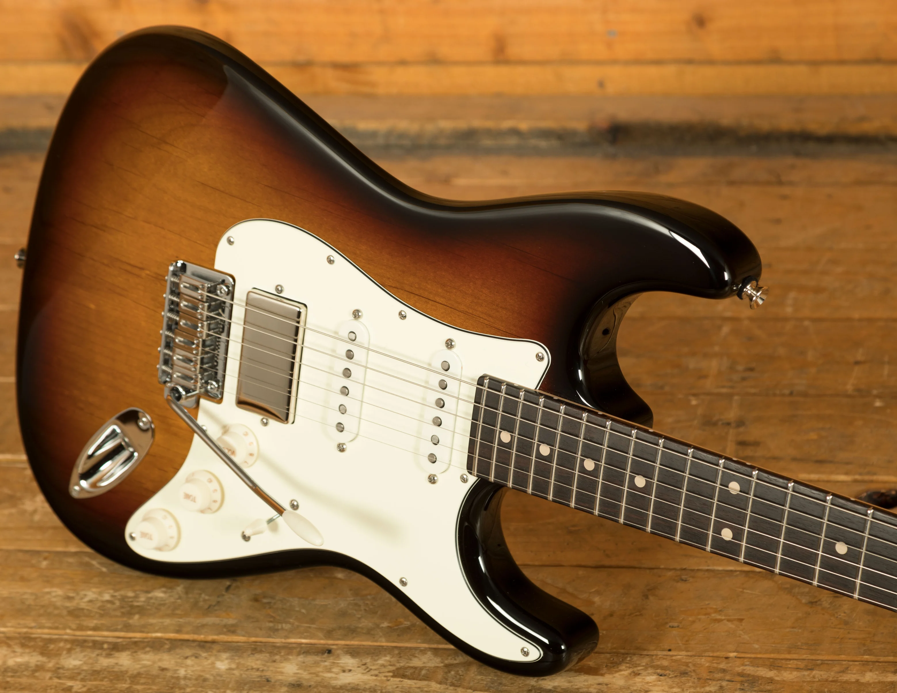 The body of the Icon Classic is constructed from alder as an authentic vintage tonewood. The classic 3 Colour Burst, completed with a beautiful high gloss finish, enhances the guitar's visual appeal. The neck is made from maple, finished with a satin natural coating, ensuring a smooth and comfortable playing experience.The 60's Vibe neck profile - measuring .835" at the 1st fret and .960" at the 12th - ensures an authentic vintage feel that you would expect from a guitar of this aesthetic. The rosewood fingerboard comes with a 1 11/16" nut width and 12"-14" compound radius for effortless playability and comfort.