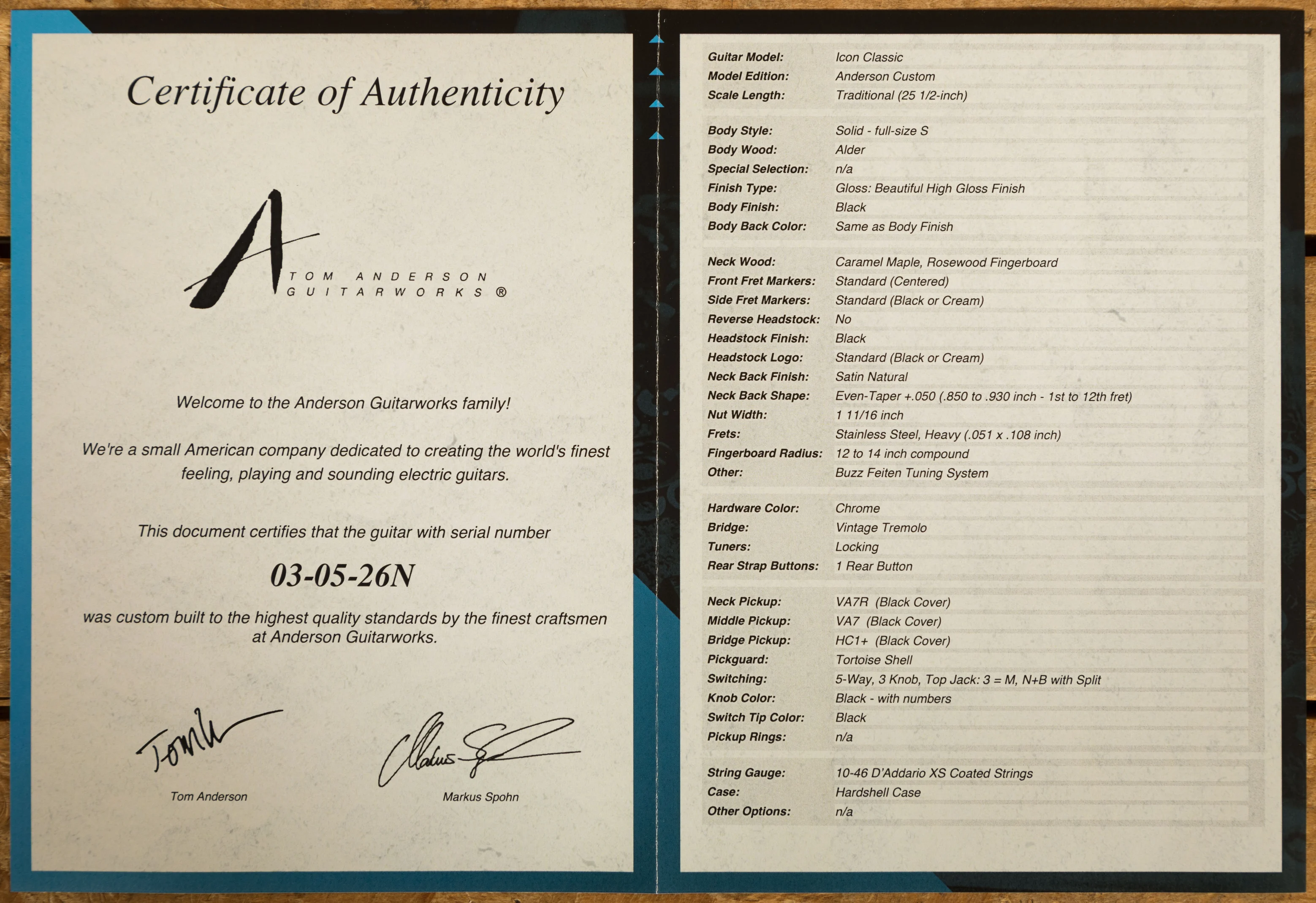 Inspired by classic S-type guitars from the '60s the Tom Anderson Icon Classic offers a unique blend of classic styling and modern playability.