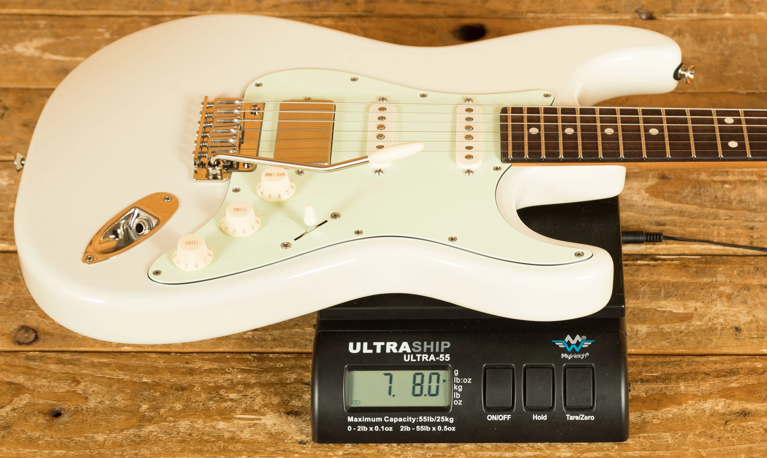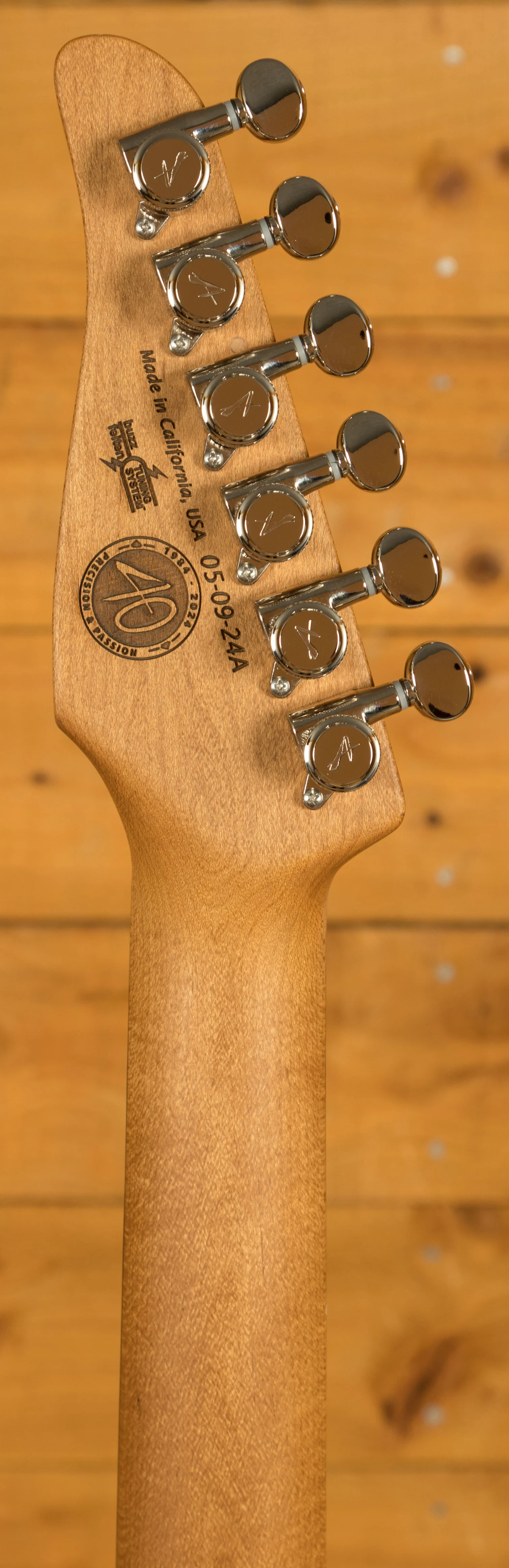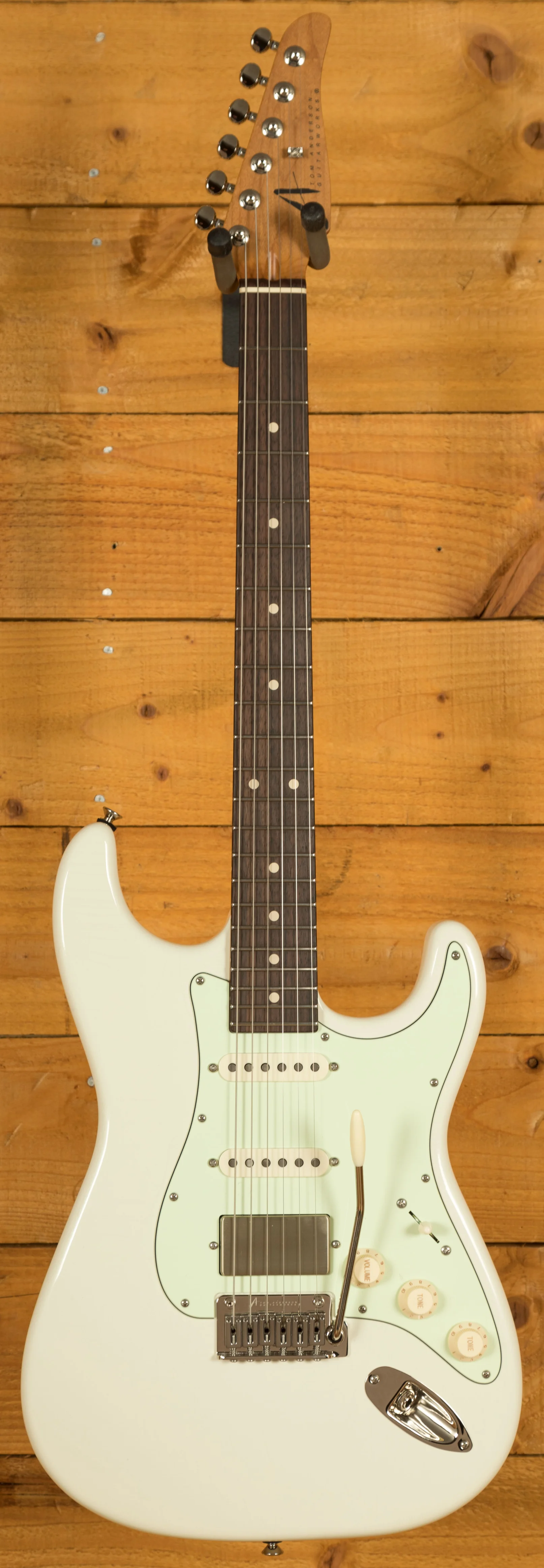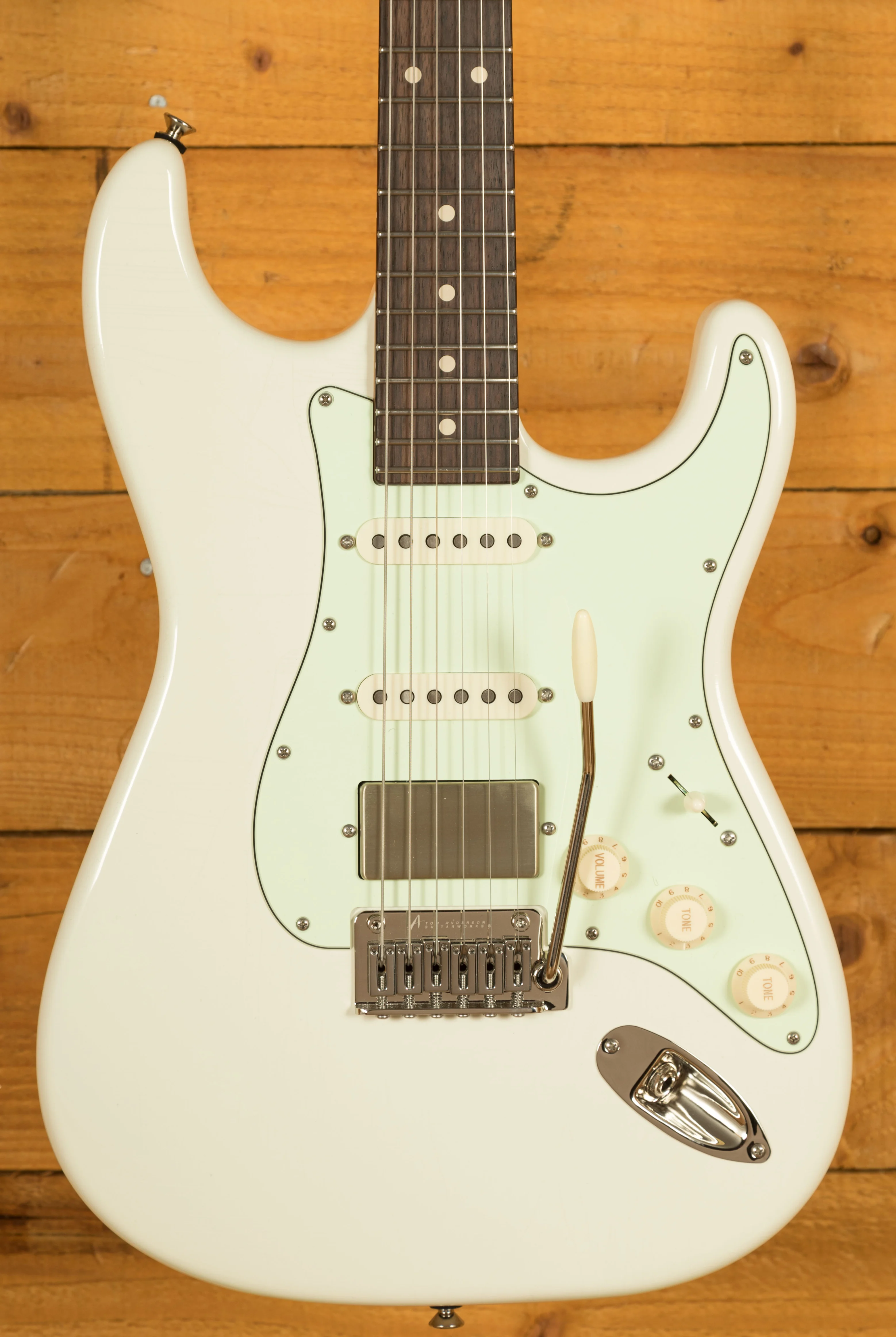 Rocking Tom Anderson VA7.2R, VA7.2 and HC1+ pickups, you have tonnes of tonal options here, it has a really nice, focussed tone. With locking tuners and a vintage tremolo bridge, you get incredible tuning stability and intonation which is further enhanced with the Buzz Feiten Tuning System.