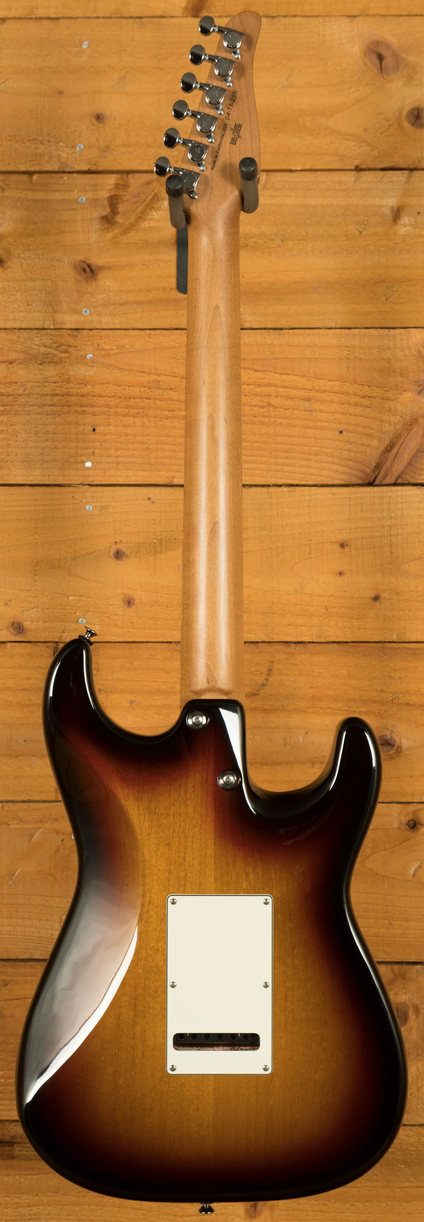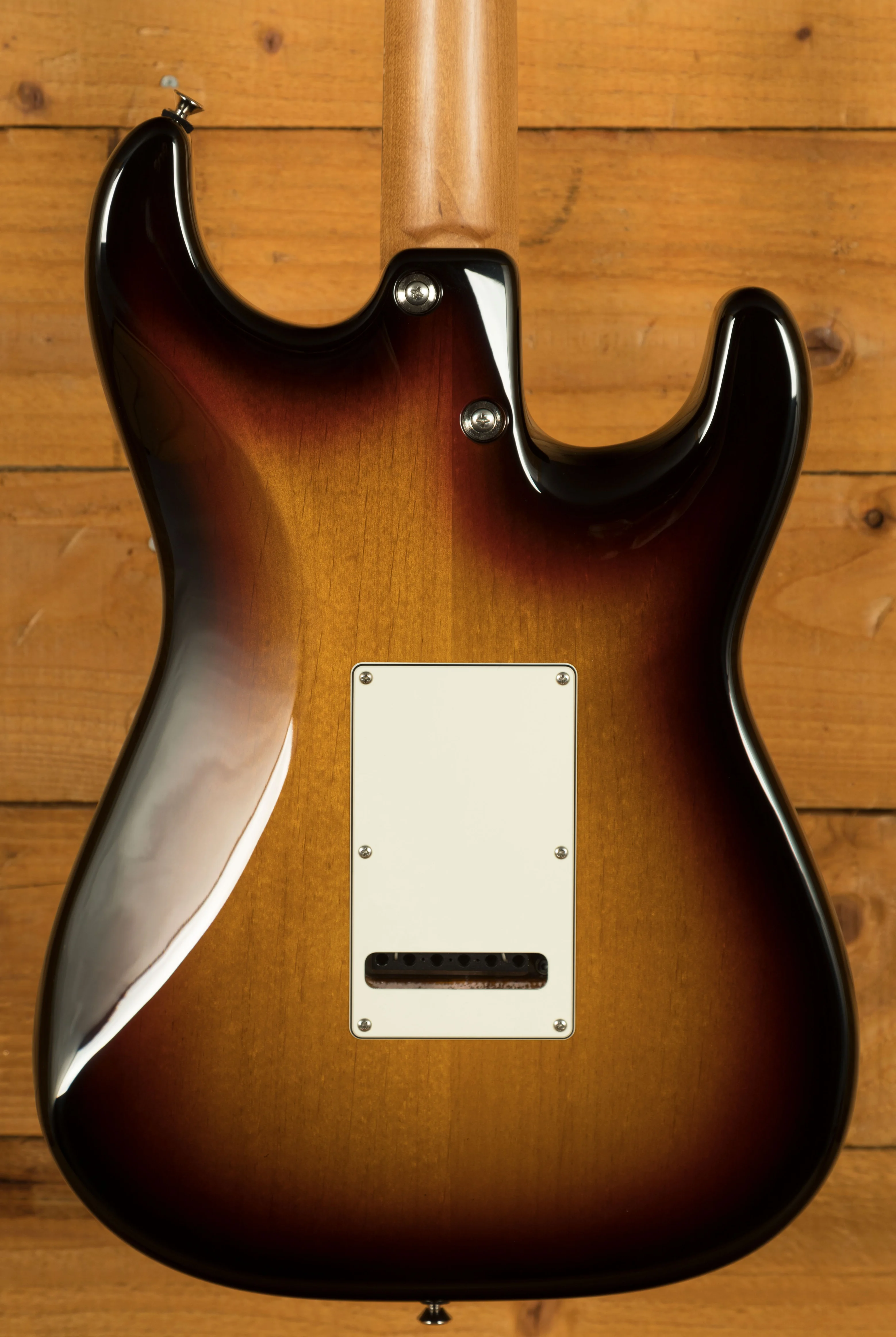 The body of the Icon Classic is constructed from alder as an authentic vintage tonewood. The classic 3 Colour Sunburst finish, completed with a beautiful high gloss, enhances the guitar's visual appeal. The neck is made from caramel maple, finished with a satin natural coating, ensuring a smooth and comfortable playing experience. One of Anderson's standout features is their Even Taper +.030 neck profile, favoured for its sleek and fast feel. This profile maintains consistent depth from the nut to the 12th fret, ensuring a comfortable playing experience even as you move up the neck.