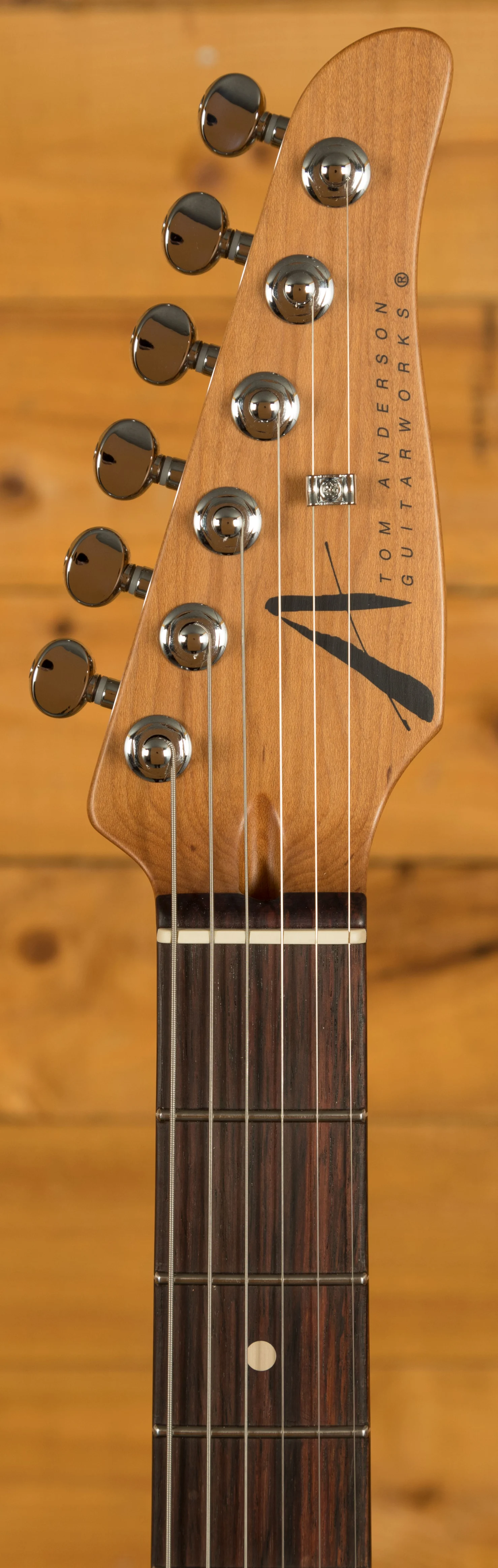 With a nut width of 1 11/16" and Anderson's second-largest frets, the Heavy stainless steel frets, the playability is perfectly matched to this guitar. Stainless steel frets offer unparalleled smoothness, facilitating effortless string bends and vibrato. The fingerboard's 12 to 14-inch radius provides a perfect balance of comfort and playability, allowing for low action height and effortless string bending.
