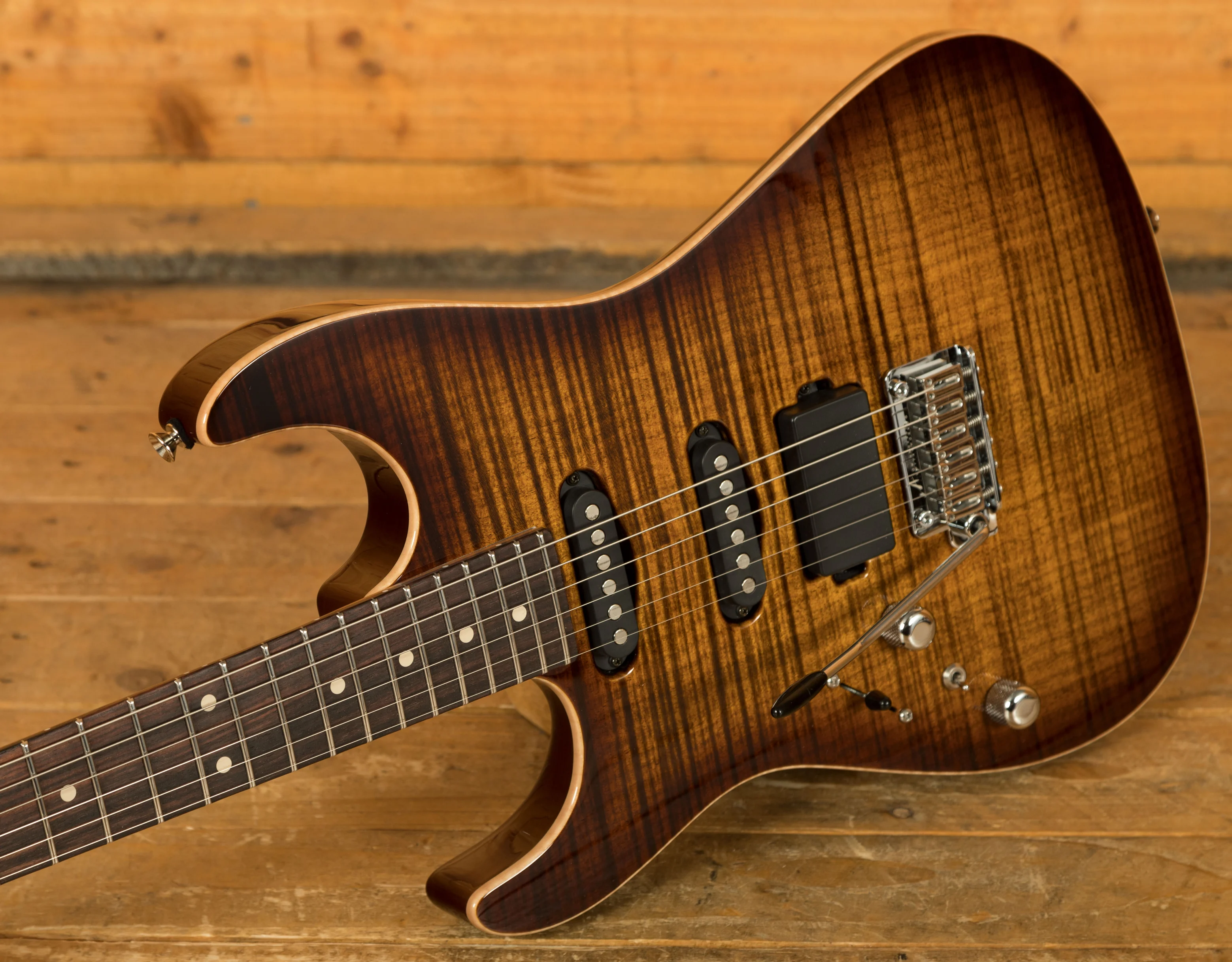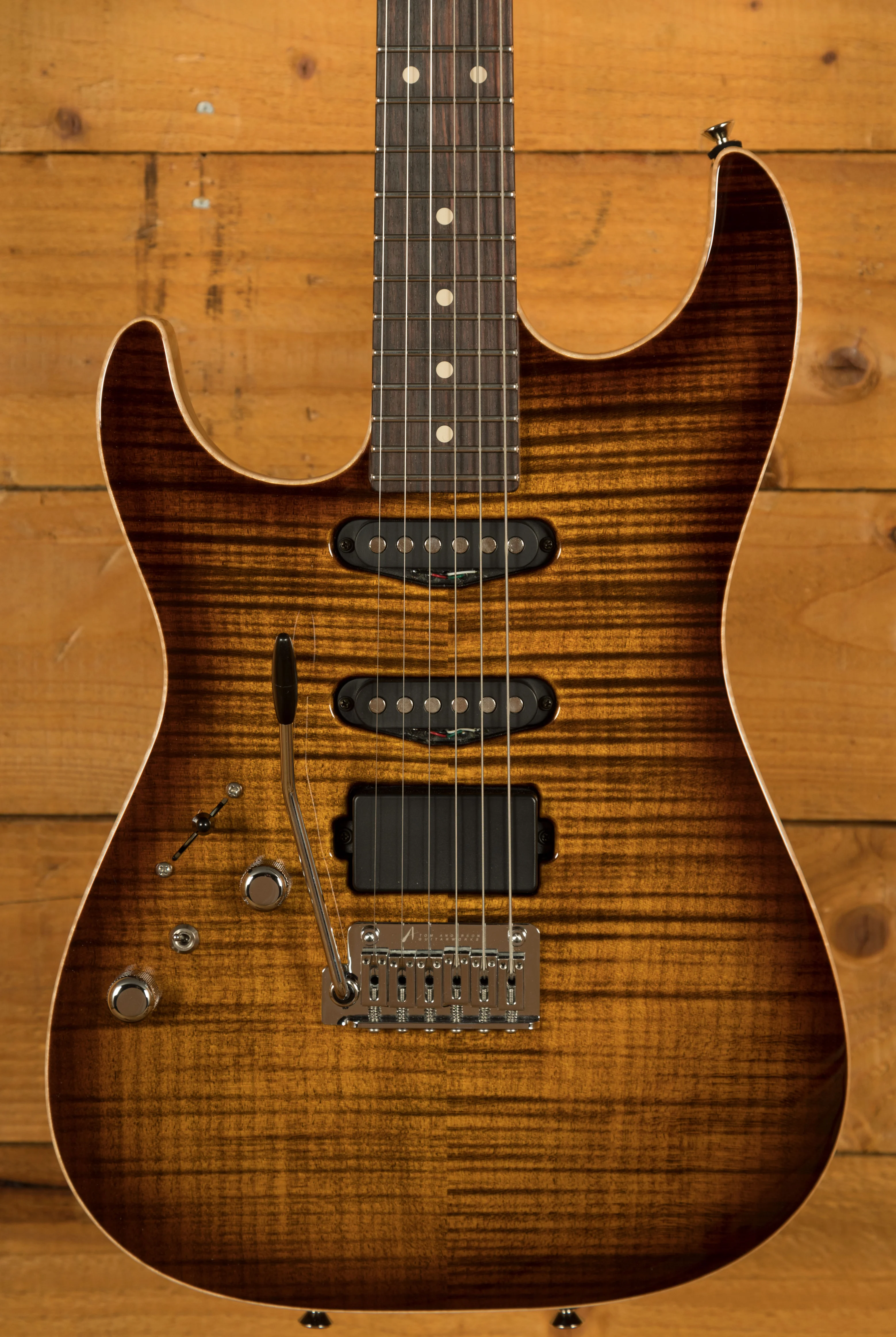 The H-S-S configuration is built for range: SC1 single-coils in the neck and middle provide quiet, expressive clean tones, while the powerful HC2+ humbucker in the bridge delivers hot, articulate lead power with rich mids. The 5-Way switching with the coil-splitter function allows the player to instantly access single-coil sounds from the bridge humbucker, offering total tonal control, all precisely intonated by the Buzz Feiten Tuning System.
