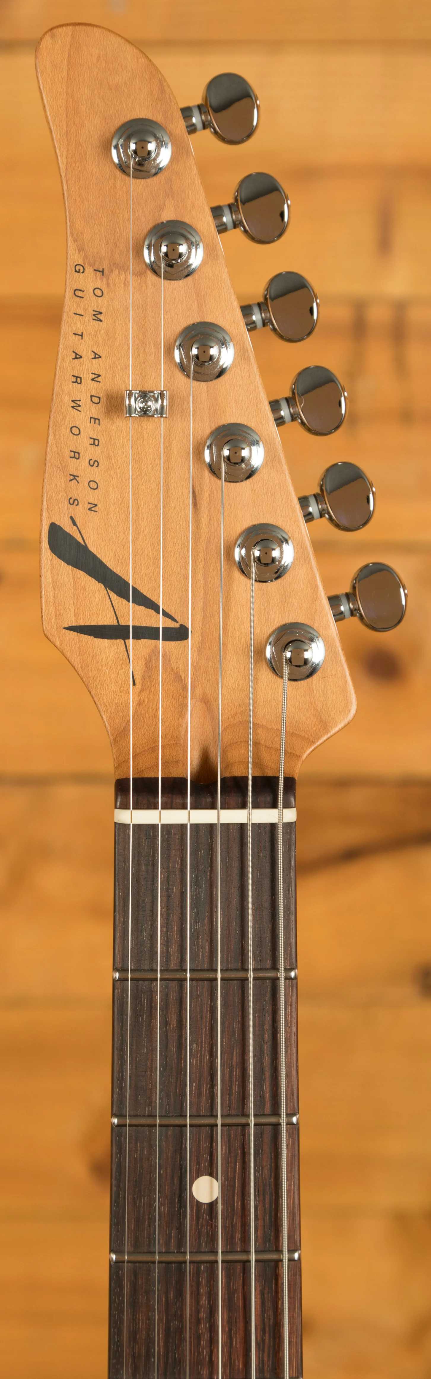 The neck is Caramel Maple with a Rosewood fingerboard and the coveted 60's Vibe back shape. This profile is Anderson's interpretation of a beloved vintage carve, it starts with a medium depth at the low frets and gradually becomes more substantial in the upper register, providing a comfortable, hand-filling feel for both rhythm and lead. It has a 1 5/8-inch nut width and Heavy Stainless Steel frets, which are slightly taller for superior grip and effortless string bending.