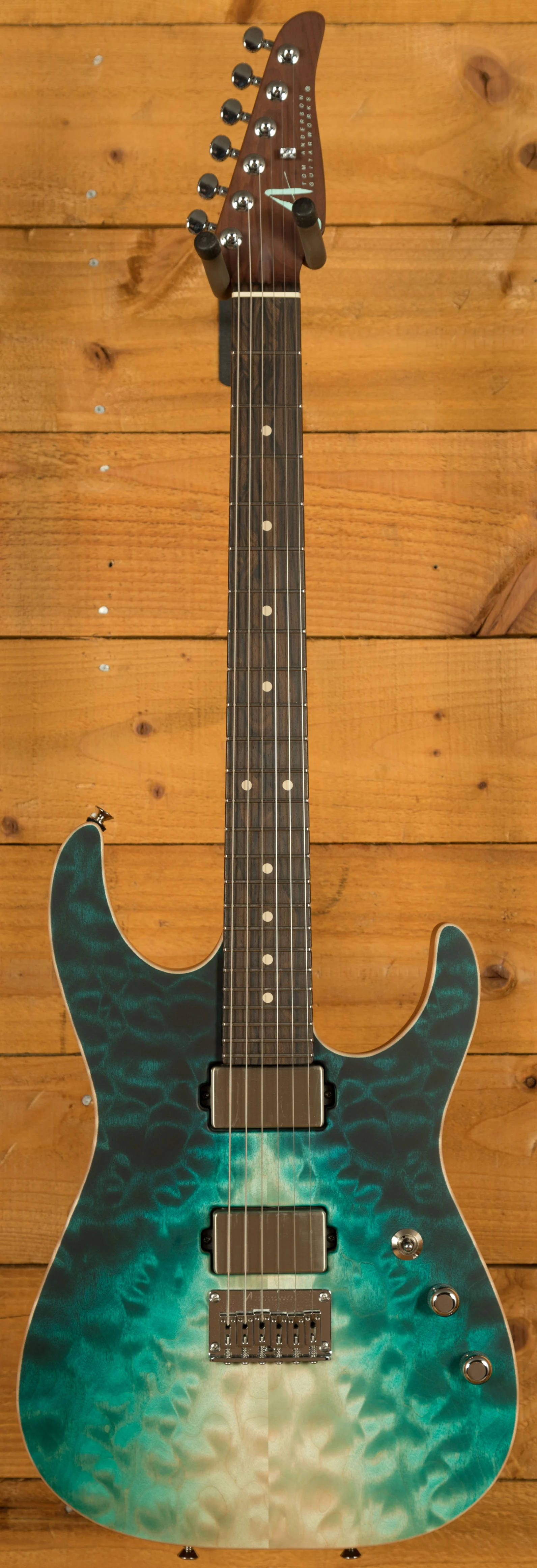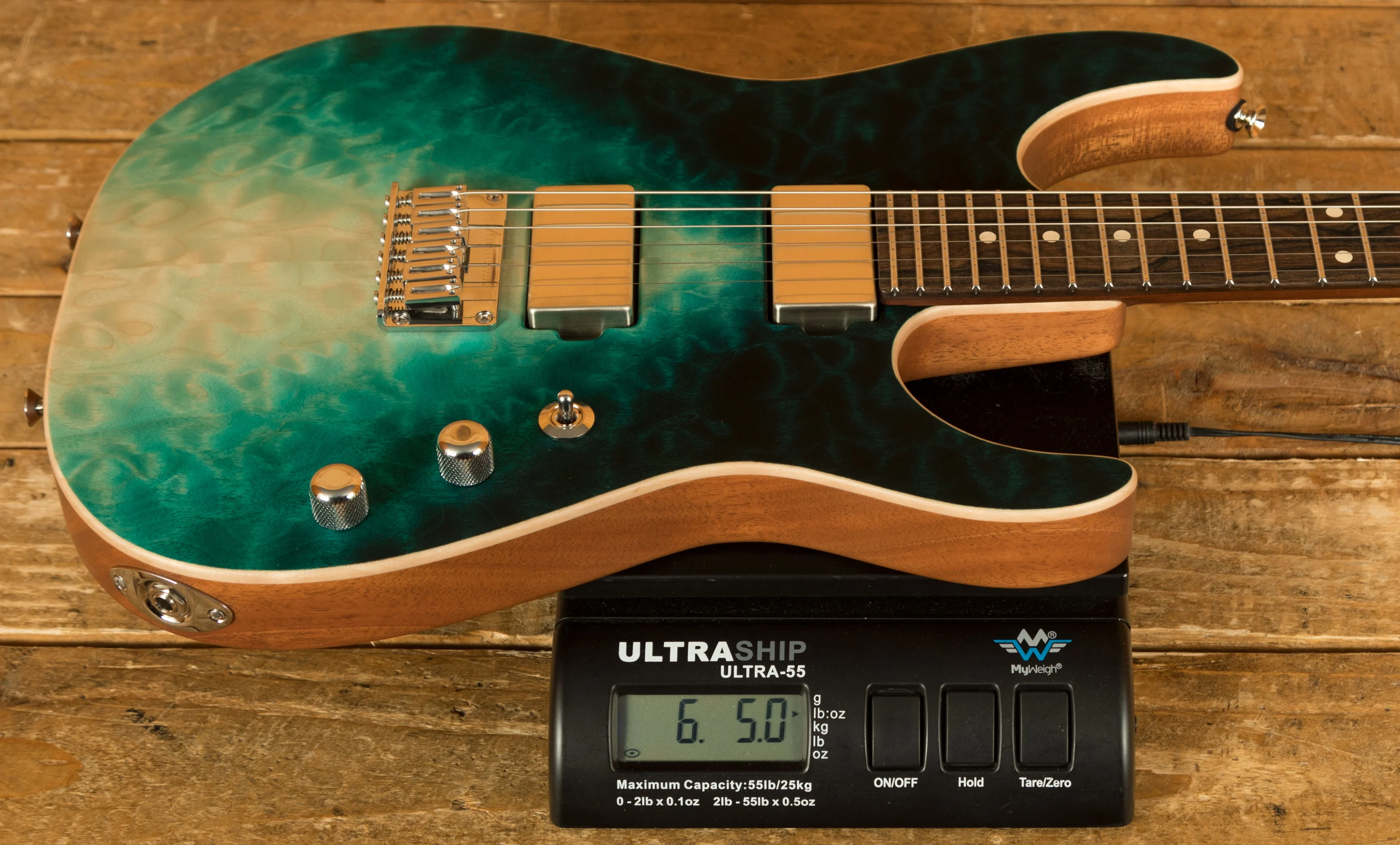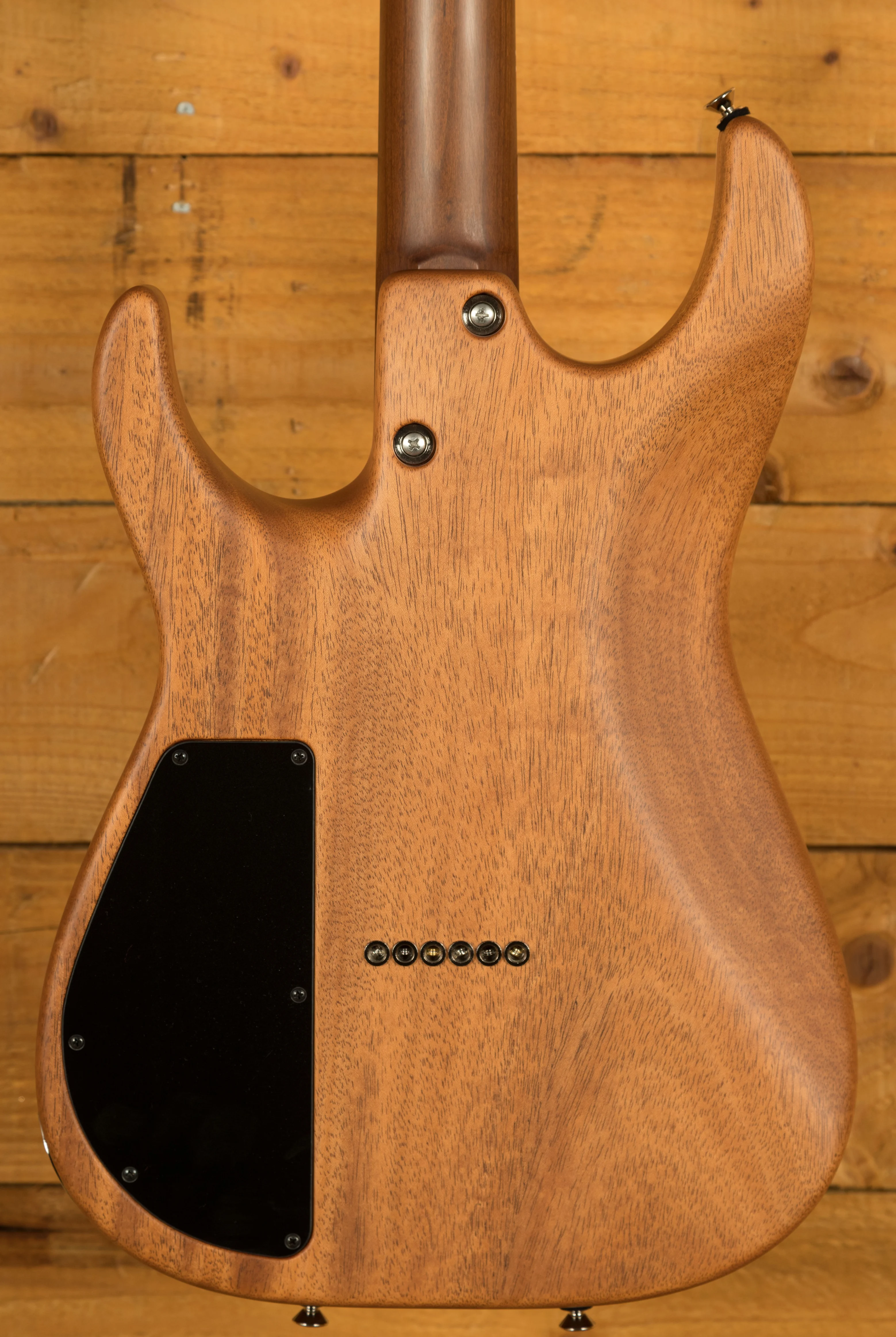 The Natural Satin Chocolate Maple neck has an Even-Taper +.030 profile with a 1 11/16" nut width and shorter 24.75" scale length, for a slick but stable neck grip. The Ziricote fingerboard is adorned with jumbo frets offers a comfortable playing surface, perfect for any style.