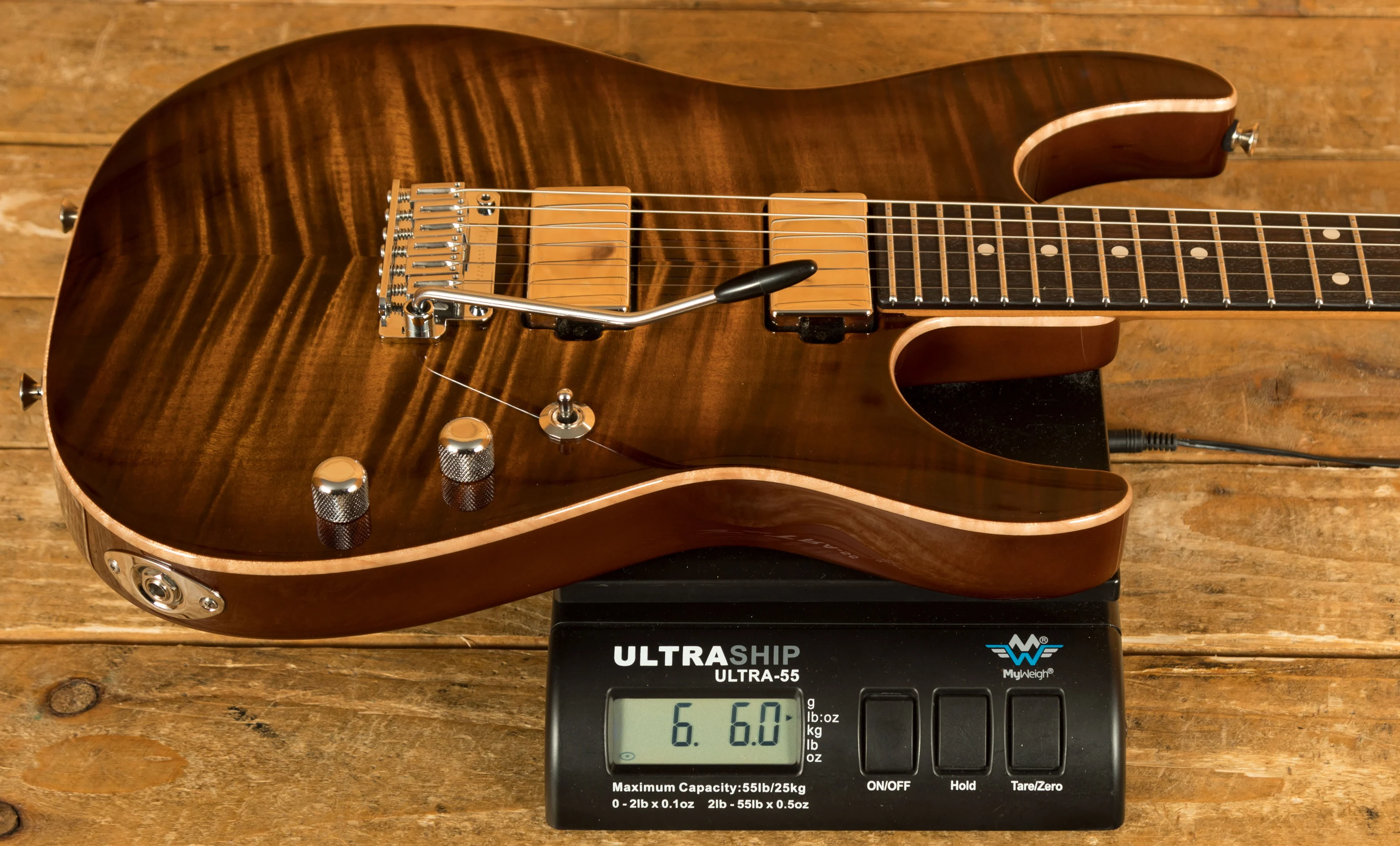 The body is basswood, which Anderson recommend for their humbucker equipped guitars. It also mean the guitar is incredibly lightweight, coming in at just 6lbs and 6 ounces! That is one comfortable and resonant guitar! Whilst we're talking of body woods, check out the gorgeous maple top - it's very striking, especially given the clean aesthetics of this guitar, such as the pickups having no mounting rings and the classy binding around the top.