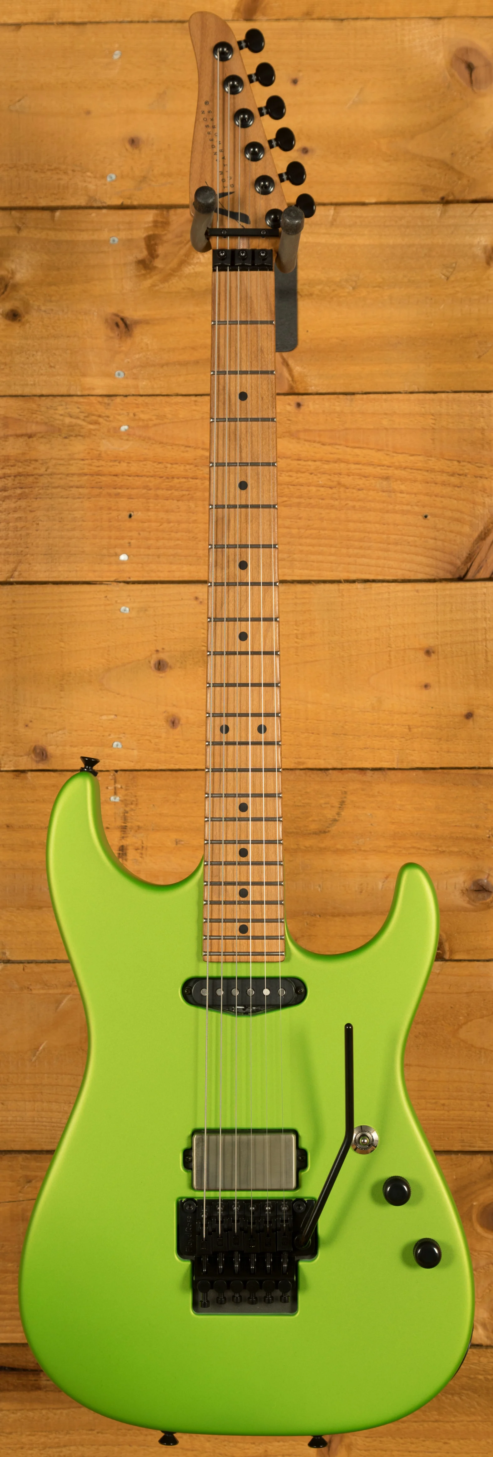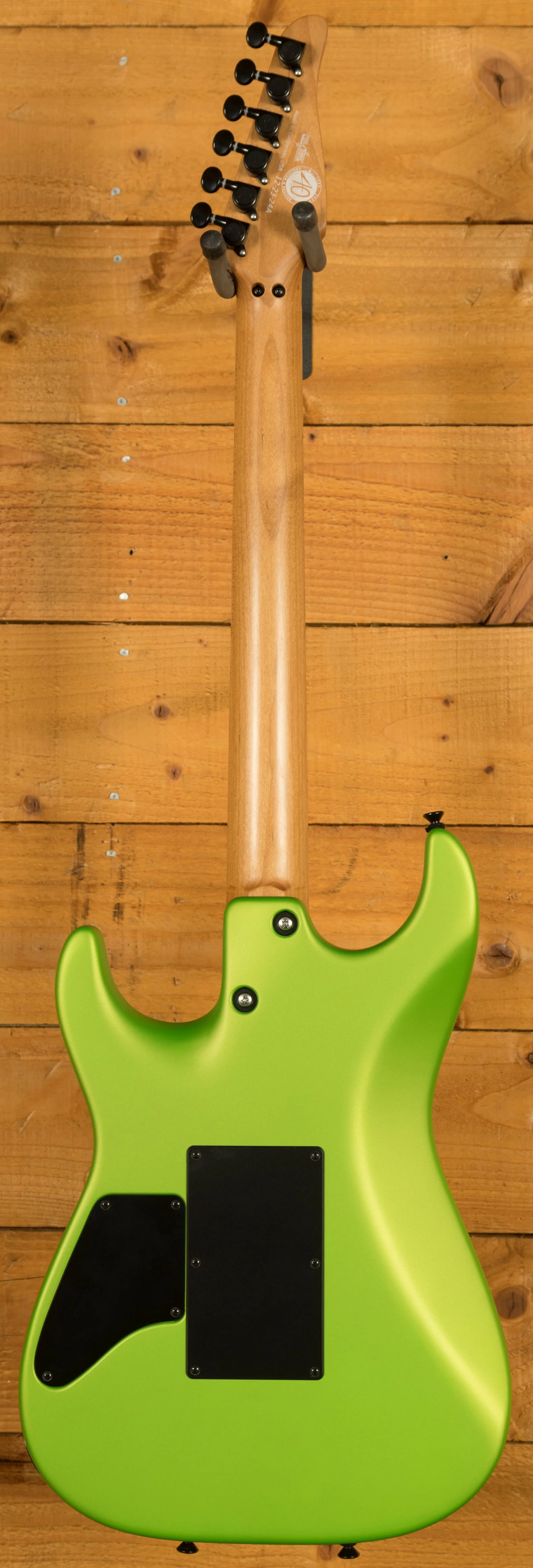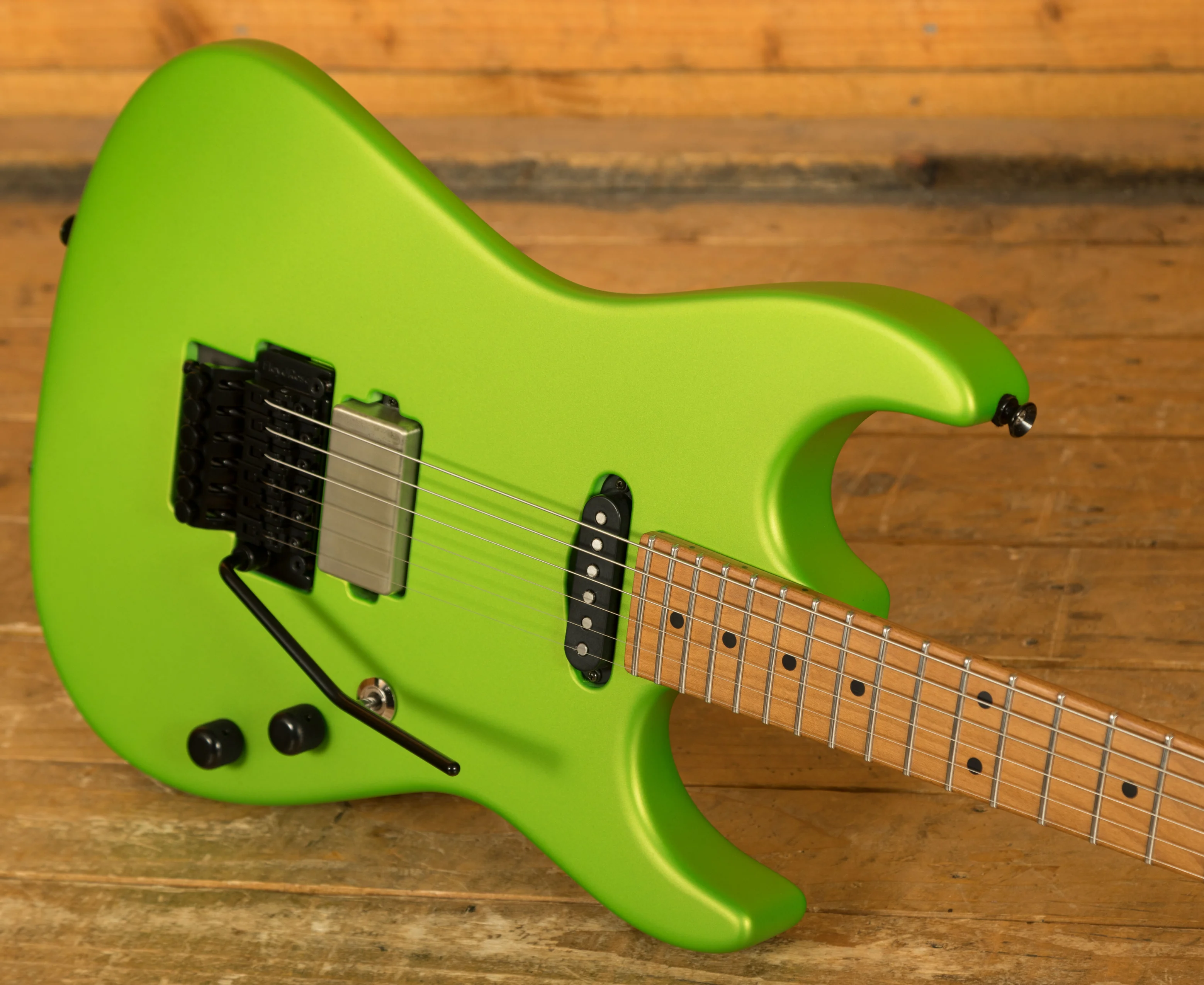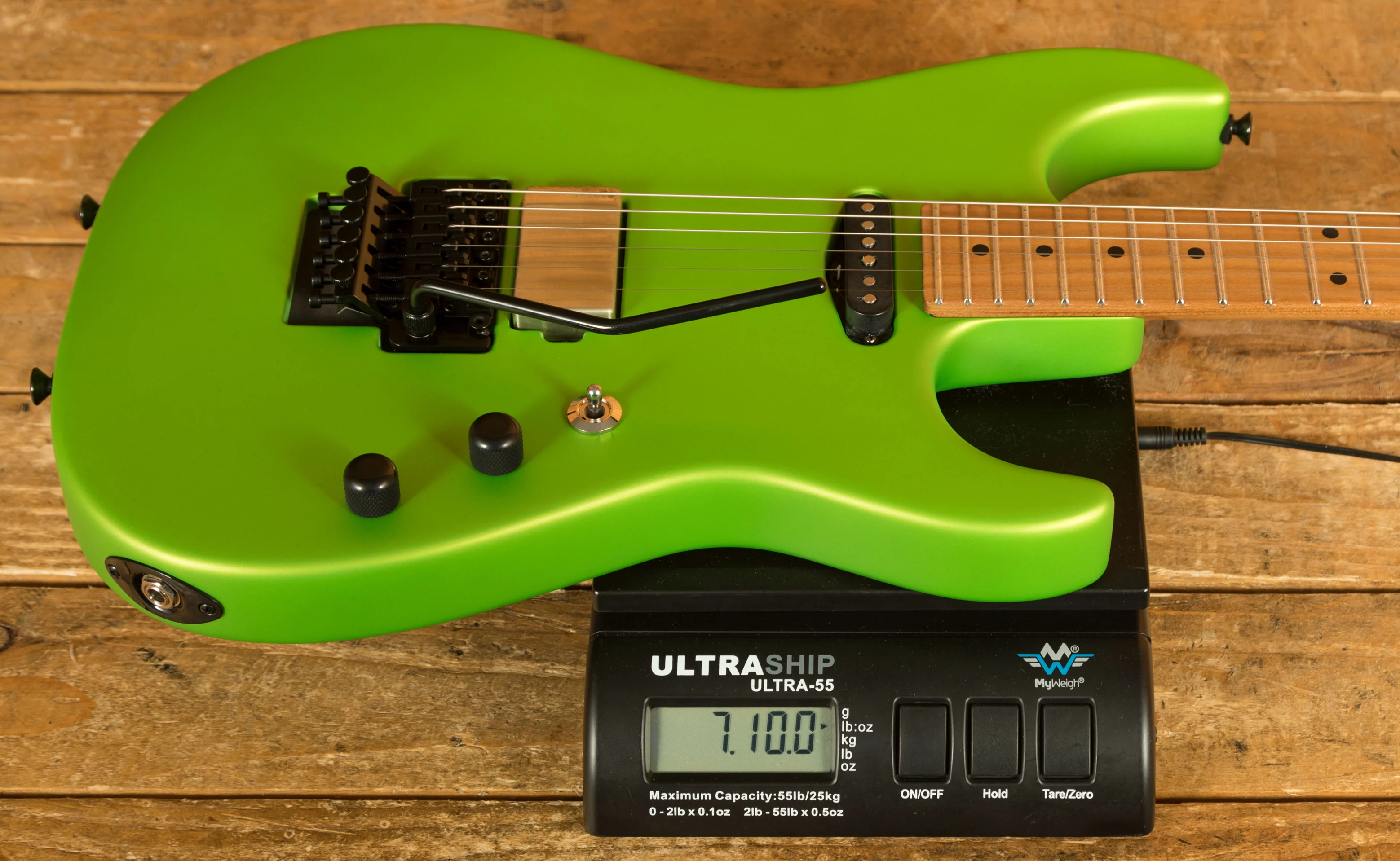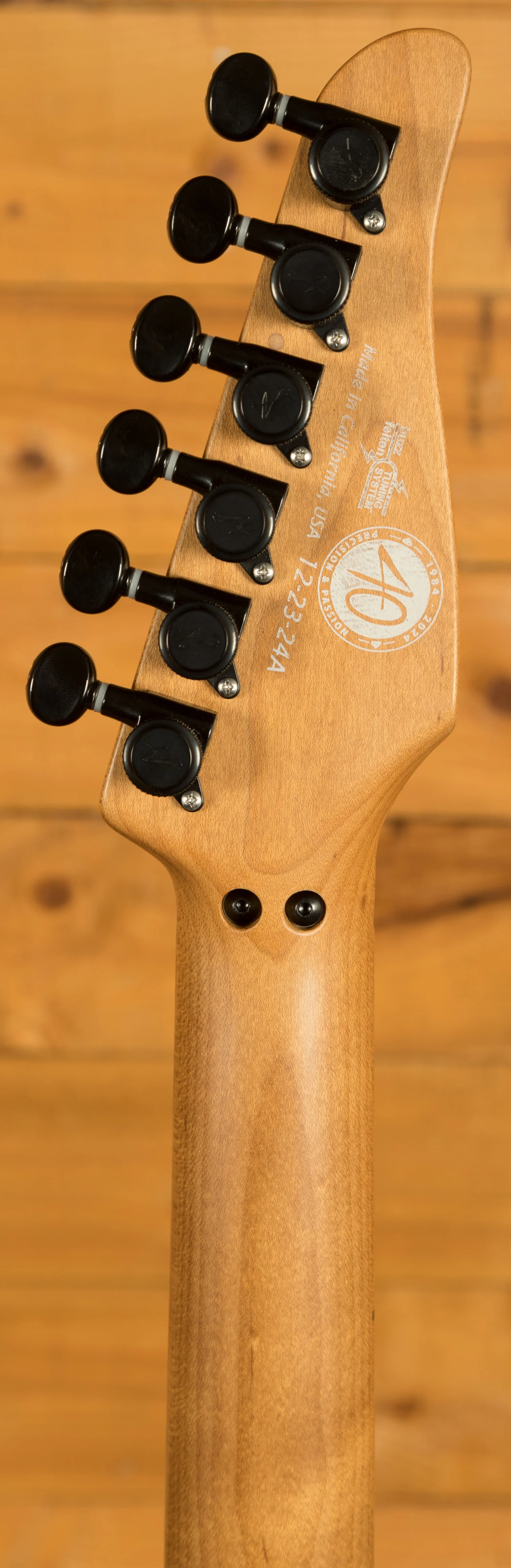 Specs like a 1 11/16" nut width, stainless steel jumbo frets, and a 12 to 14-inch fingerboard radius offer unparalleled playability. The black hardware, including a sunken locking trem, locking nut, and locking tuners, adds both style and functionality.