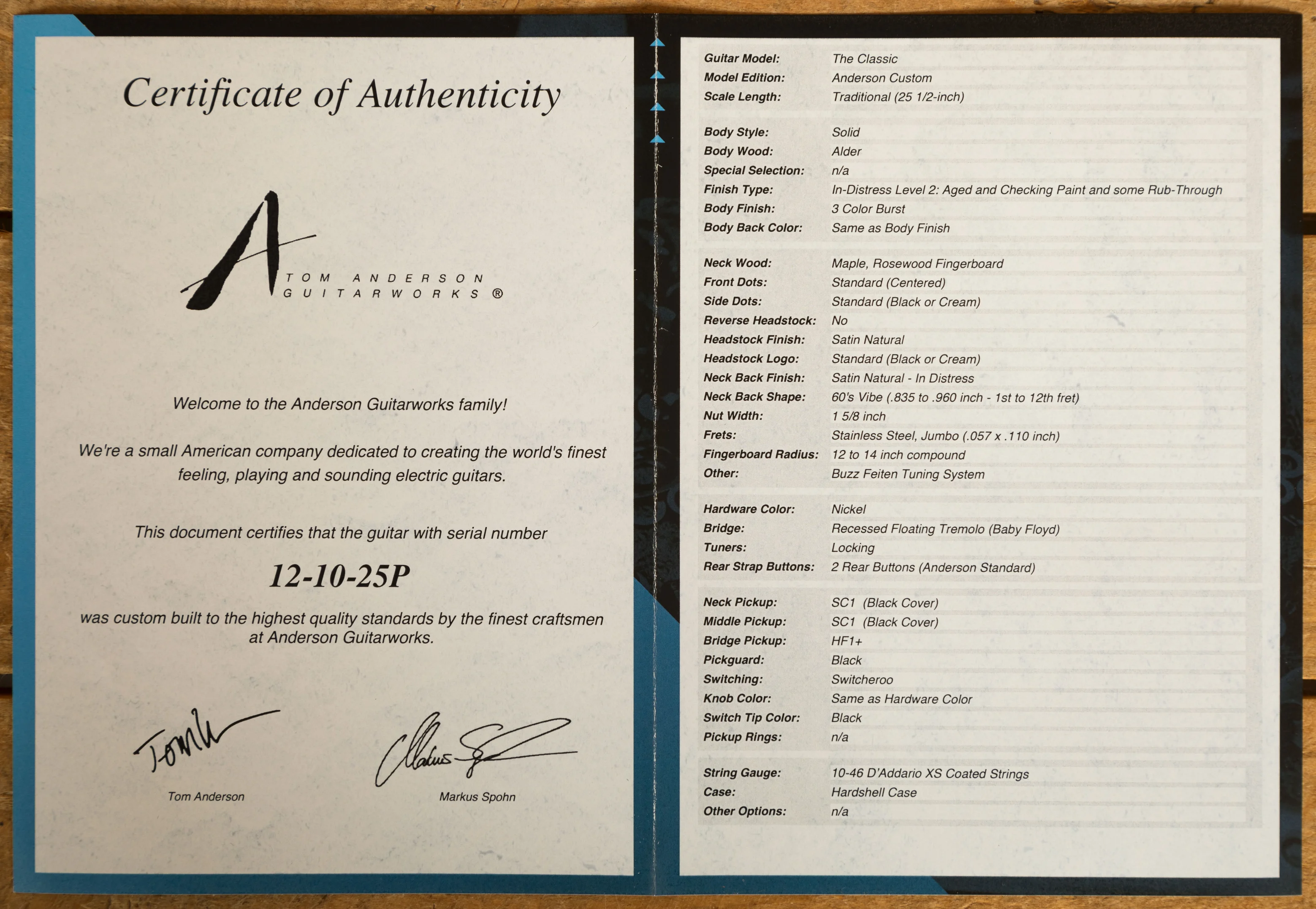 The Classic lives up to its name with timeless style and modern precision. Finished in a Level 2 Distressed 3 Color Burst with a satin natural headstock, it's a sleek, stage-ready instrument that blends vintage aesthetics with Anderson's renowned build quality.