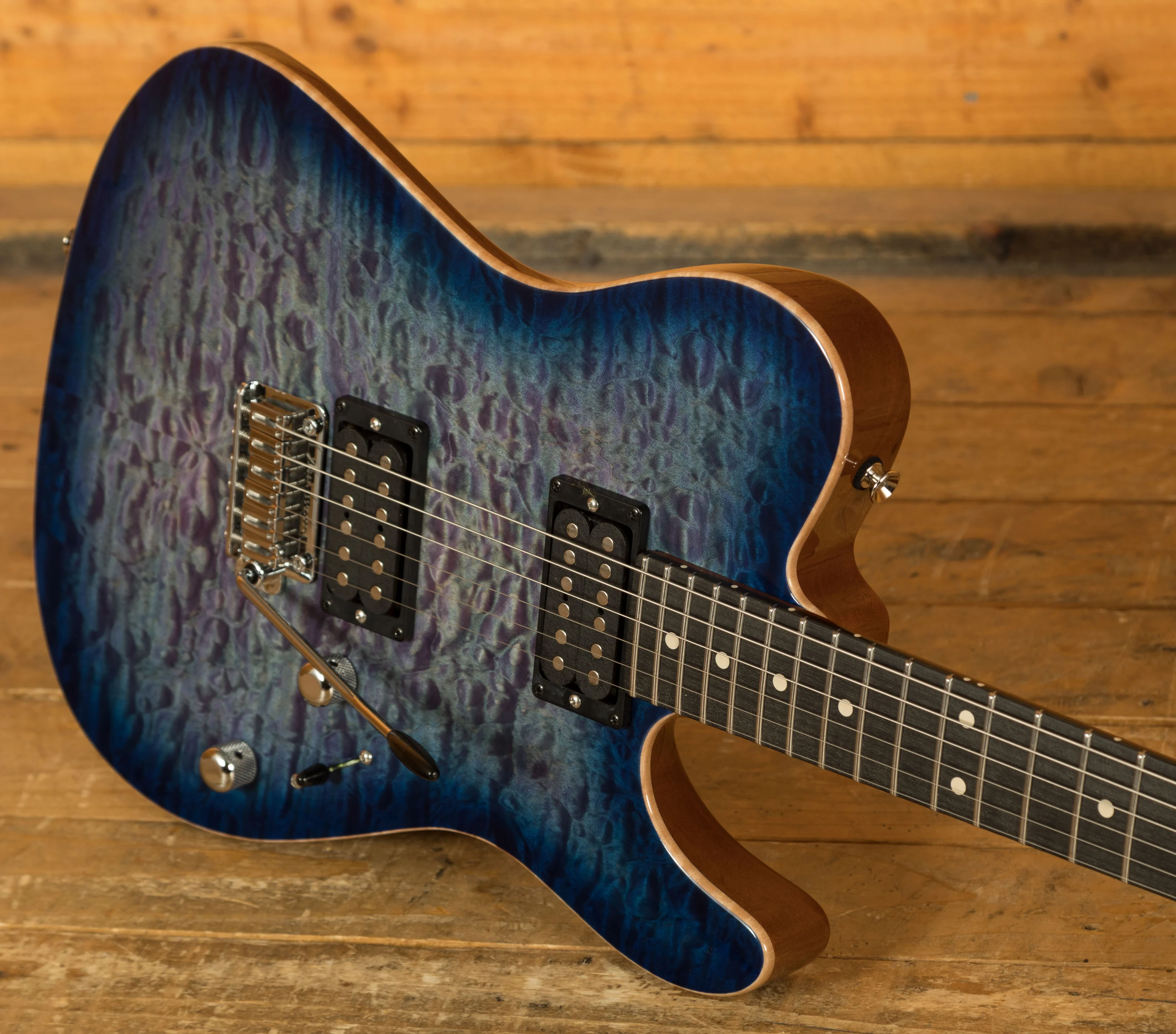 The Natural Satin Chocolate Maple neck is super stable and features an Even-Taper profile with a 1 5/8 nut width and 24.75" scale length, for a slick but stable neck grip. The Blackheart fingerboard adorned with jumbo frets is super dark and offers a comfortable playing surface, perfect for any style.