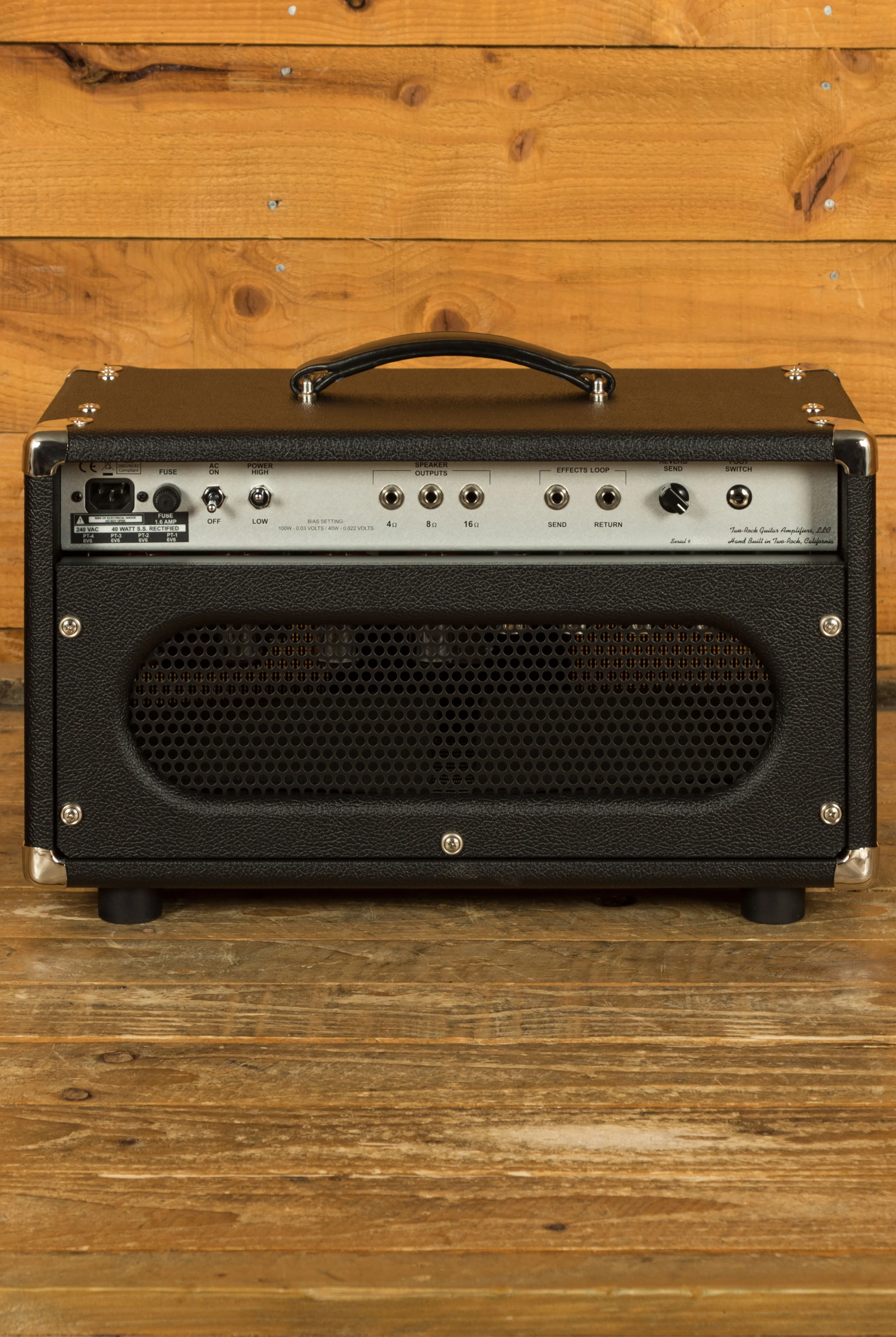 The Bloomfield Drive is a classic style 2 channel workhorse with the usual Two Rock finesse. Loaded with Two Rock's new proprietary output transformers, they allow 4 x 6V6 power tubes to be switchable from 40 to 20 watts without any impedance mismatch or sacrifice of tone and feel. The clean channel is super responsive and offers a depth and articulation that is instantly recognisable while the lead channel delivers a potent drive packed with delicious harmonics, gain and rich sustain.