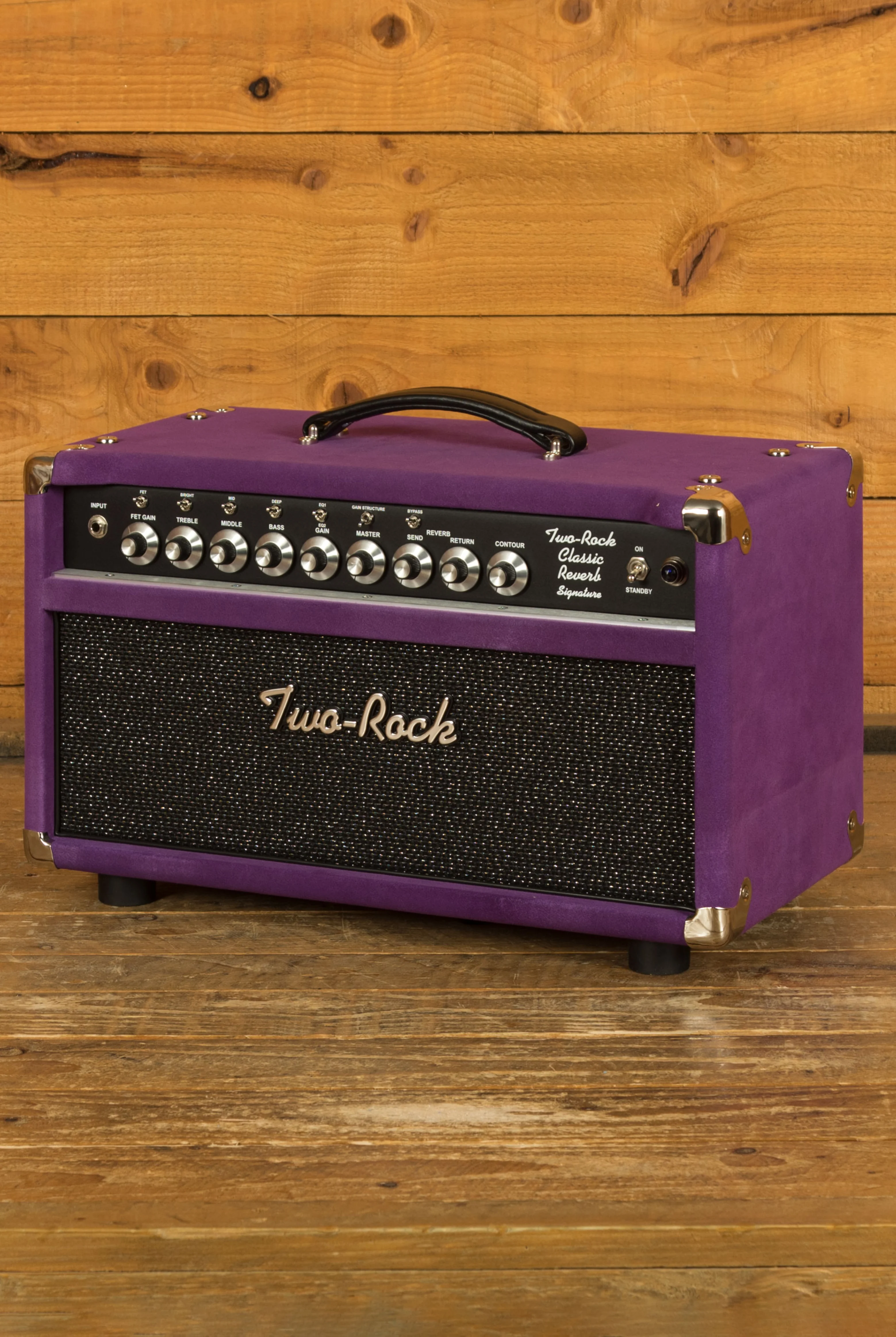 The Two-Rock Classic Reverb Signature 100 watt head is a single channel monster and one of Two-Rocks most popular models. With extensive tone shaping offered via the treble, middle, bass, bright, mid, deep and EQ controls you can really hone this amp into your own sound. There's a Contour control facility that responds uniquely to humbuckers and single coils pickups while also adjusting to the rooms acoustics.