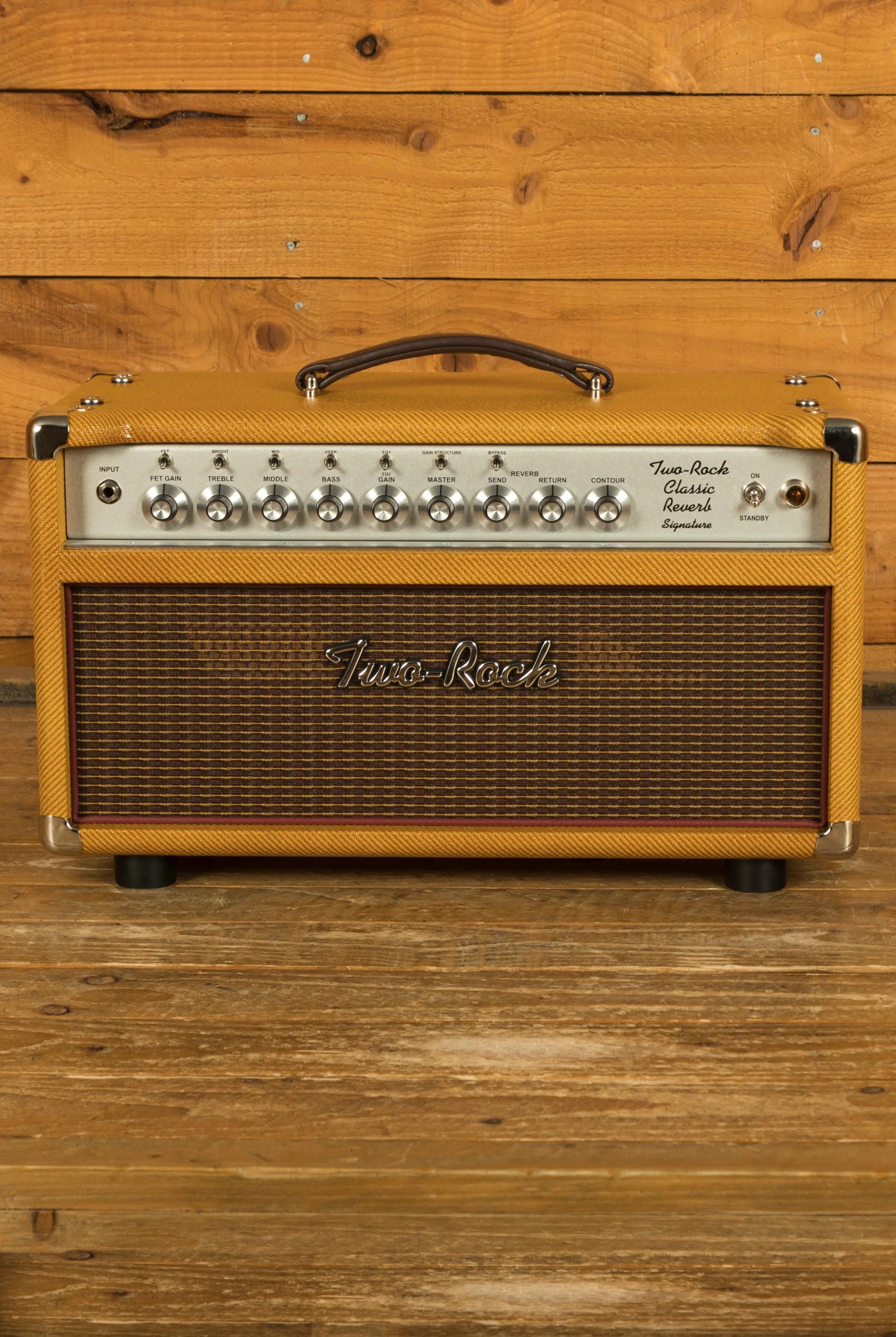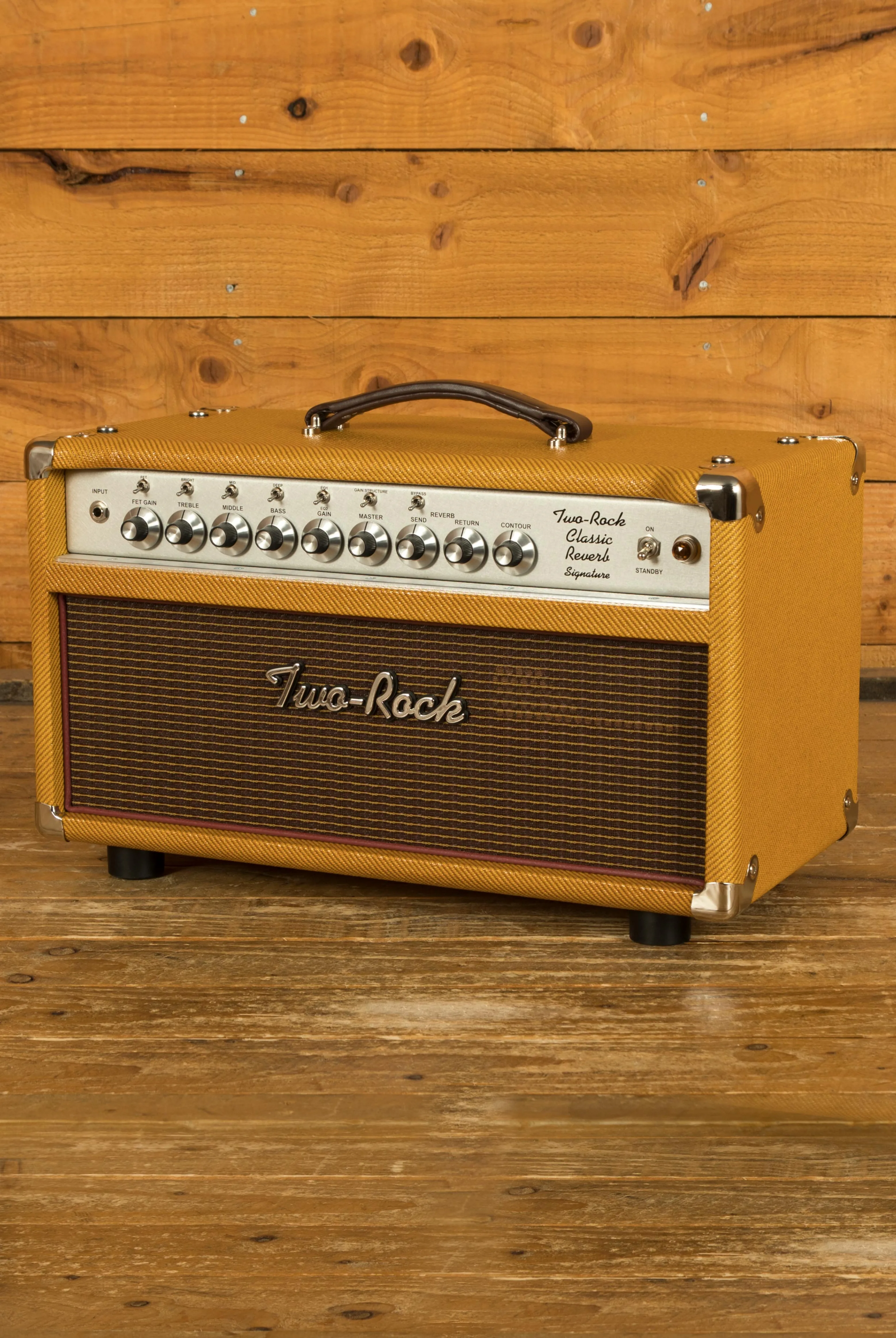 The Two-Rock Classic Reverb Signature 40/20 watt head is a single channel monster and one of Two-Rocks most popular models. With extensive tone shaping offered via the treble, middle, bass, bright, mid, deep and EQ controls you can really hone this amp into your own sound. There's a Contour control facility that responds uniquely to humbuckers and single coils pickups while also adjusting to the rooms acoustics.