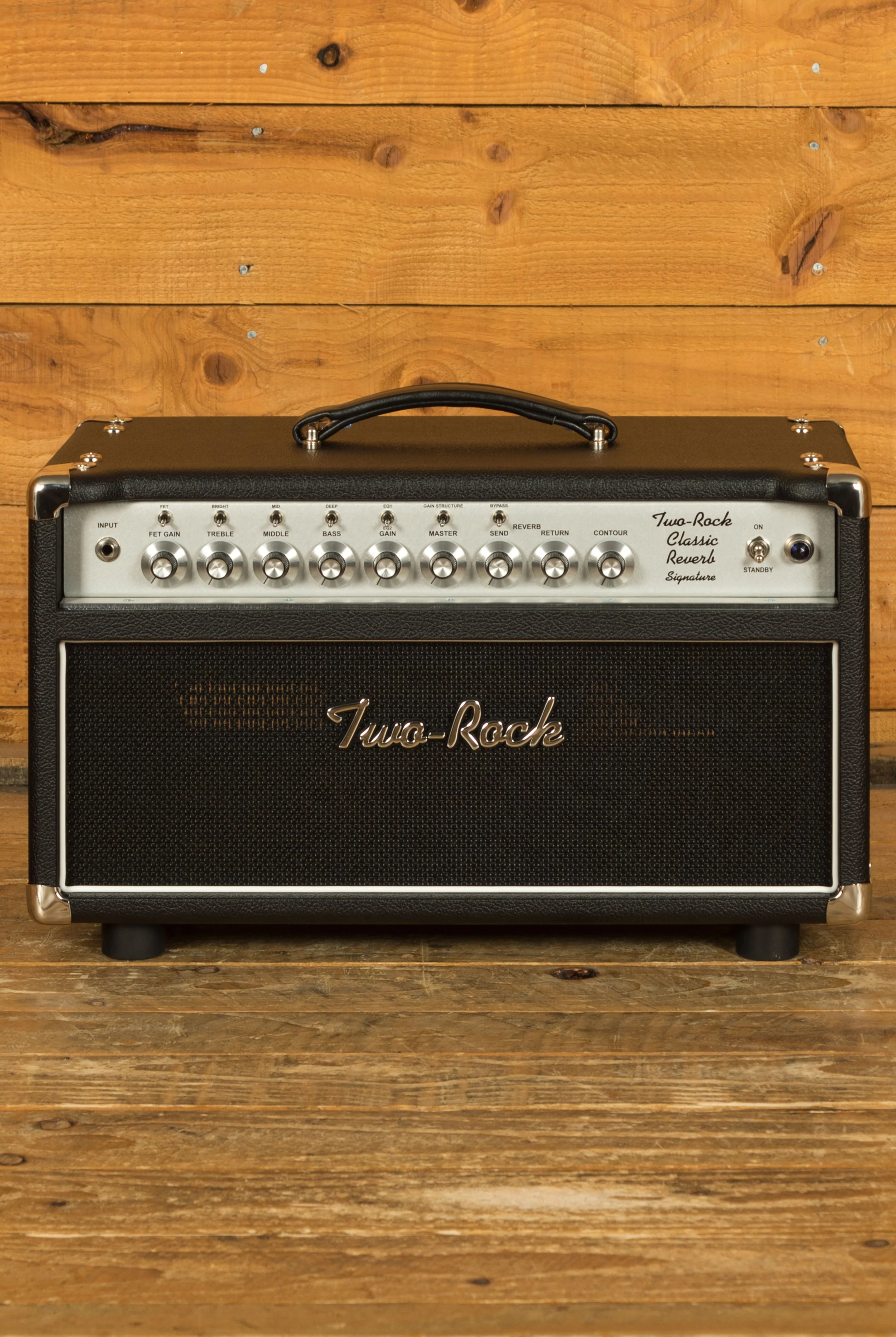 The Two-Rock Classic Reverb Signature 40/20 watt head is a single channel monster and one of Two-Rocks most popular models. With extensive tone shaping offered via the treble, middle, bass, bright, mid, deep and EQ controls you can really hone this amp into your own sound. There's a Contour control facility that responds uniquely to humbuckers and single coils pickups while also adjusting to the rooms acoustics.