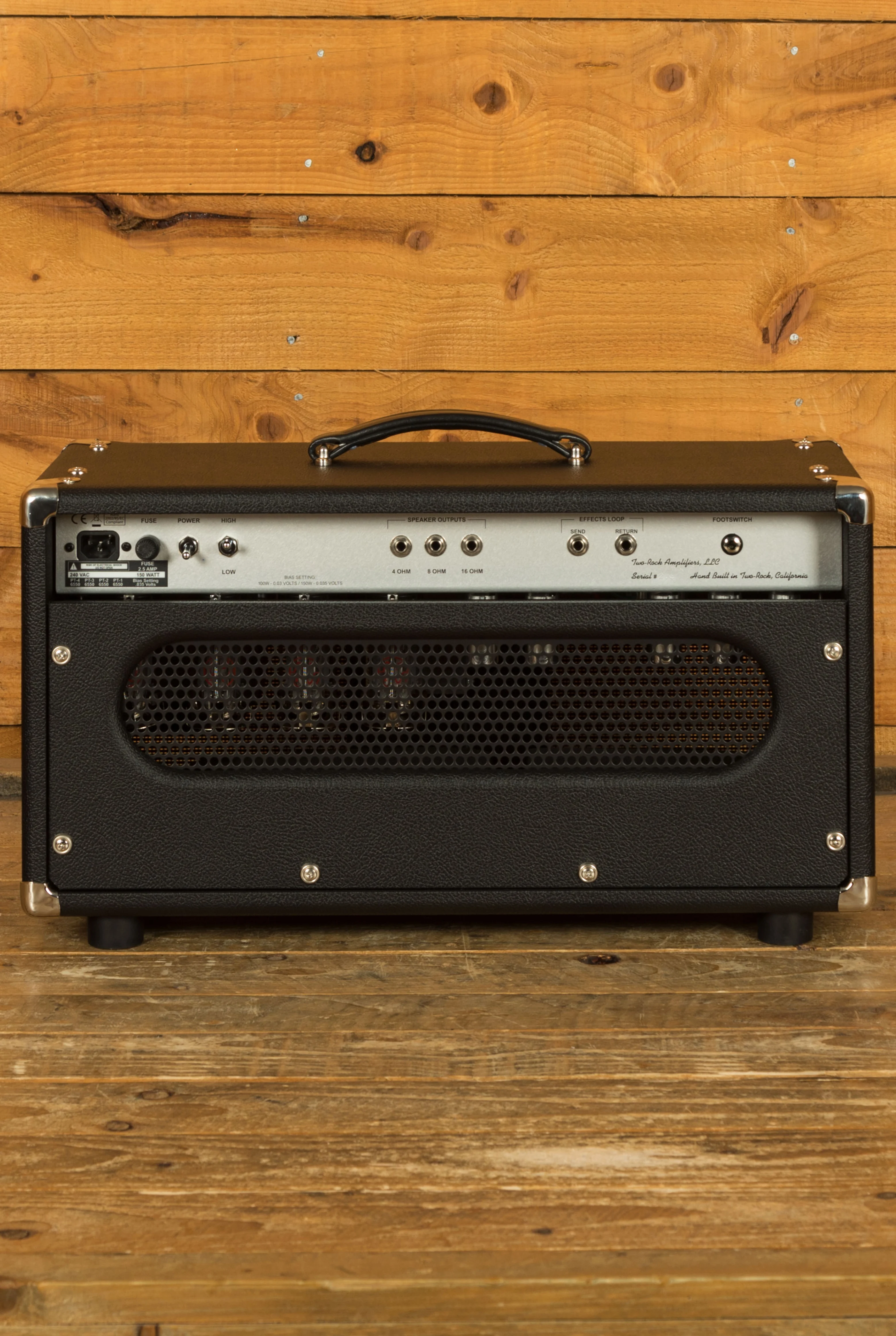 After nearly a decade of R&D since the original Sterling was released and a lifetime of listening to the iconic guitar tones this coveted amplifier has produced, Two-Rock has revisited this classic circuit. This 150 watt model is switchable to 75 using Two-Rock's proprietary output transformer design that allows zero performance loss when power scaling. There's no doubt that this amp loves to be pushed to the limit, so the tone stack and the filter switches allow the user plenty of flexibility to find the right tone. 6 12AX7's gives this amp a lush reverb and a cathode follower tube that extends the punch of this amp and adds an immediacy to the feel as well as headroom and clarity.