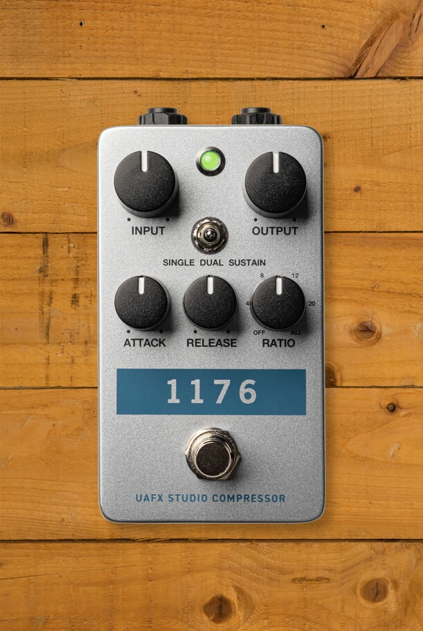 At its core, the 1176 features four selectable ratio settings - 4:1, 8:1, 12:1, and 20:1 - allowing players to dial in subtle compression or aggressive limiting. The infamous "All Buttons In" mode engages multi-stage compression, producing gritty, explosive textures ideal for rock, blues, and funk recordings.
