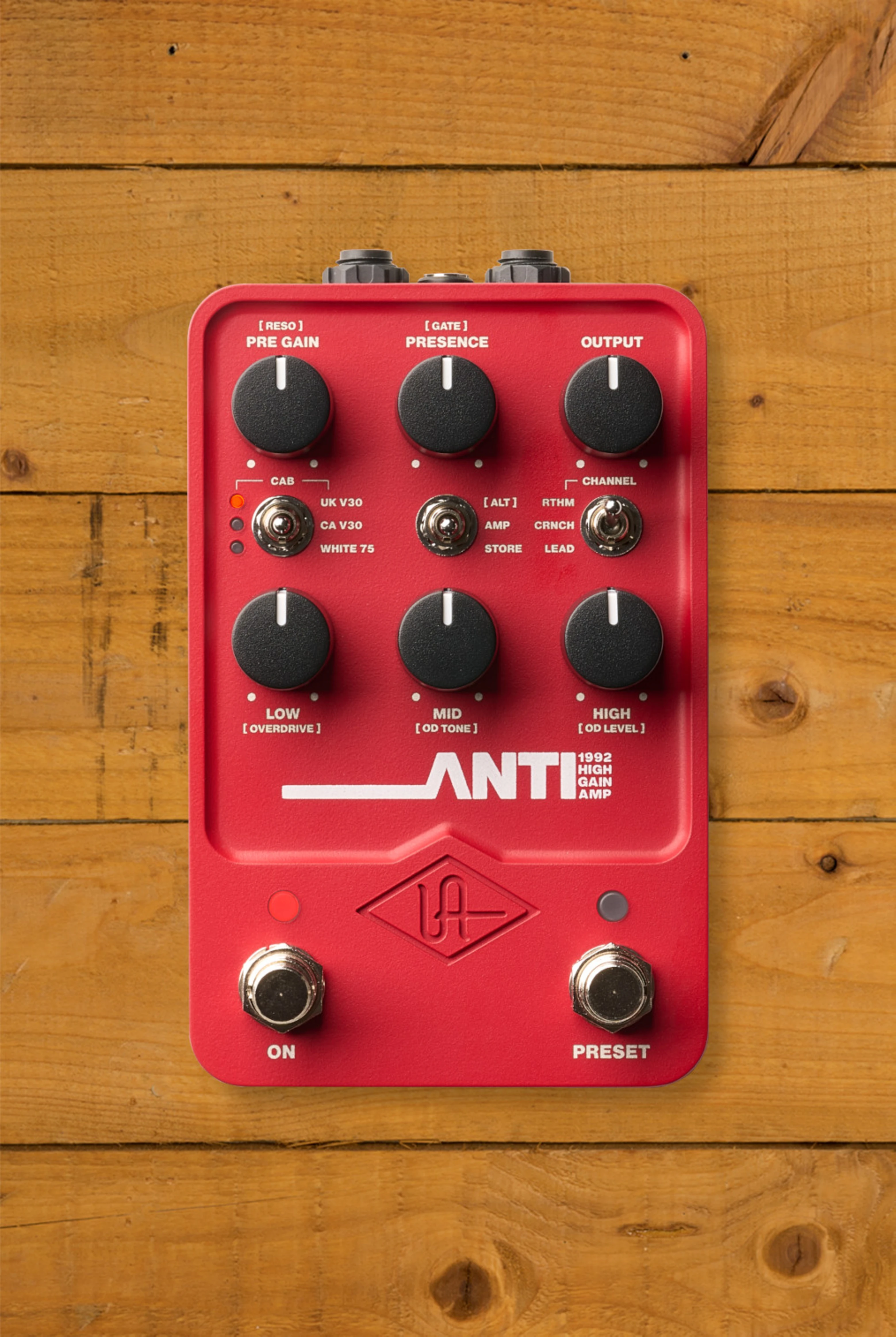 The Universal Audio UAFX ANTI 1992 High Gain Amp is a powerful amp emulation pedal - designed to deliver the crushing tones of the legendary 5150 amplifier that defined modern metal and hard rock. Whether you’re dialling in bone-shattering riffs, searing lead tones, or crystal-clear cleans - the ANTI provides authentic high-gain saturation with perfectly mic’d cabinet emulations.
