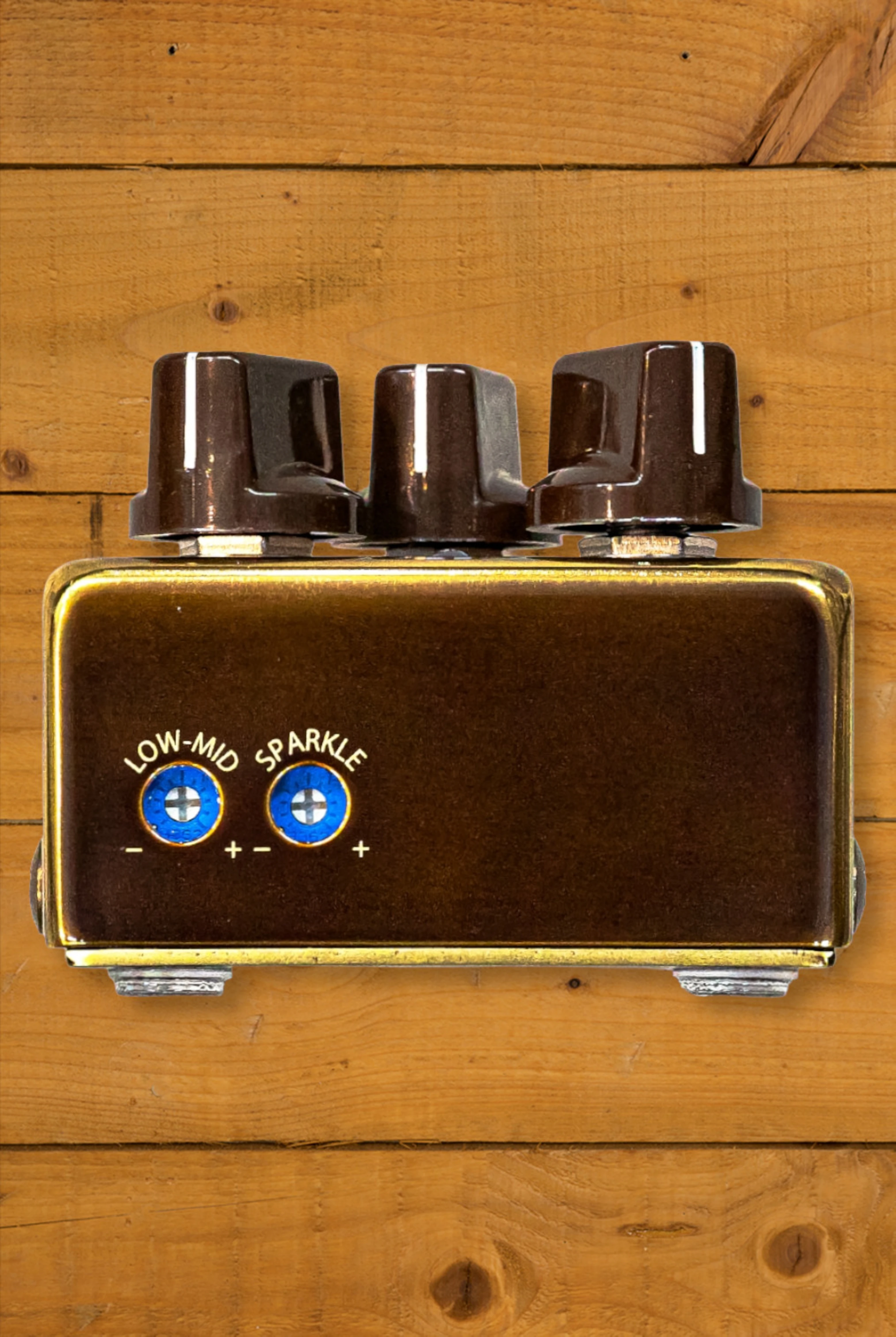 In addition to the standard Level, Gain, and Tone knobs, the Butter Machine features two specialised internal trimmers for surgical tonal shaping: