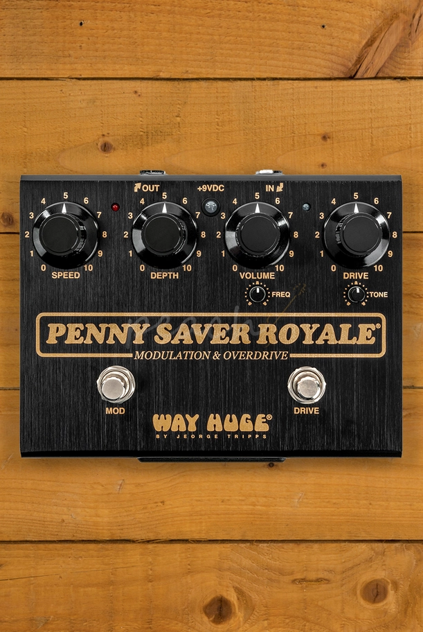 The Way Huge Penny Saver Royale is a dual-function modulation and overdrive pedal, combining two of Joe Bonamassa’s favourite Way Huge circuits into a single powerhouse unit. Whether you need punchy, dynamic overdrive or lush, swirling chorus, this pedal delivers versatile tone shaping with seamless integration between both effects.