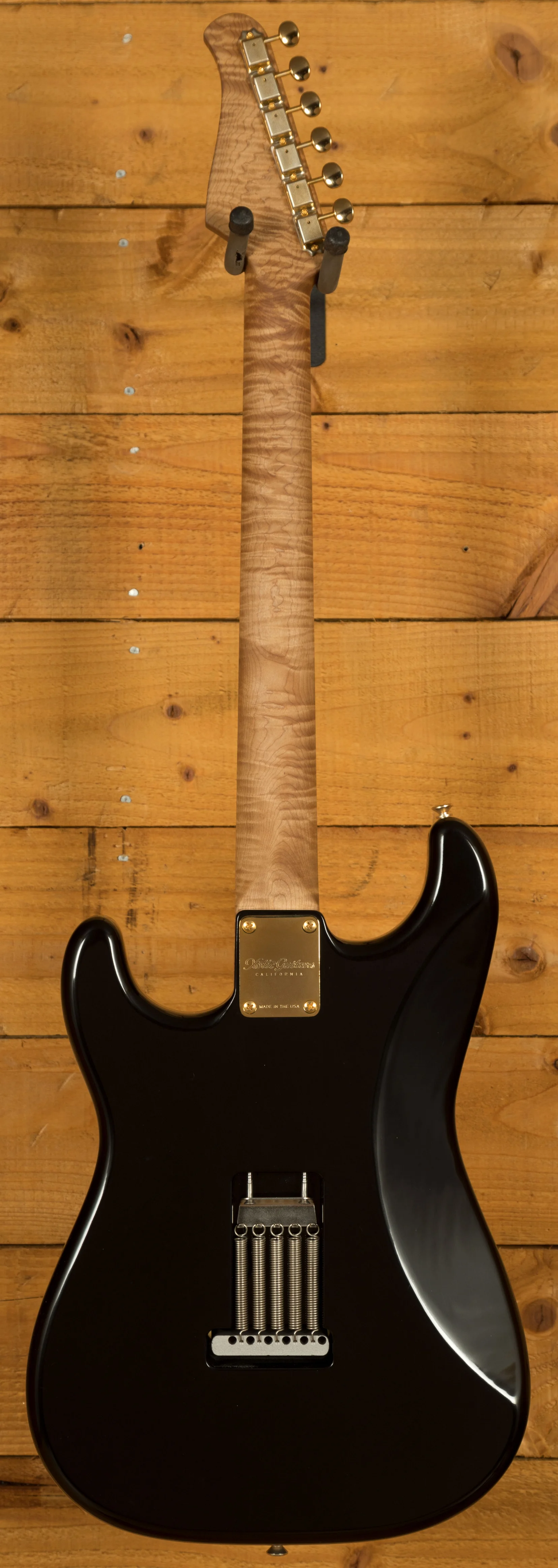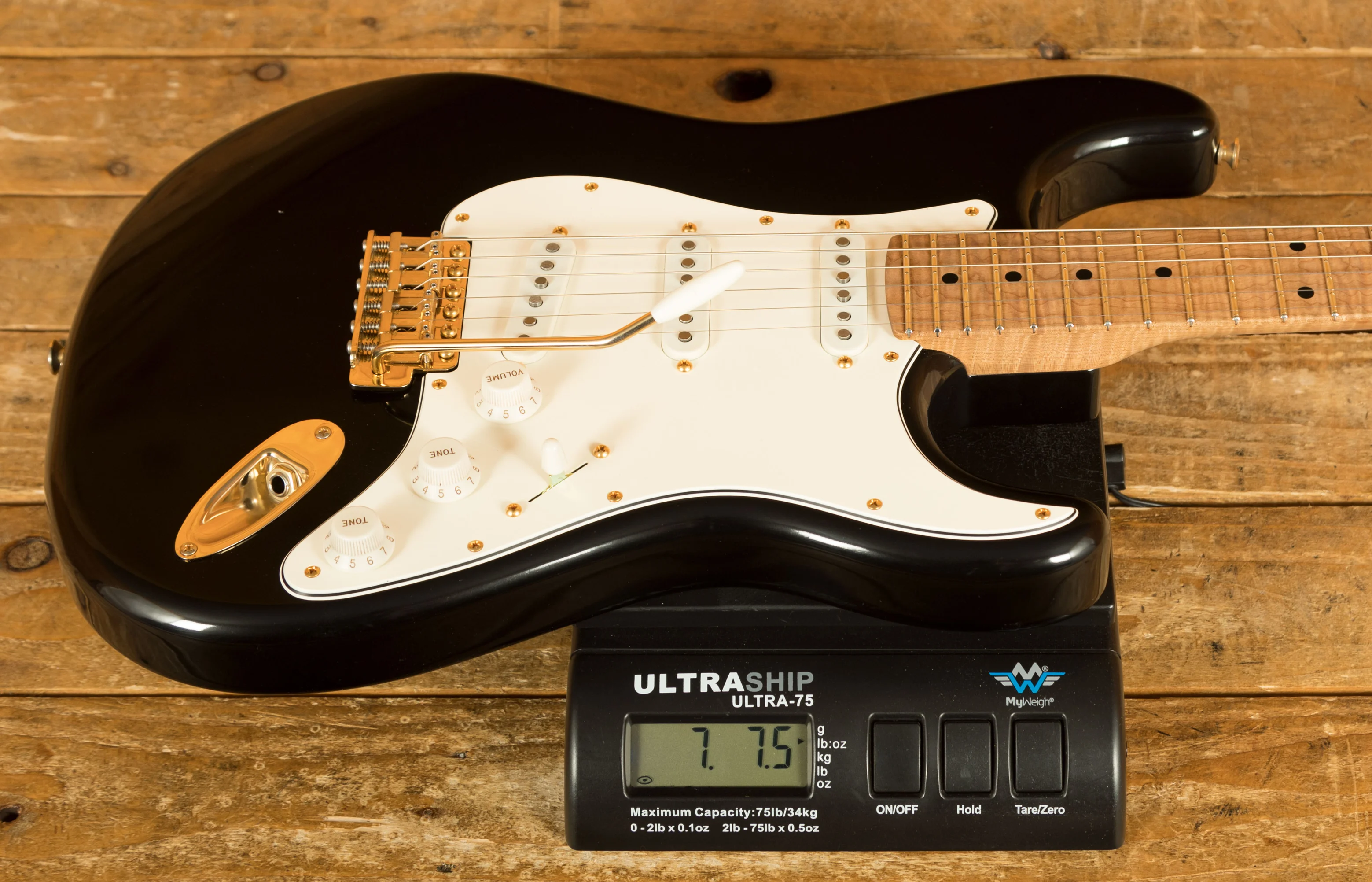 A boutique take on the classic Strat shape, the Ash body is finished in a lush Light Relic Black, authentically aged; it looks fresh from the road. With a nitrocellulose lacquer coating, the body has space to breathe, allowing the beautiful, organic tones from each hand selected cut to really resonate. The 3-ply parchmennt pickgaurd really adds a classic look to the guitar.