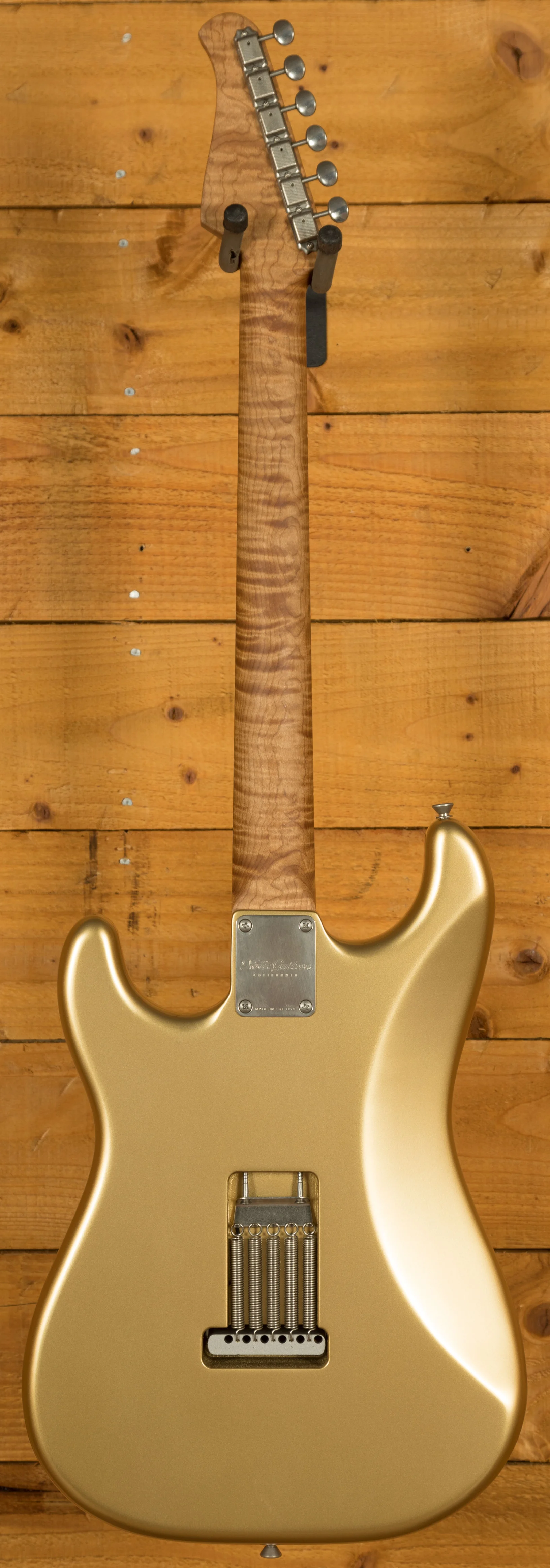 A boutique take on the classic Strat shape, the Alder body is finished in a light aged Aztec Gold, authentically aged; it looks fresh from the road. With a nitrocellulose lacquer coating, the body has space to breathe, allowing the beautiful, organic tones from each hand selected cut to really resonate. It is extremely well weighted and supremely comfortable.
