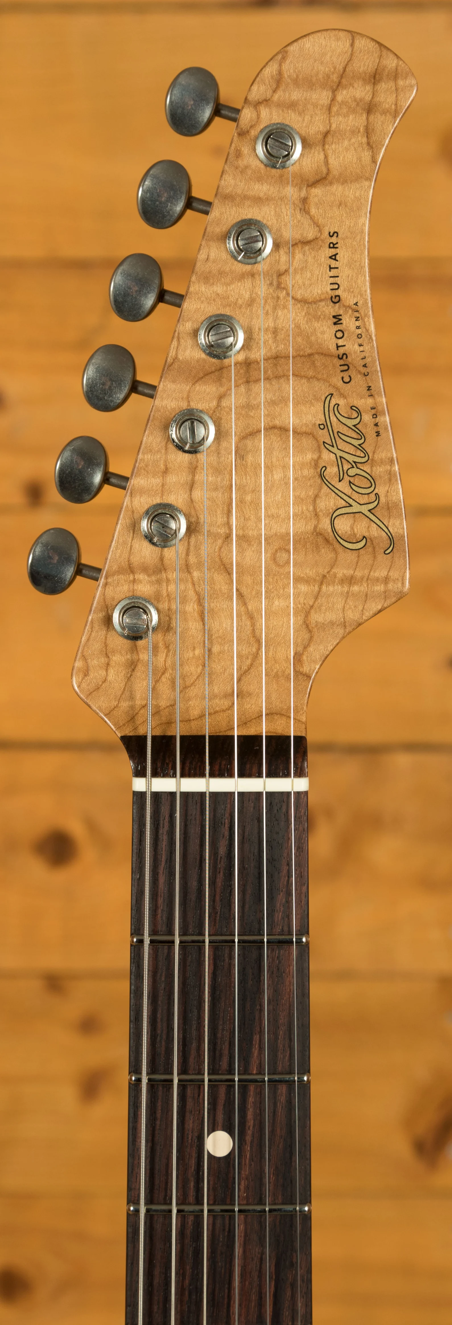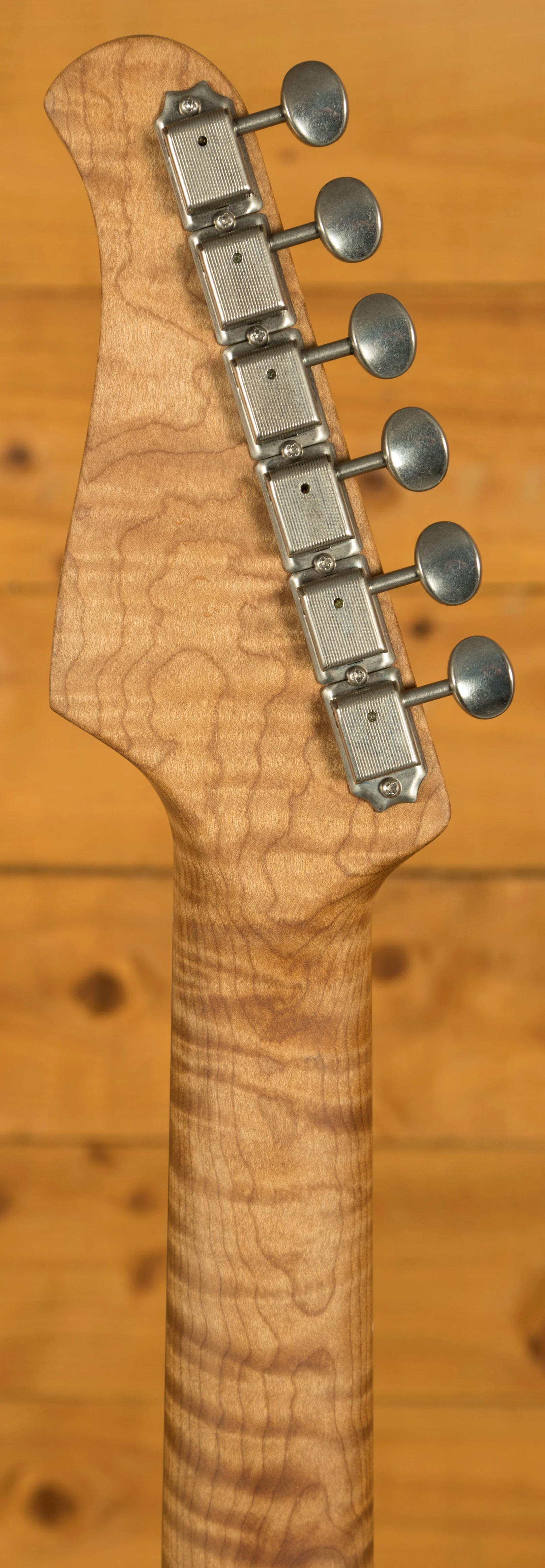 The Roasted Flame Maple neck has a Modern C Shape neck profile, 12" radius, Rosewood fingerboard and Jescar 57110 frets it feels comfortable and familiar. Gotoh vintage style locking tuners and a Gotoh vintage style bridge deliver incredible tuning stability and intonation.