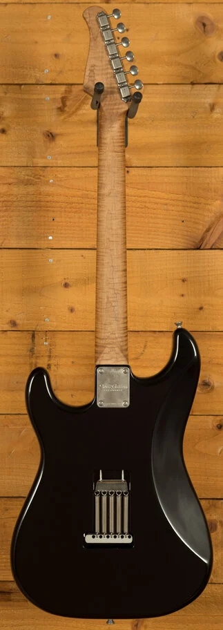 A boutique take on the classic Strat shape, the Alder body is finished in a light aged Black, authentically aged; it looks fresh from the road. With a nitrocellulose lacquer coating, the body has space to breathe, allowing the beautiful, organic tones from each hand selected cut to really resonate. It is extremely well weighted and supremely comfortable.